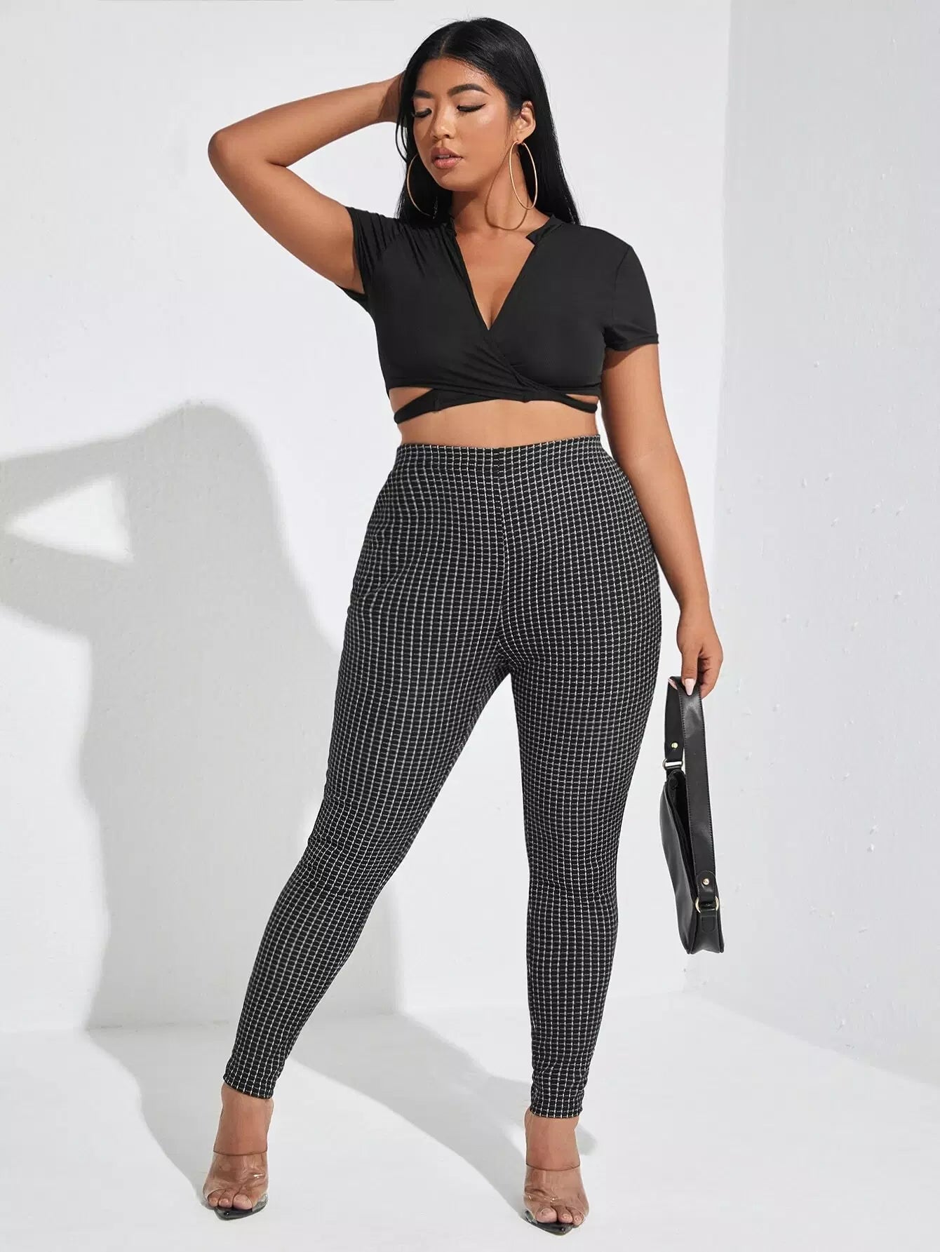 بنطلون ضيق بطبعة منقوشة عالية التمدد بلس