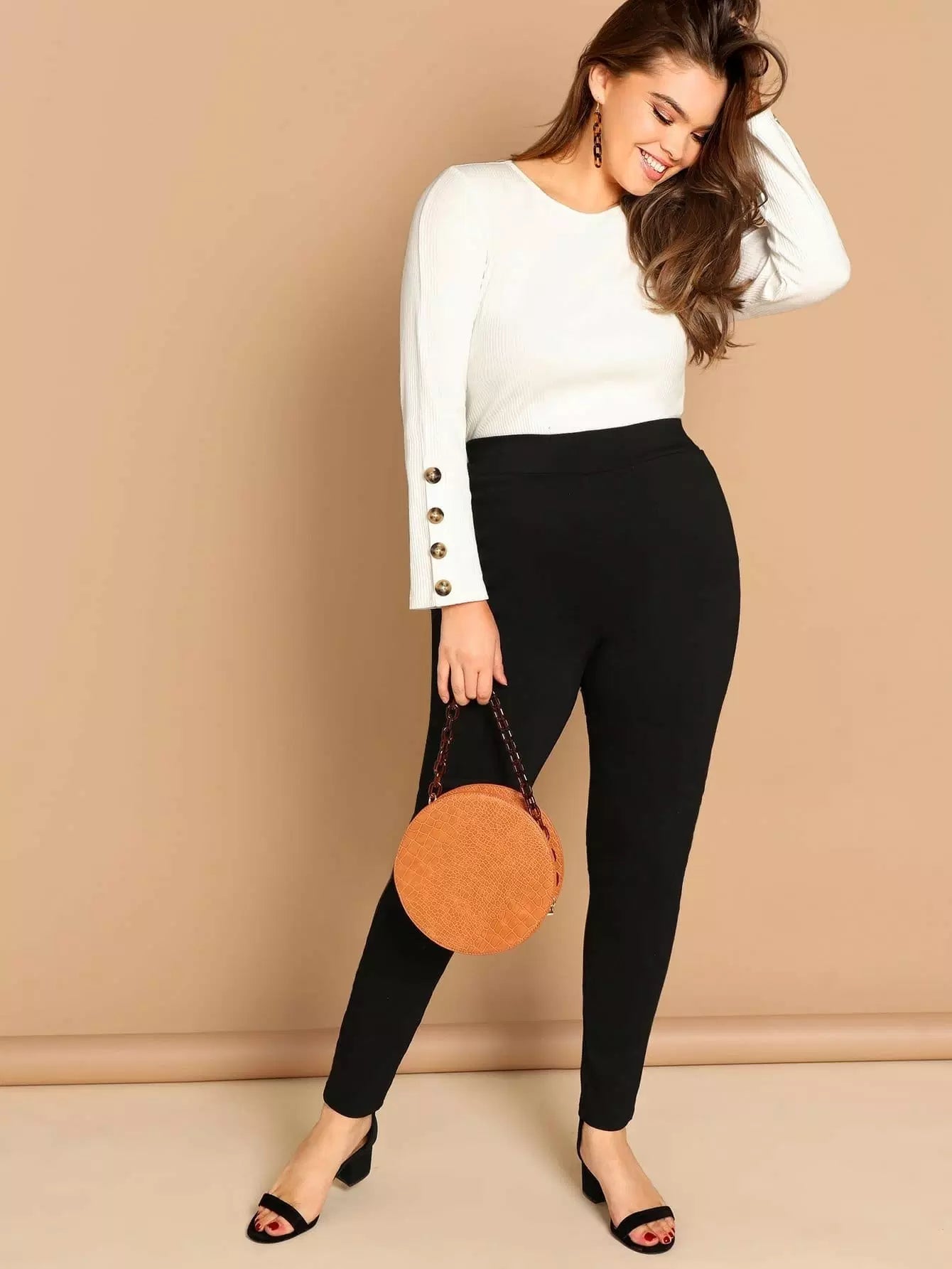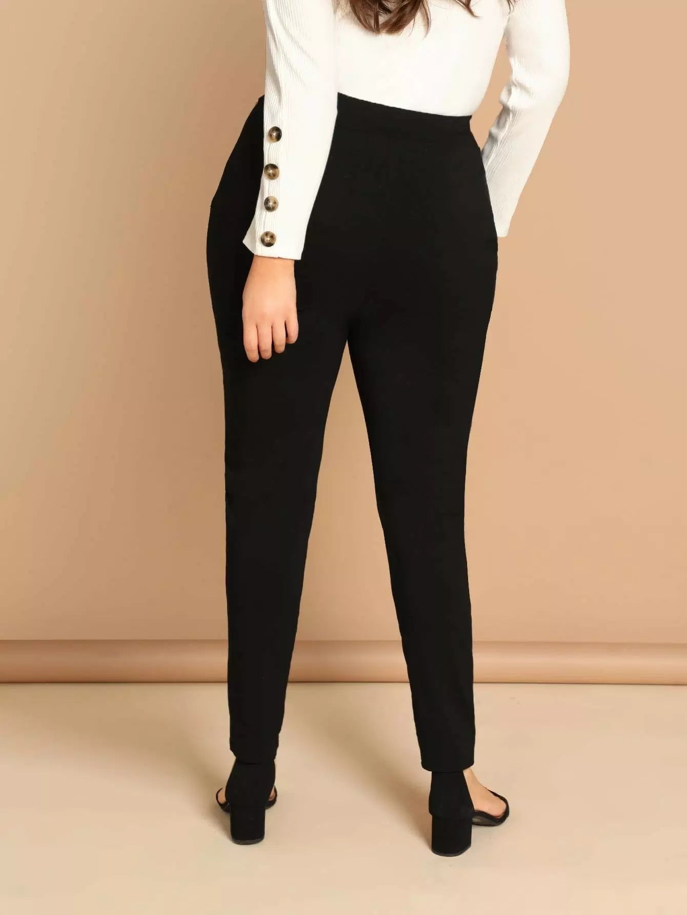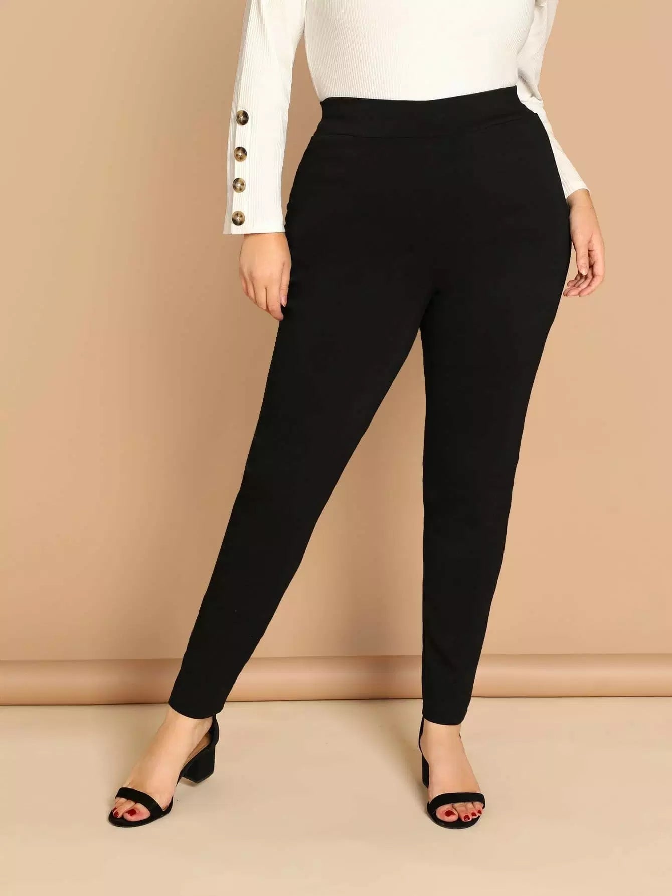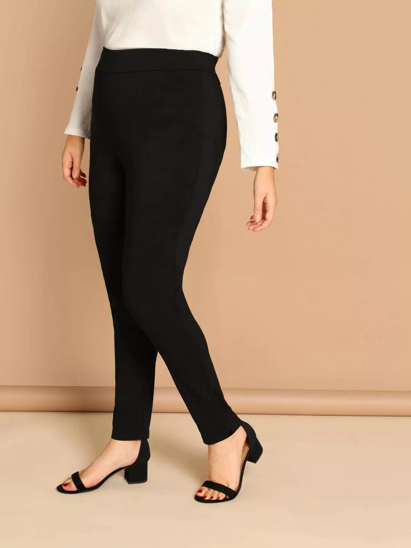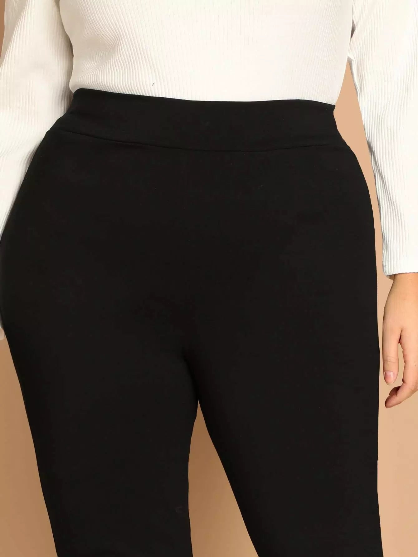 بنطلون ضيق ضيق ضيق سادة عالي الخصر زائد