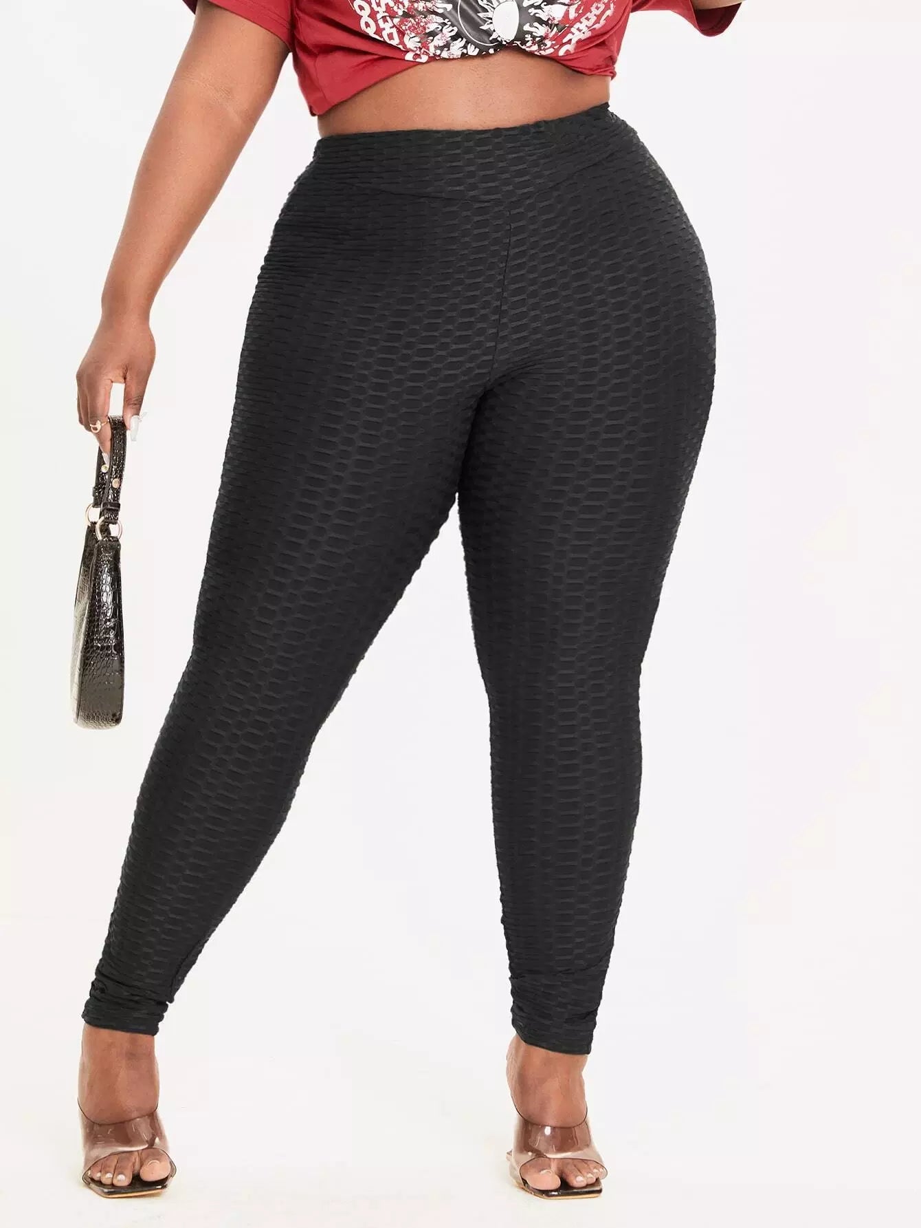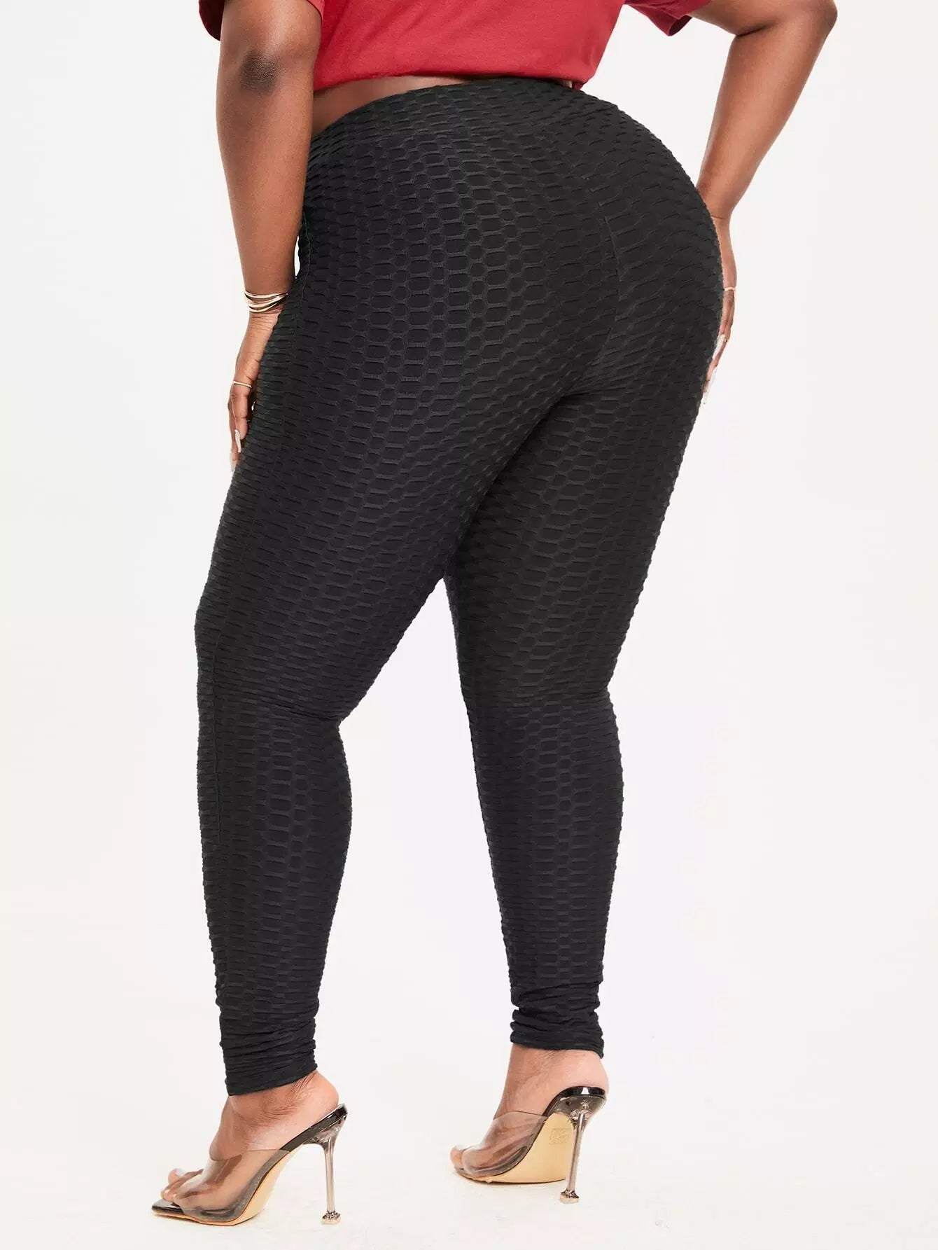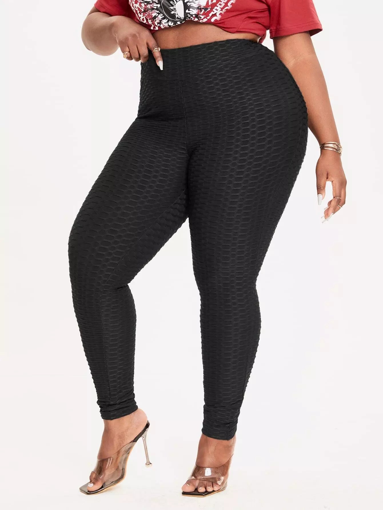 بنطلون ضيق بخصر عالٍ عالي الخصر بنقشة قرص العسل بلس