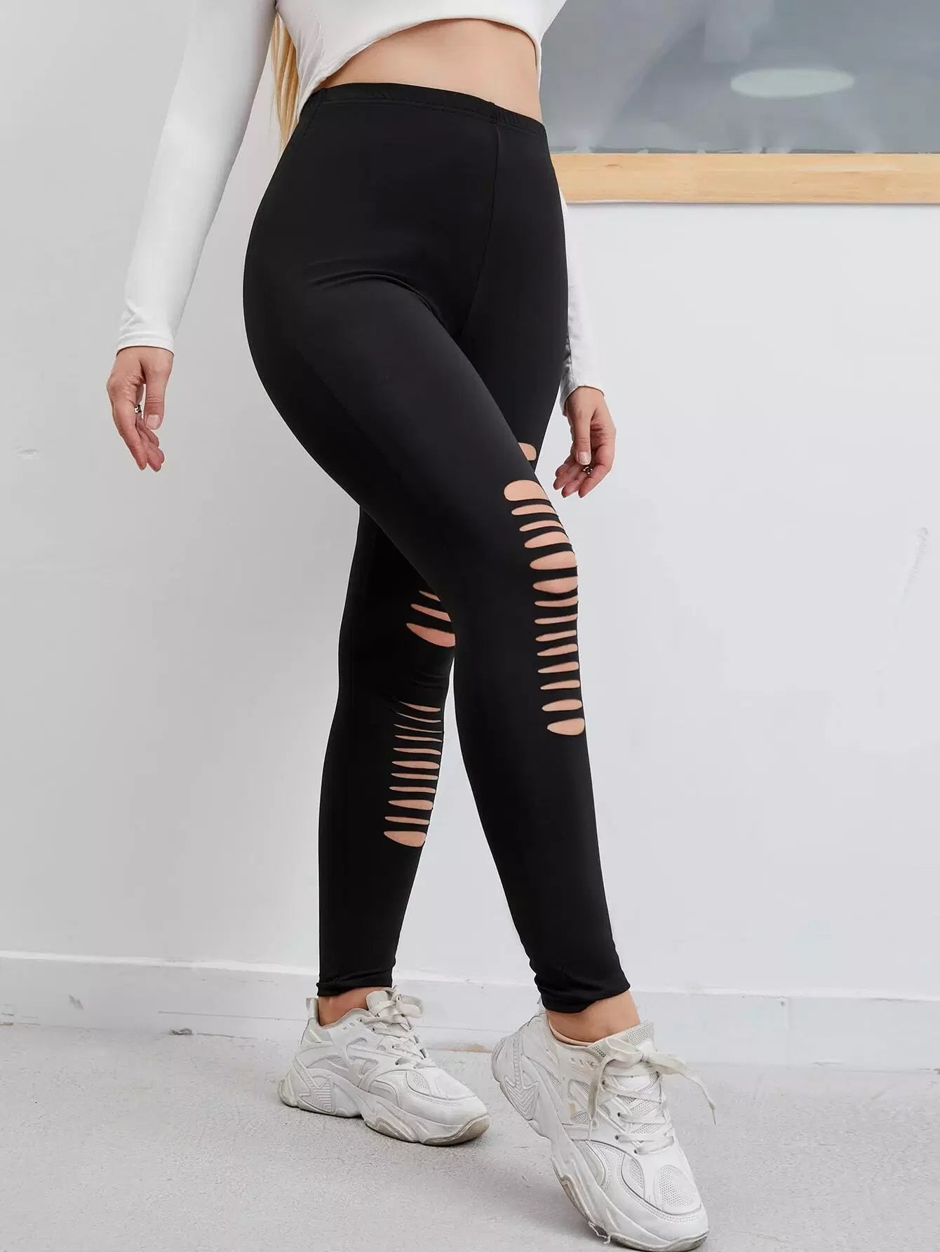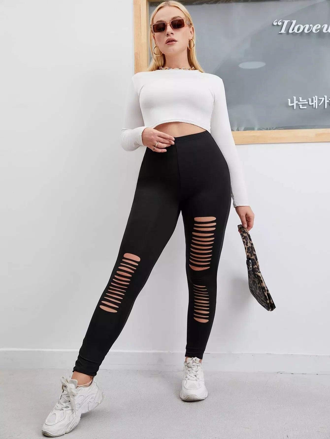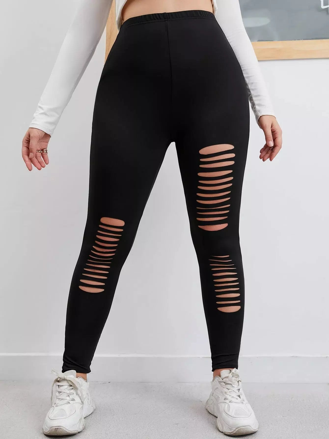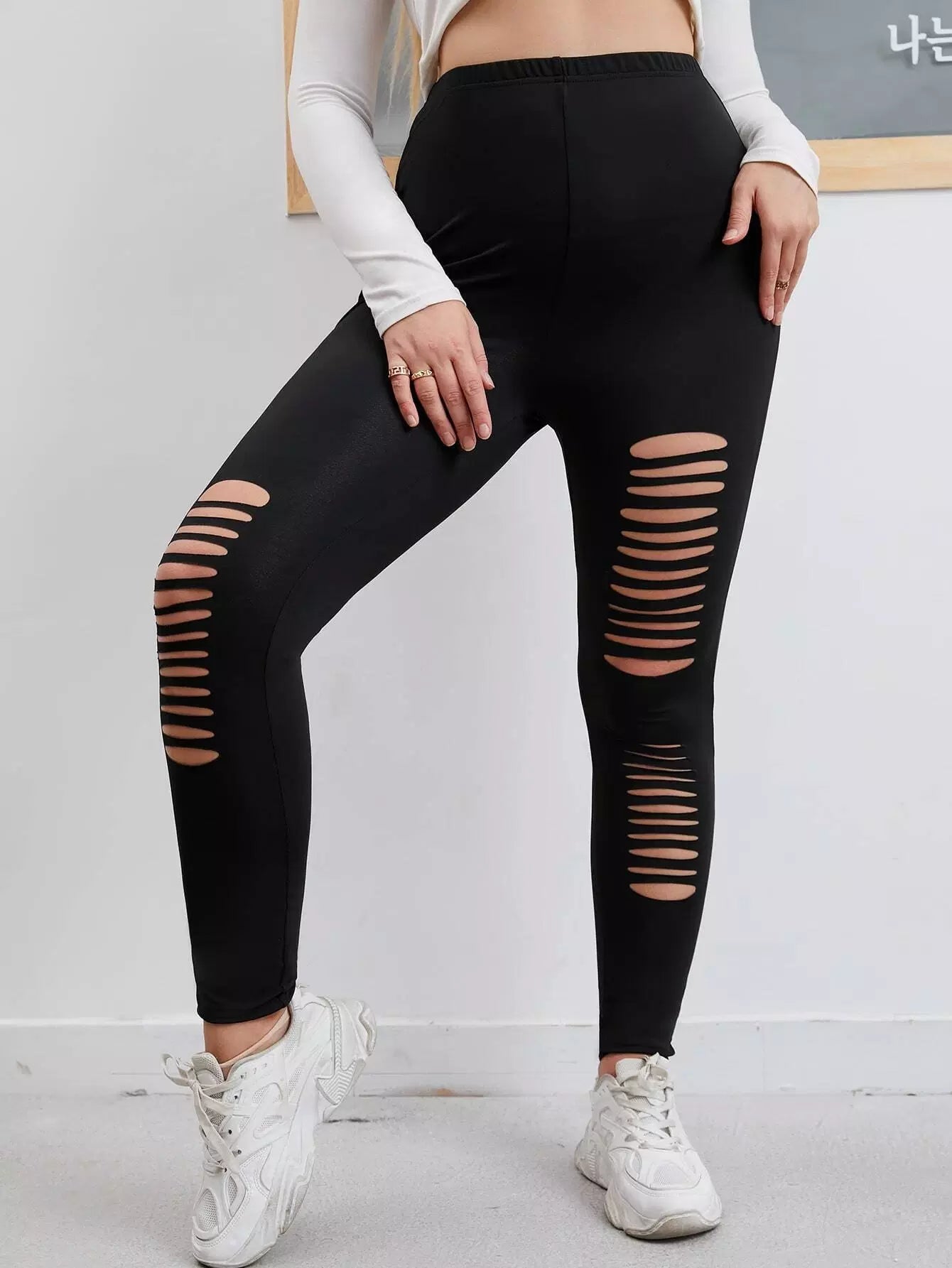 بنطال ضيق بخصر مطاطي بقصّة سلّم زائد