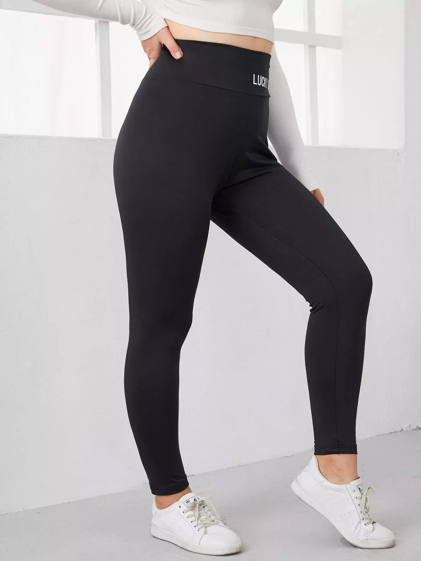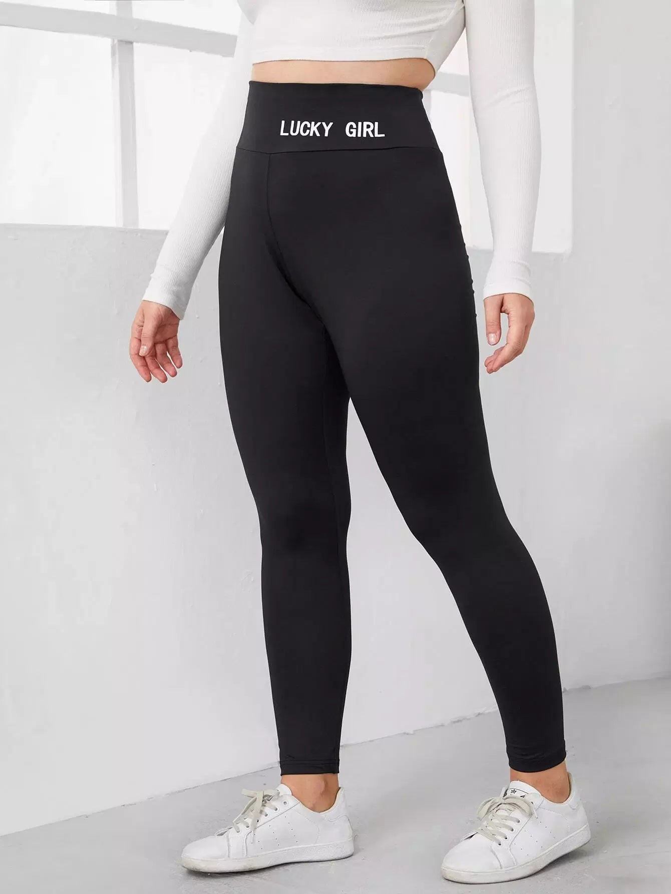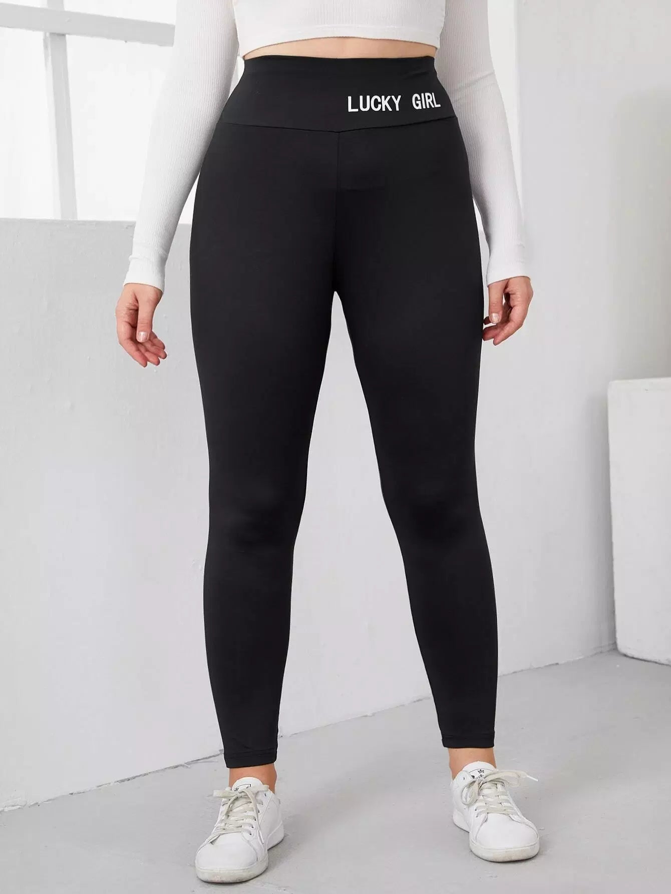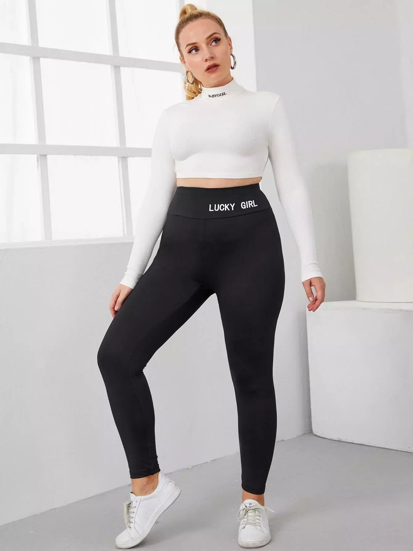 بنطلون ضيق بحزام خصر عريض برسومات حروف زائد
