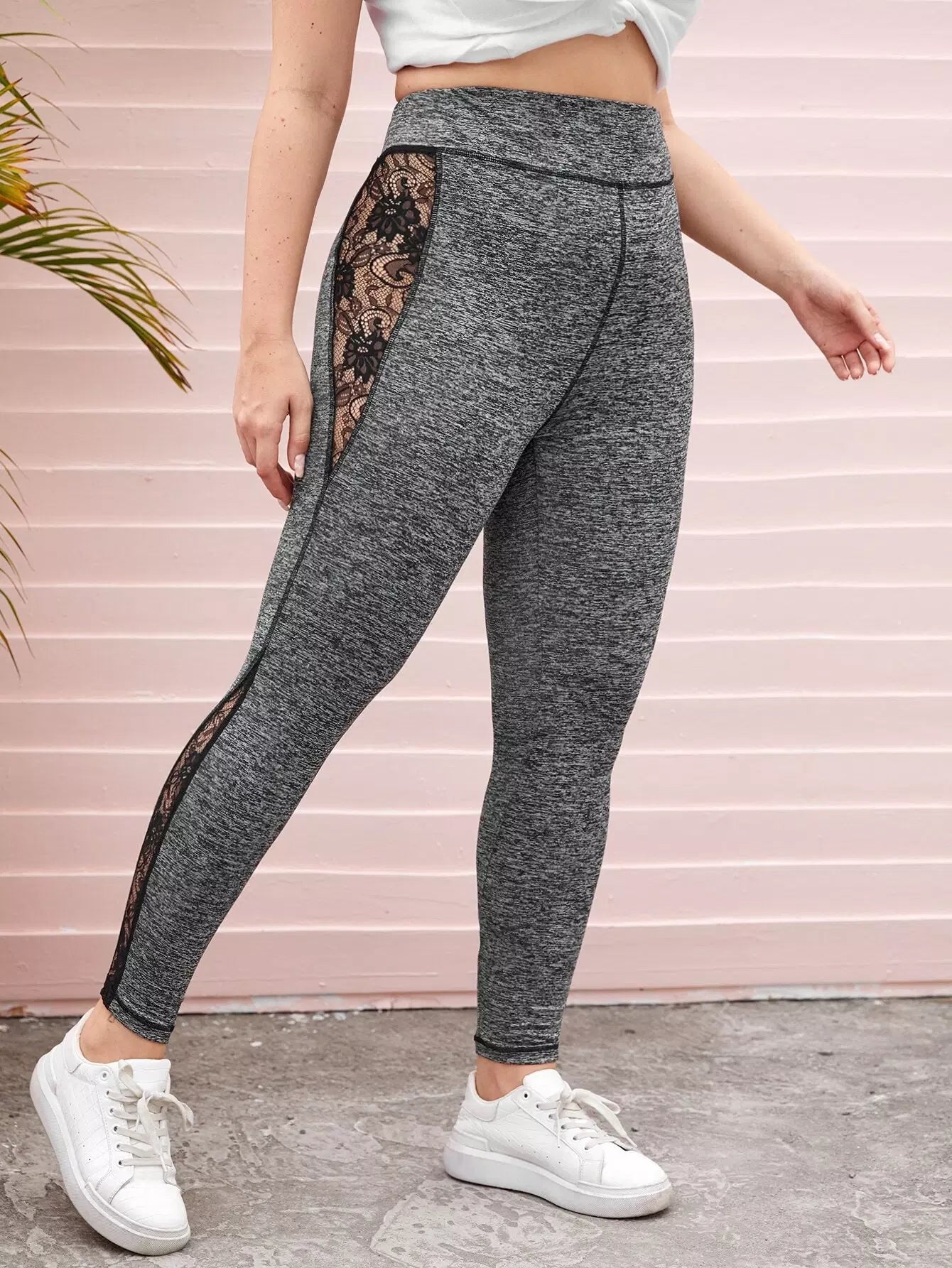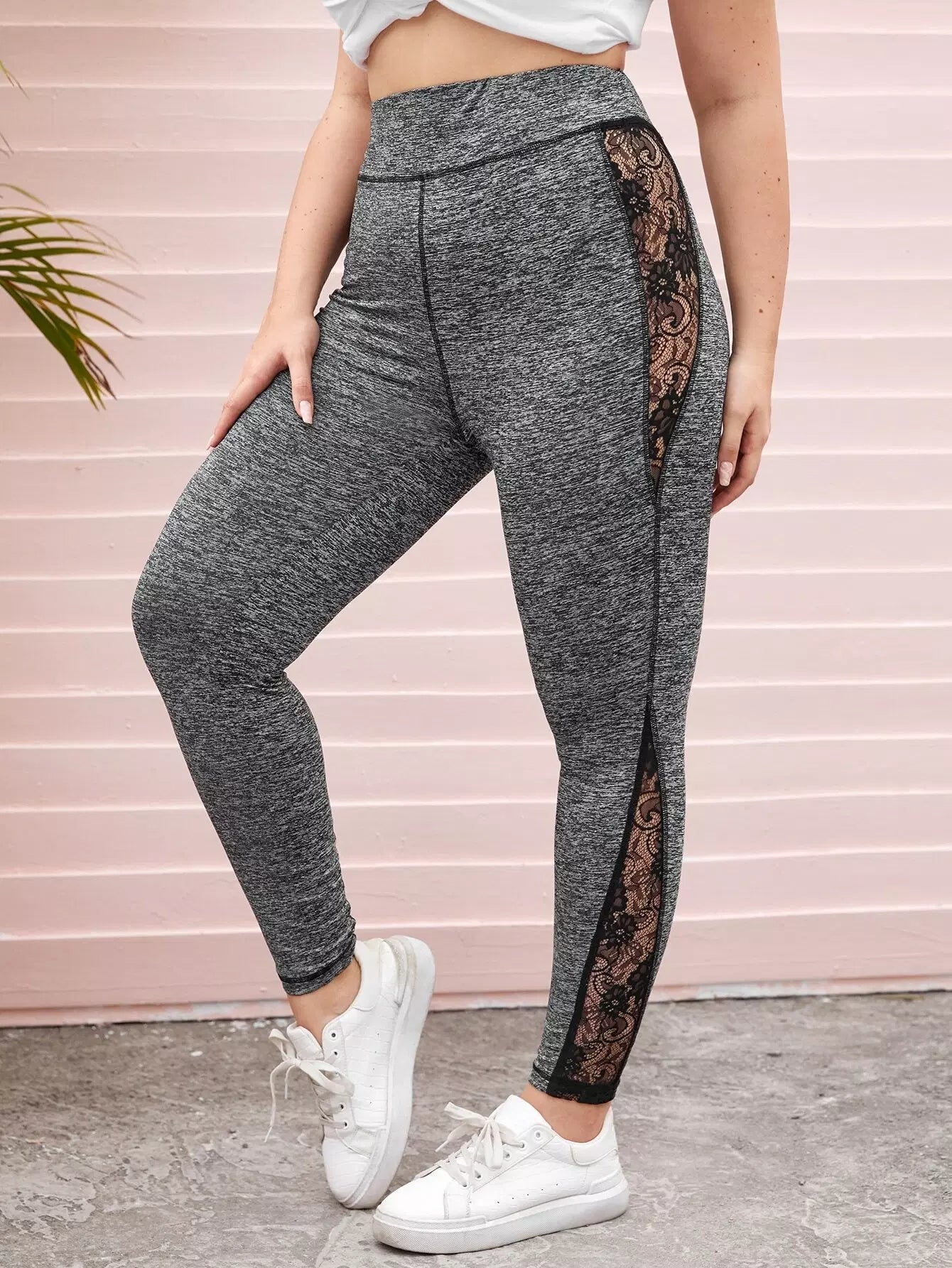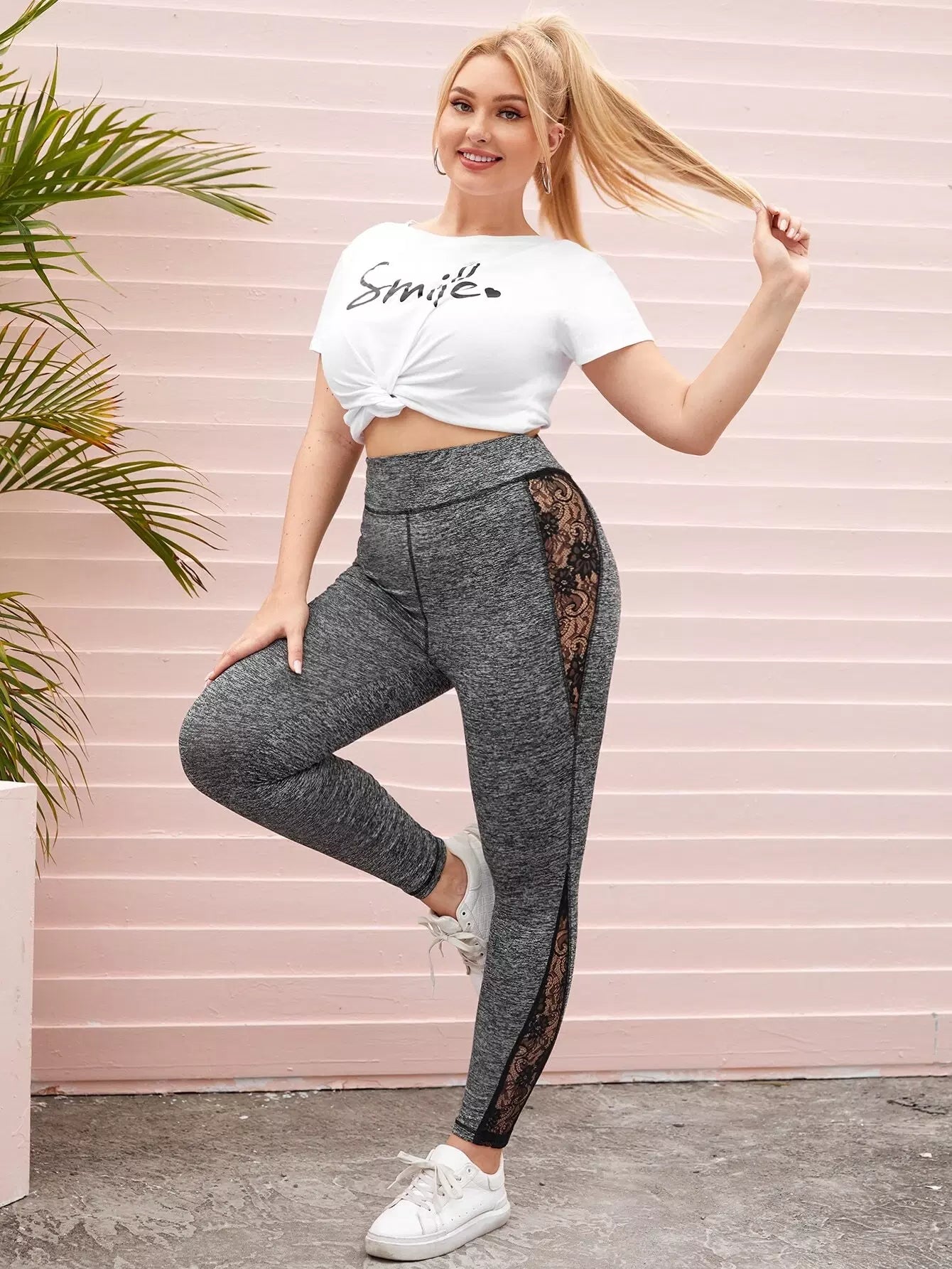 بنطلون ضيق بحياكة دانتيل محبوكة زائد