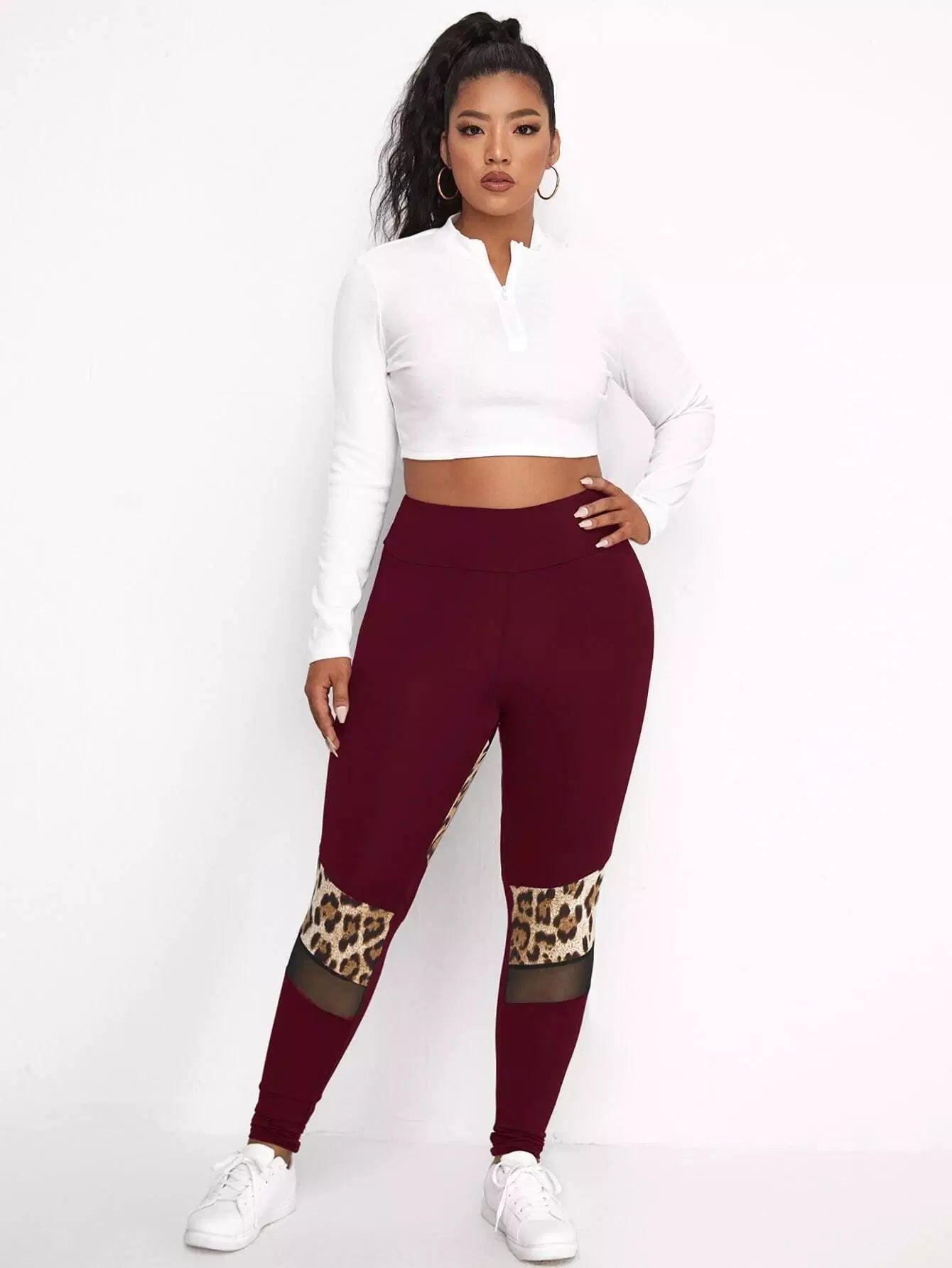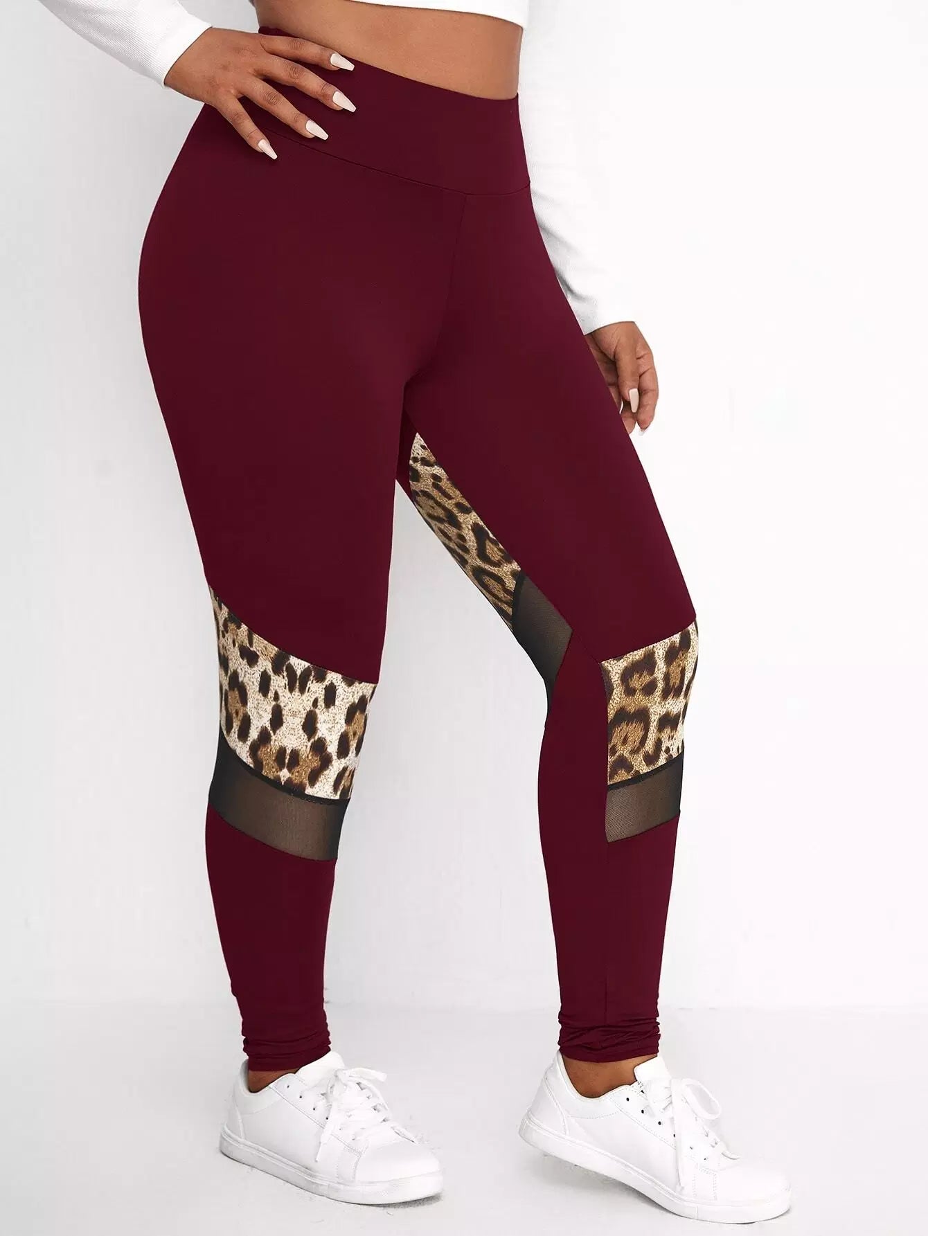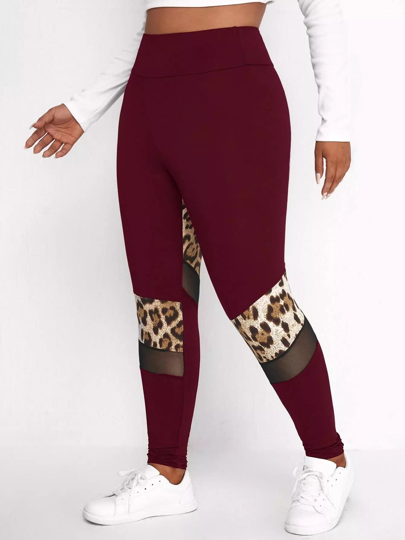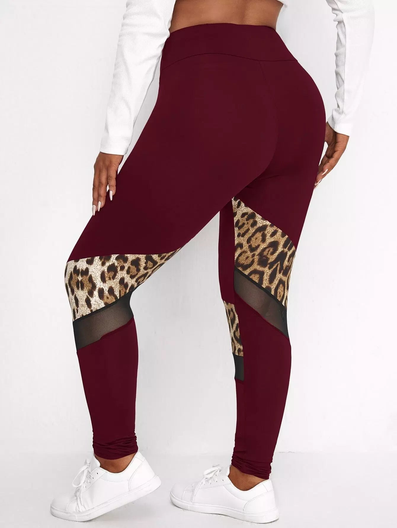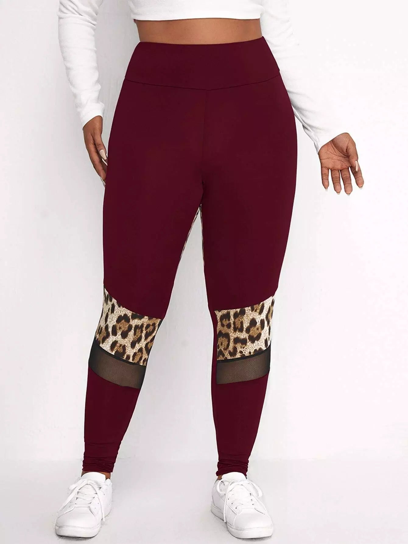 بنطلون ضيق بطبعة جلد النمر بلس شبكي بنقشة جلد النمر