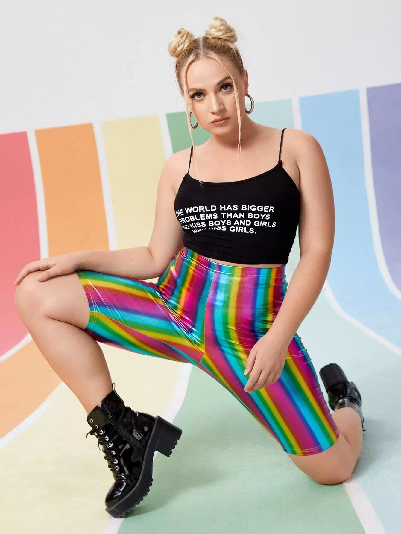 بنطلون ضيق مخطط بألوان قوس قزح زائد من البولي يوريثان