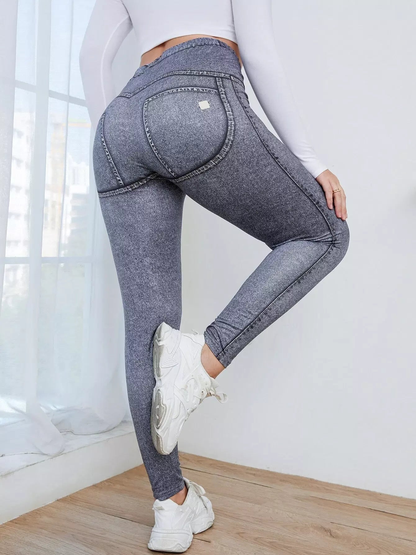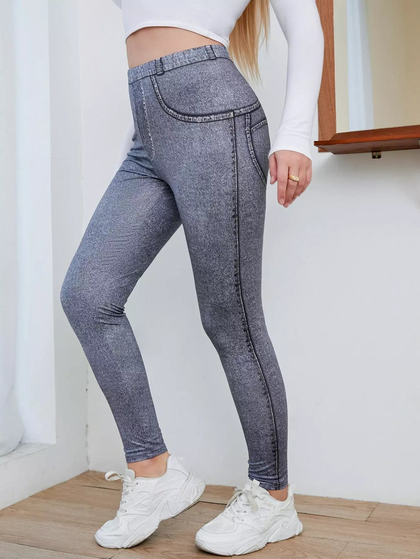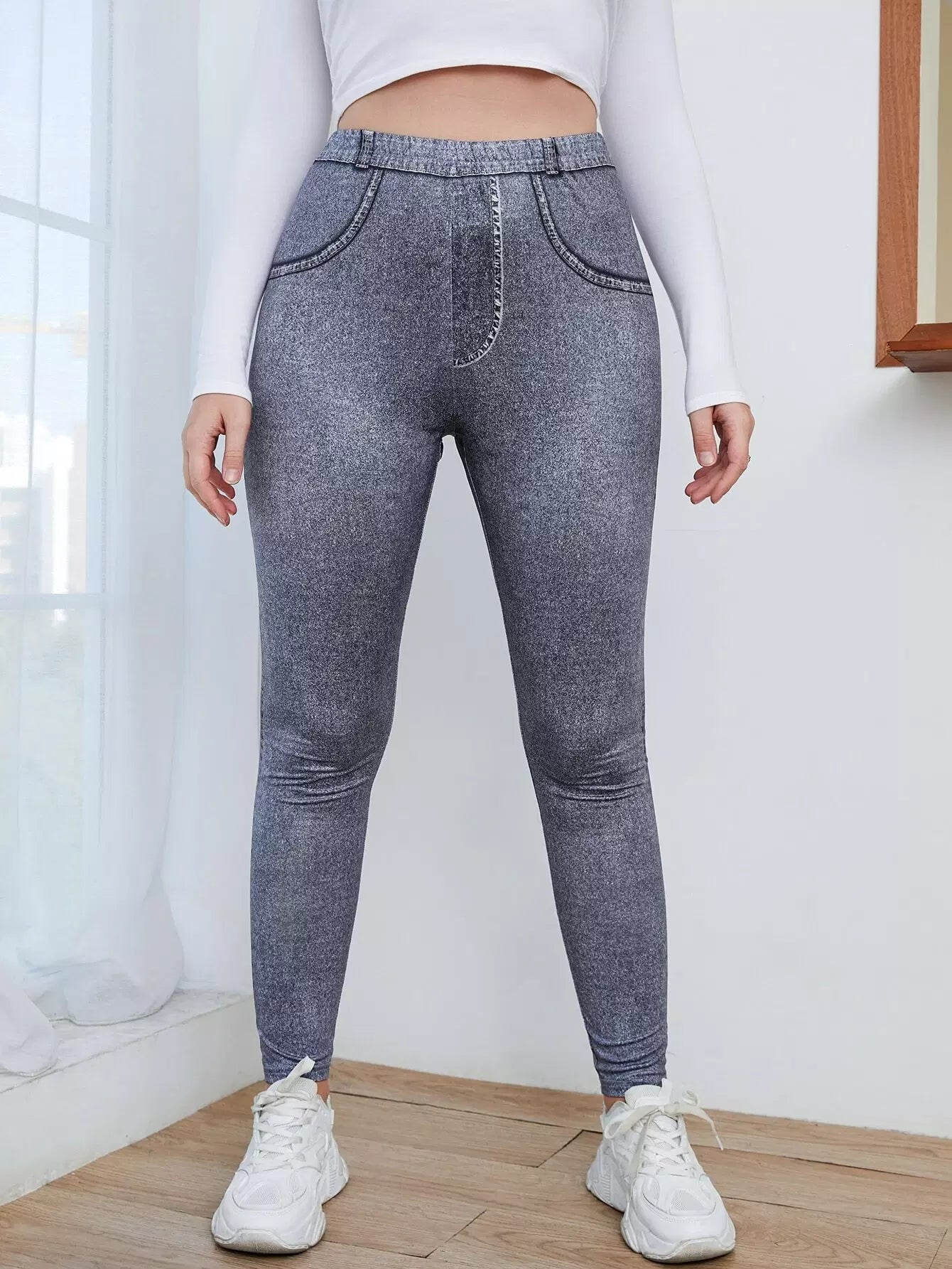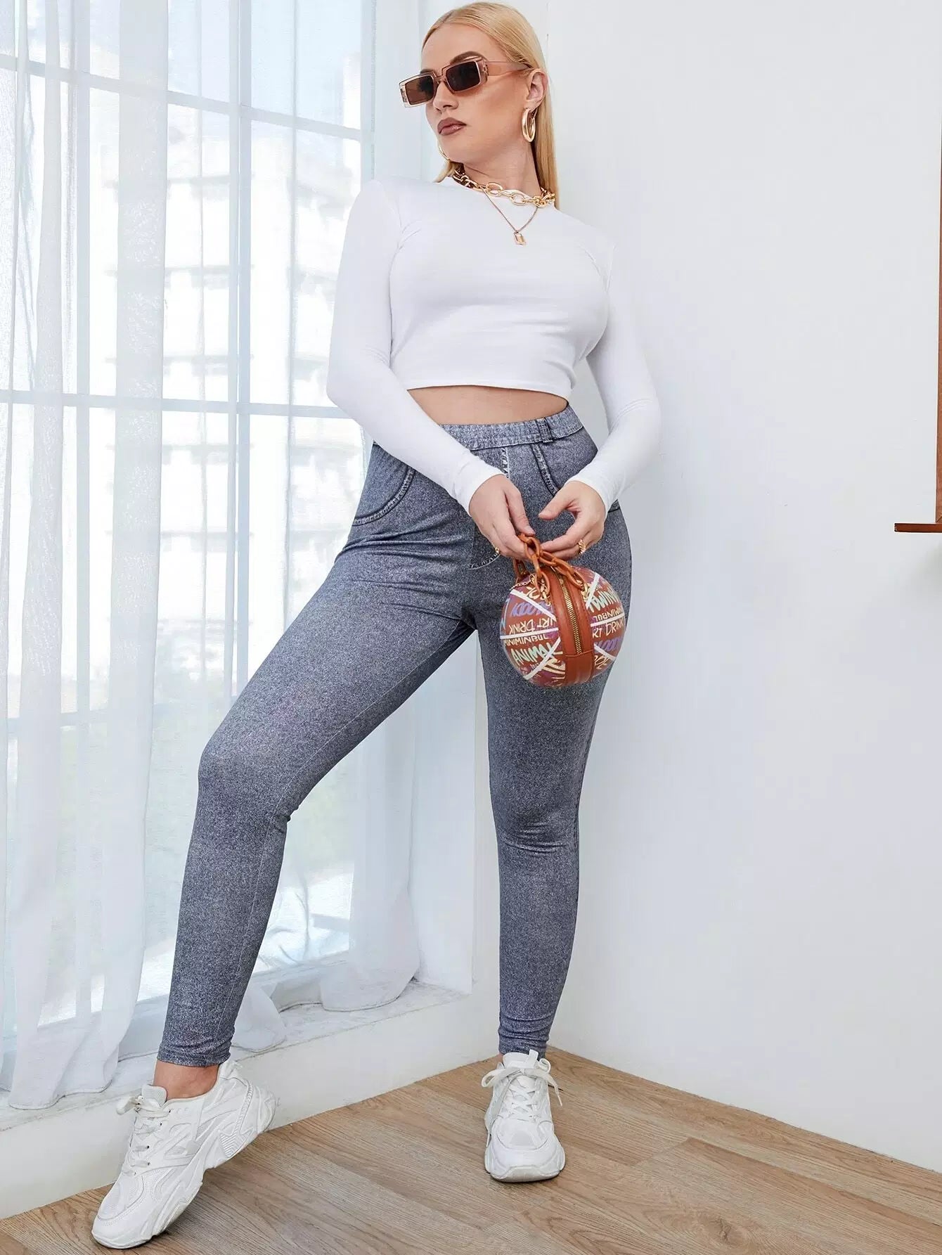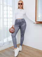 بنطال ضيق بخصر عالي الخصر سادة بلاس