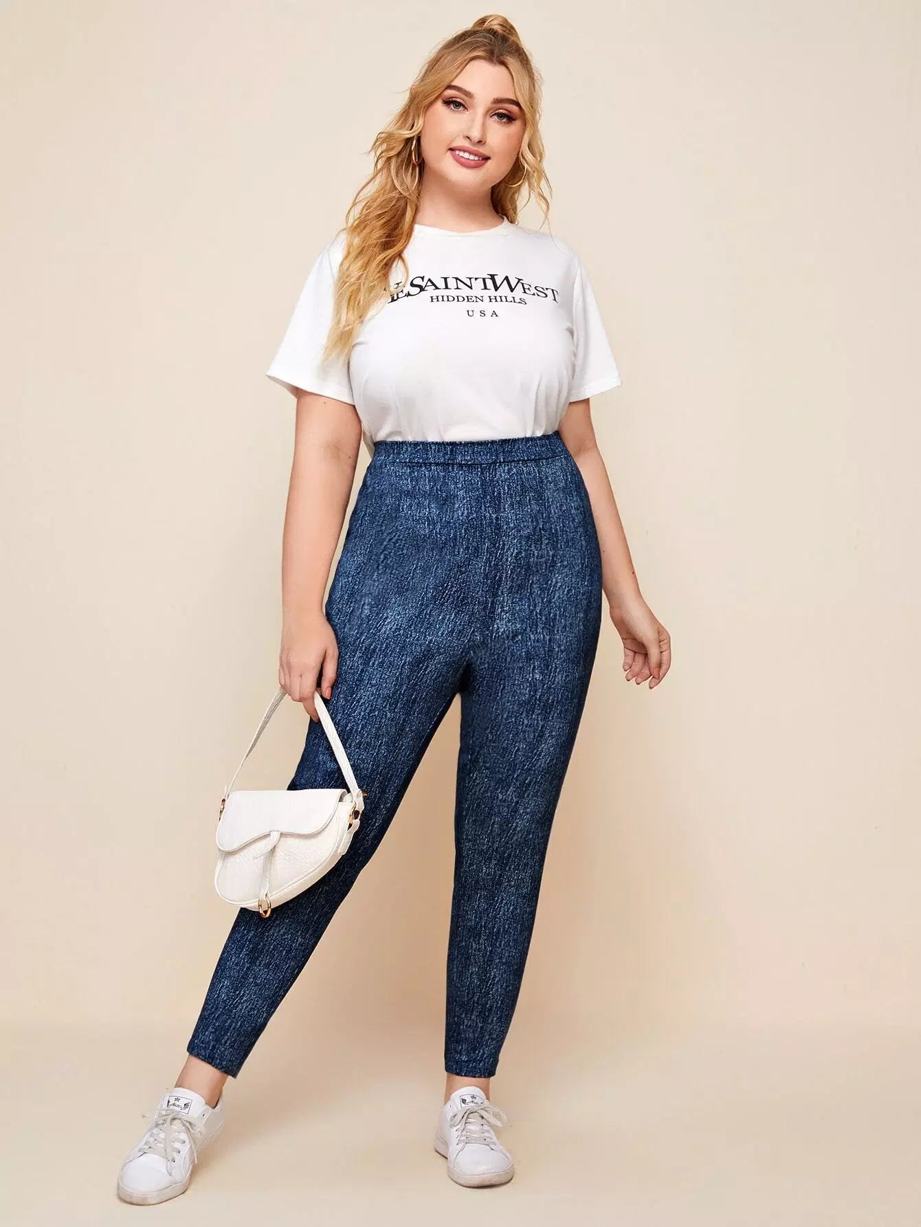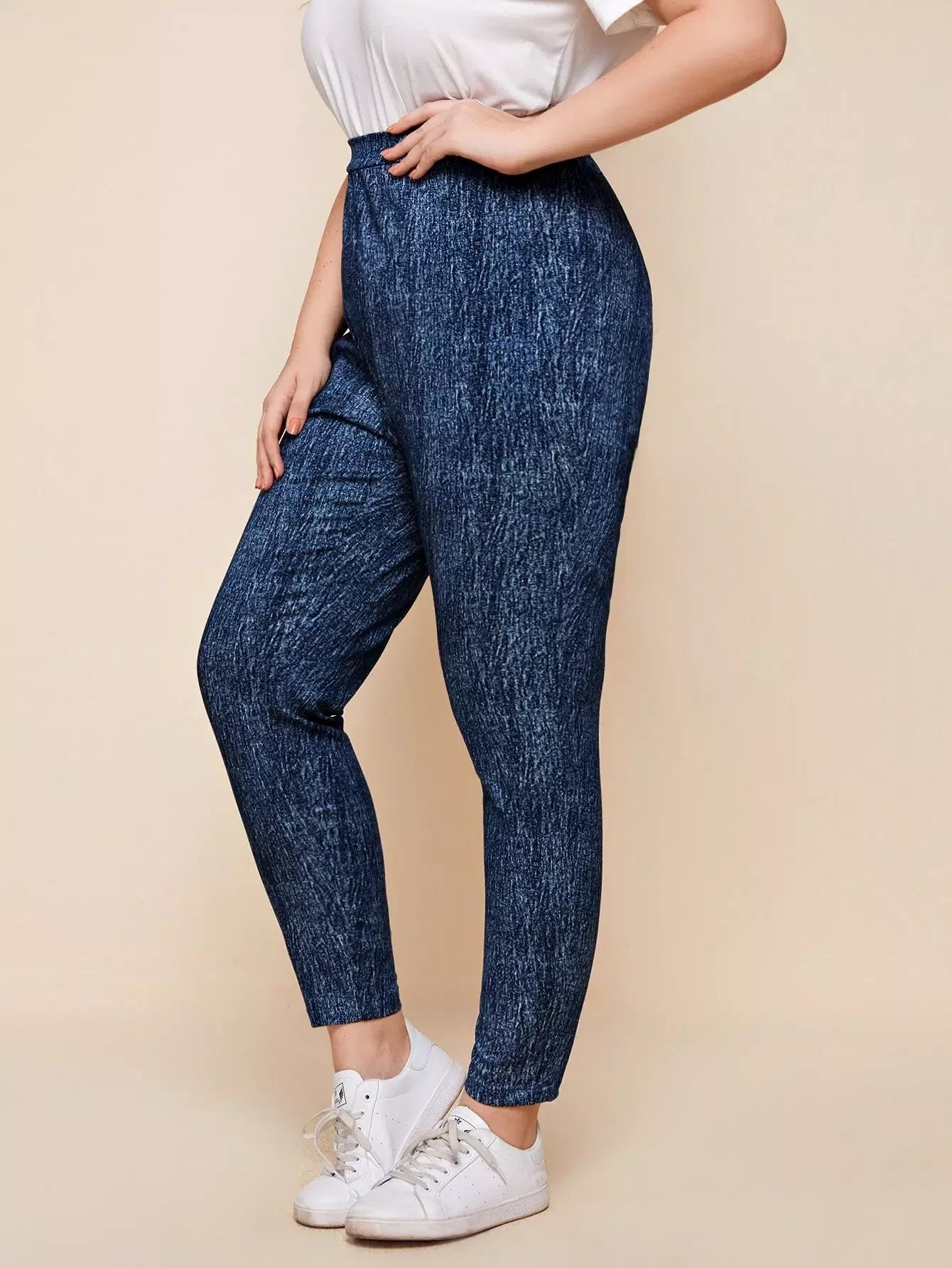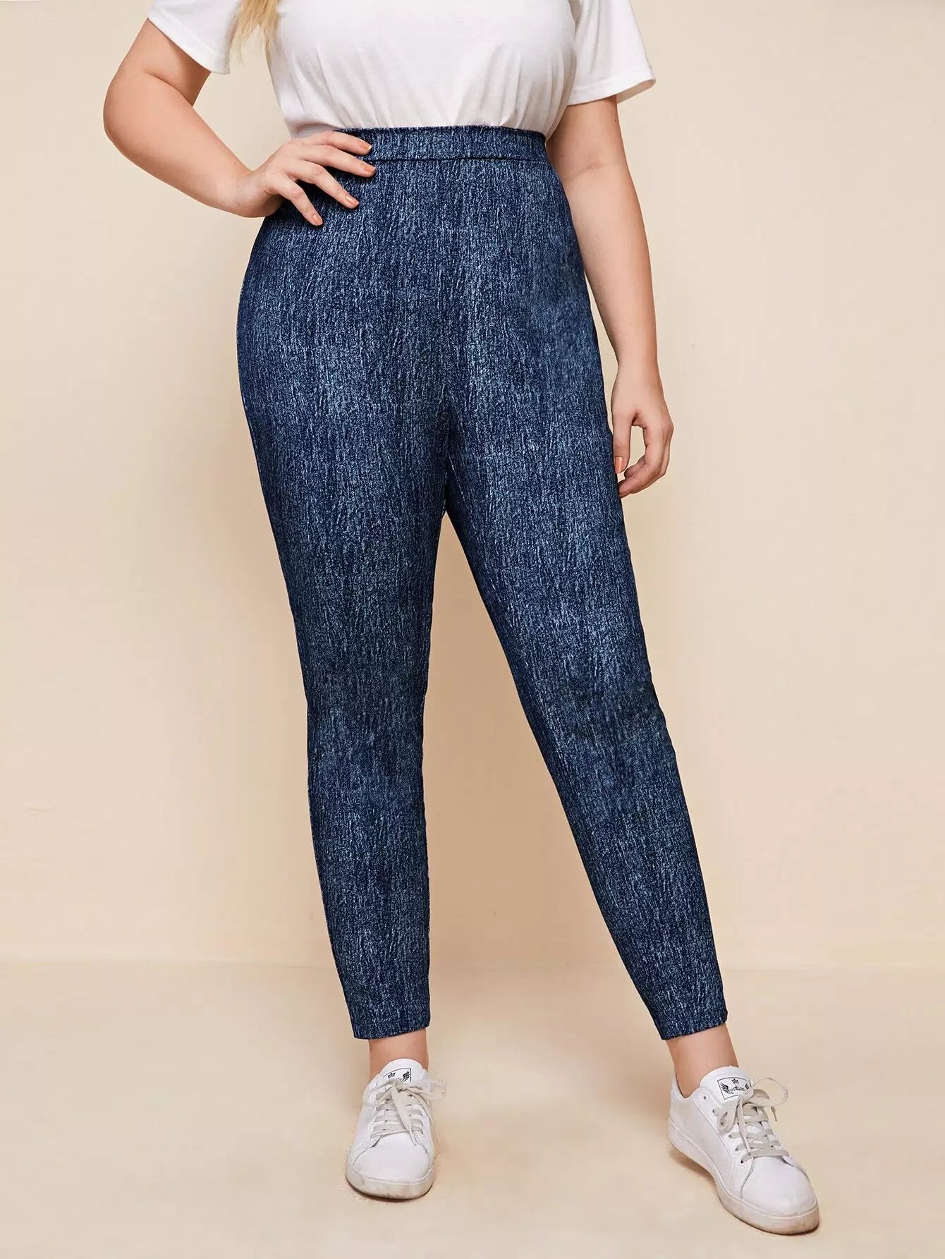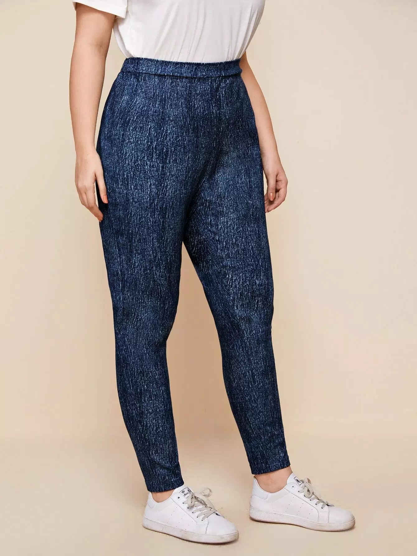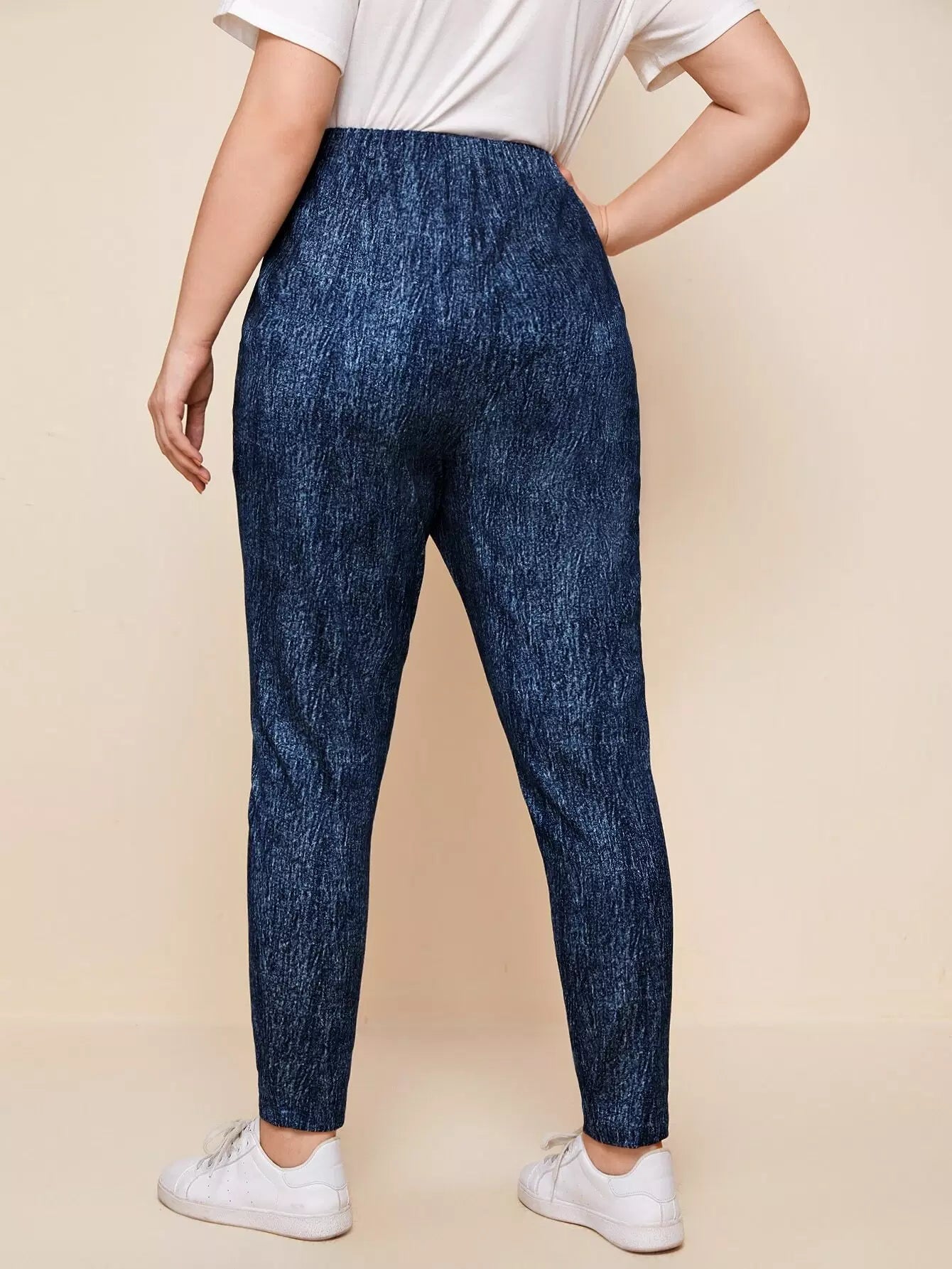 بنطال ضيق بخصر عالي الخصر سادة بلاس