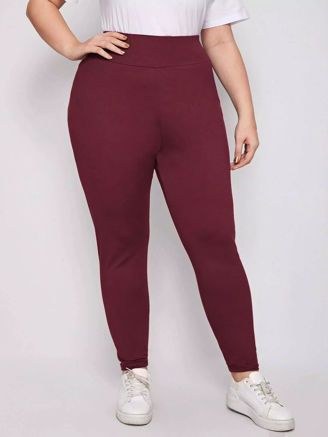 بنطلون ضيق بخصر عريض الخصر سادة بلس