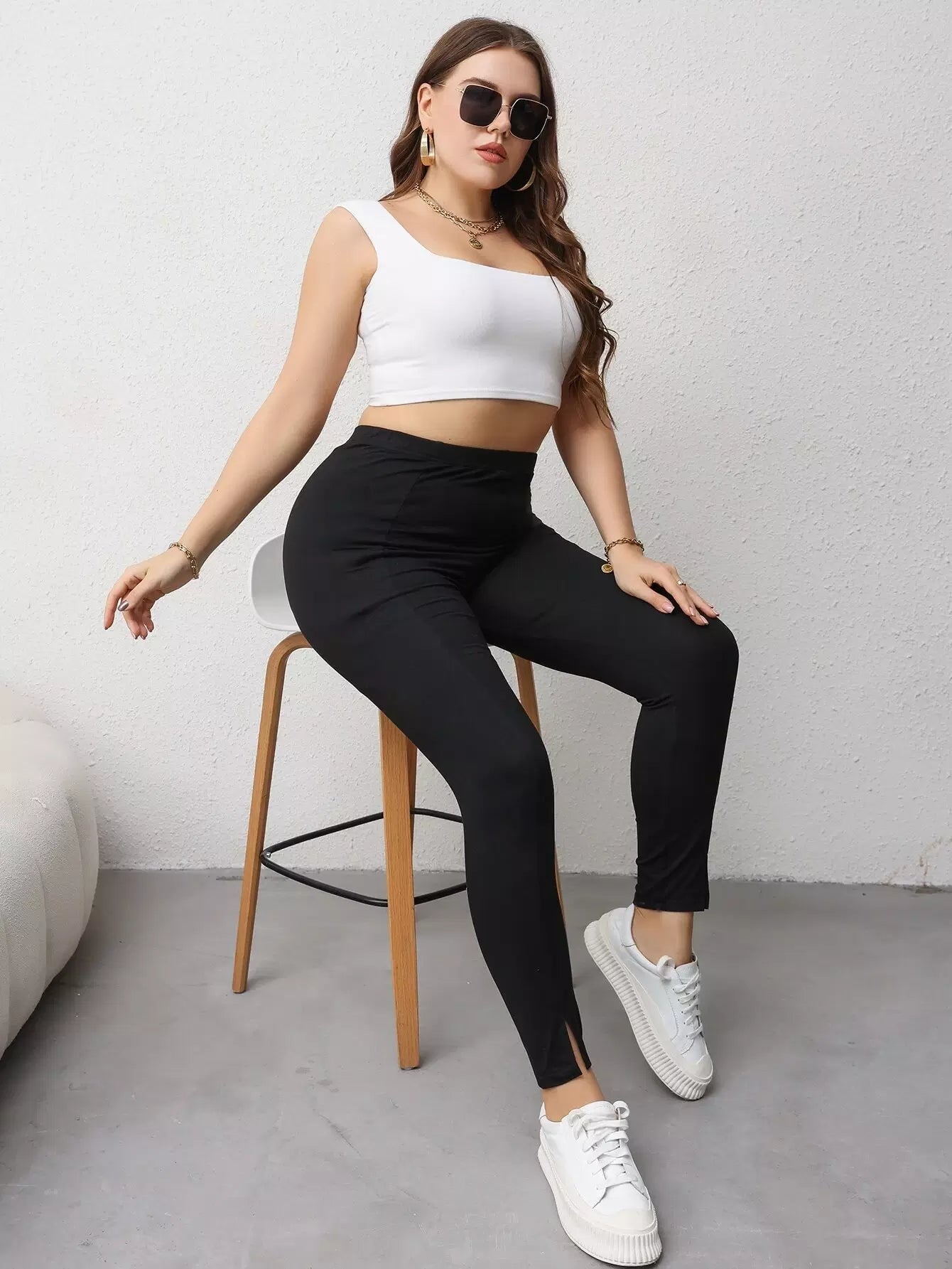 بنطال ضيق بحاشية منقسمة زائد