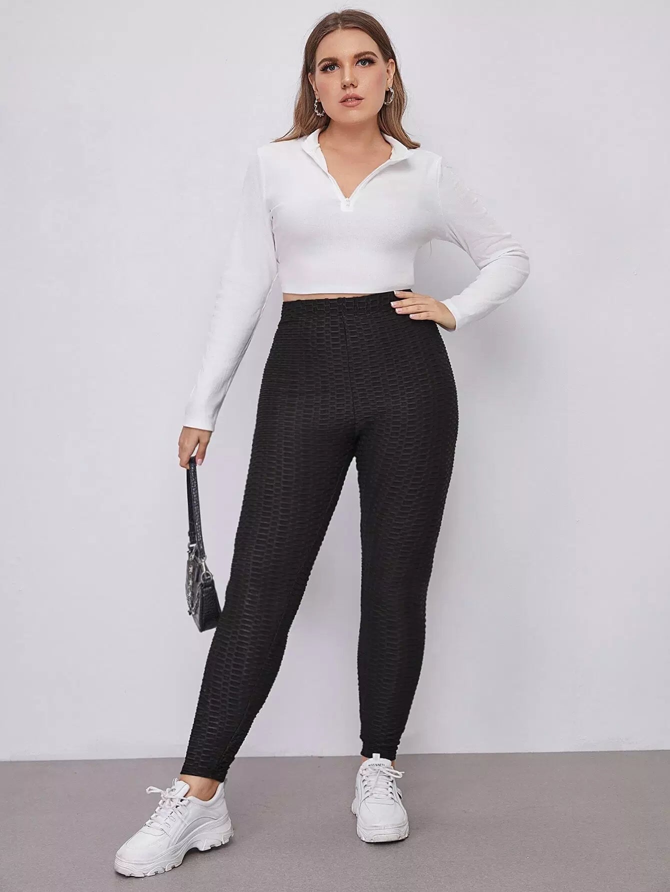 بنطلون ضيق ضيق ضيق سادة بنقشة زائد