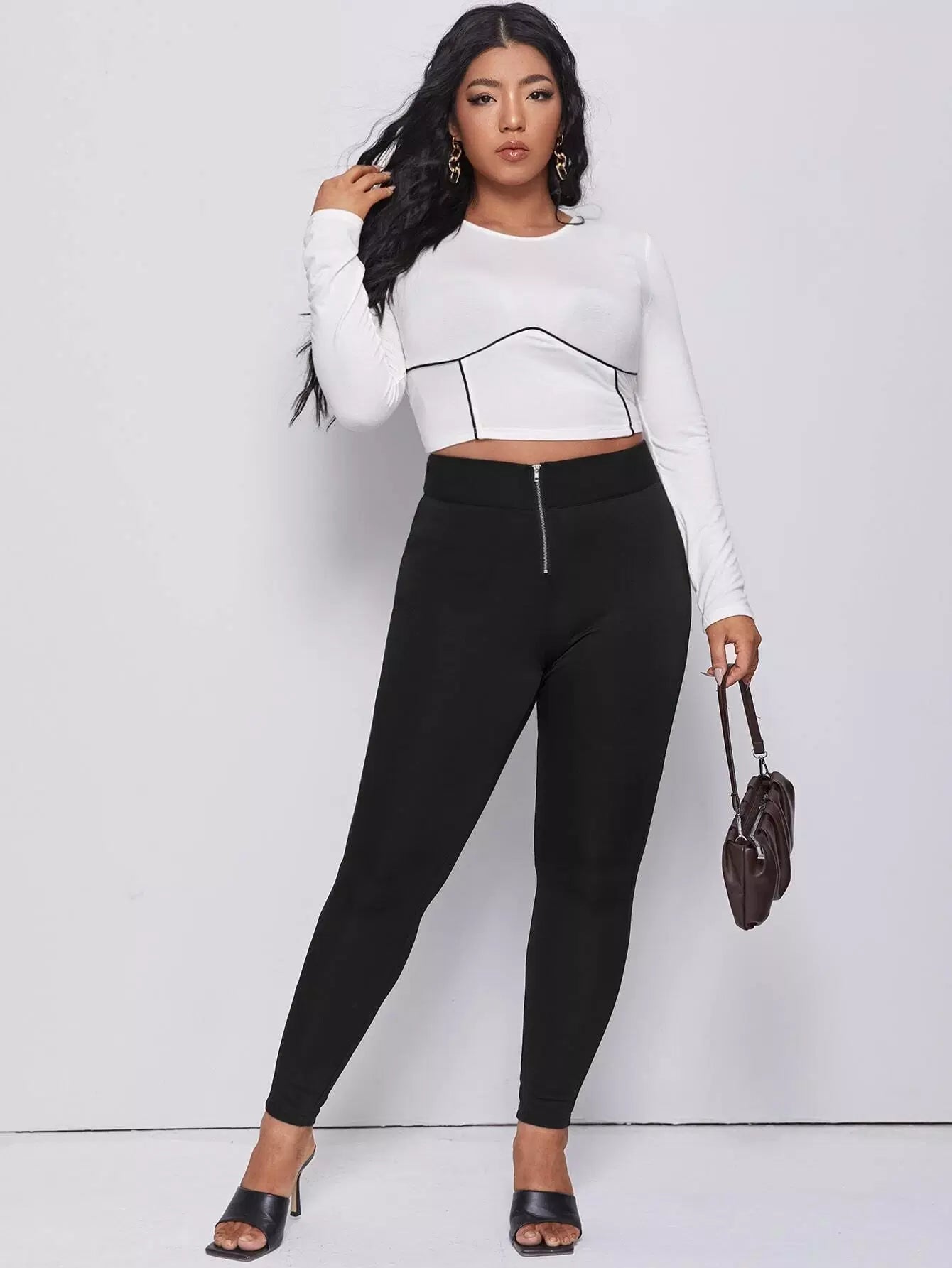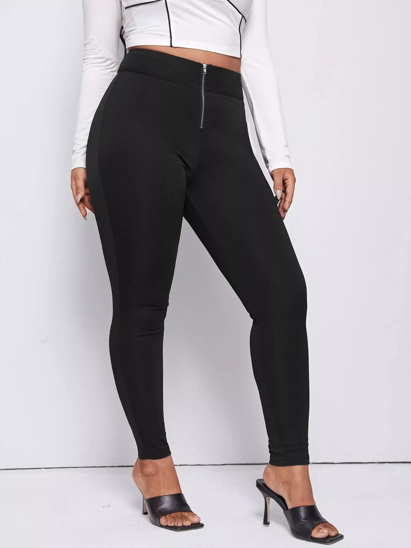 بنطلون ضيق ضيق بسحاب أمامي سادة بلاس
