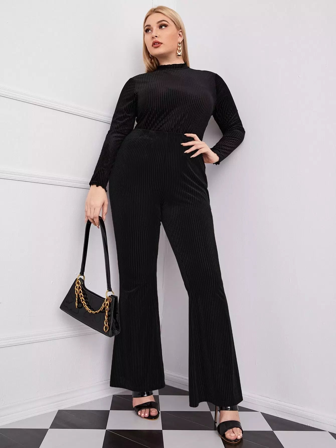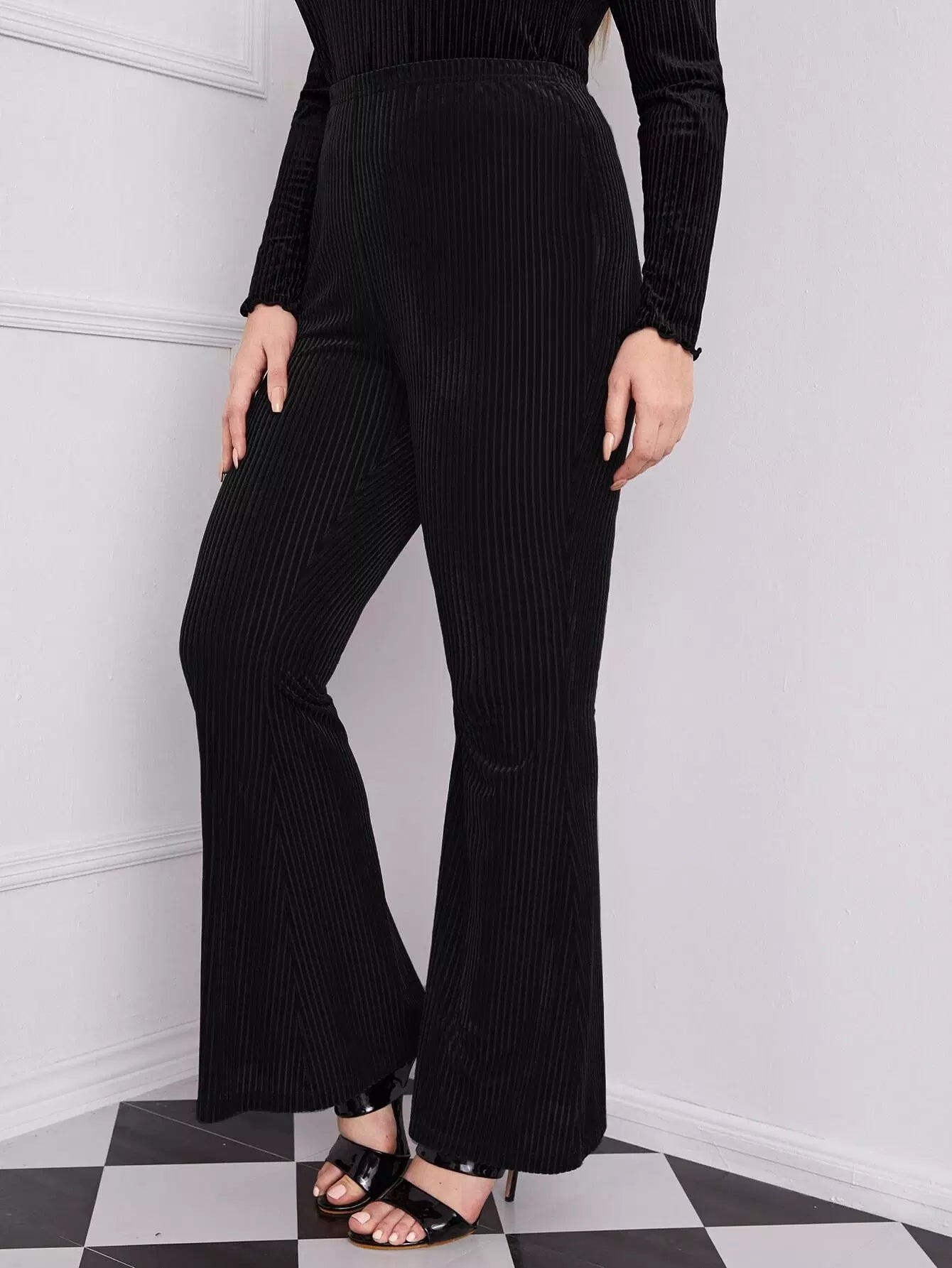 بنطلون مخملي واسع الساقين مخملي بلاس