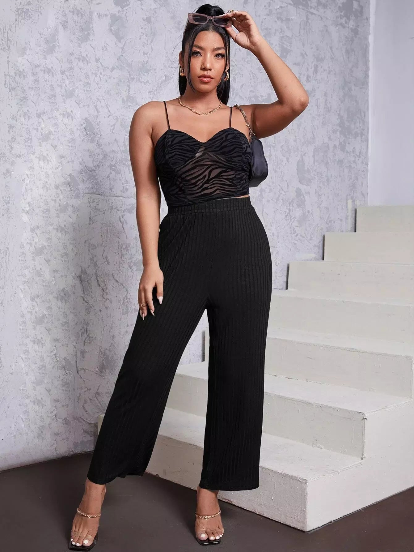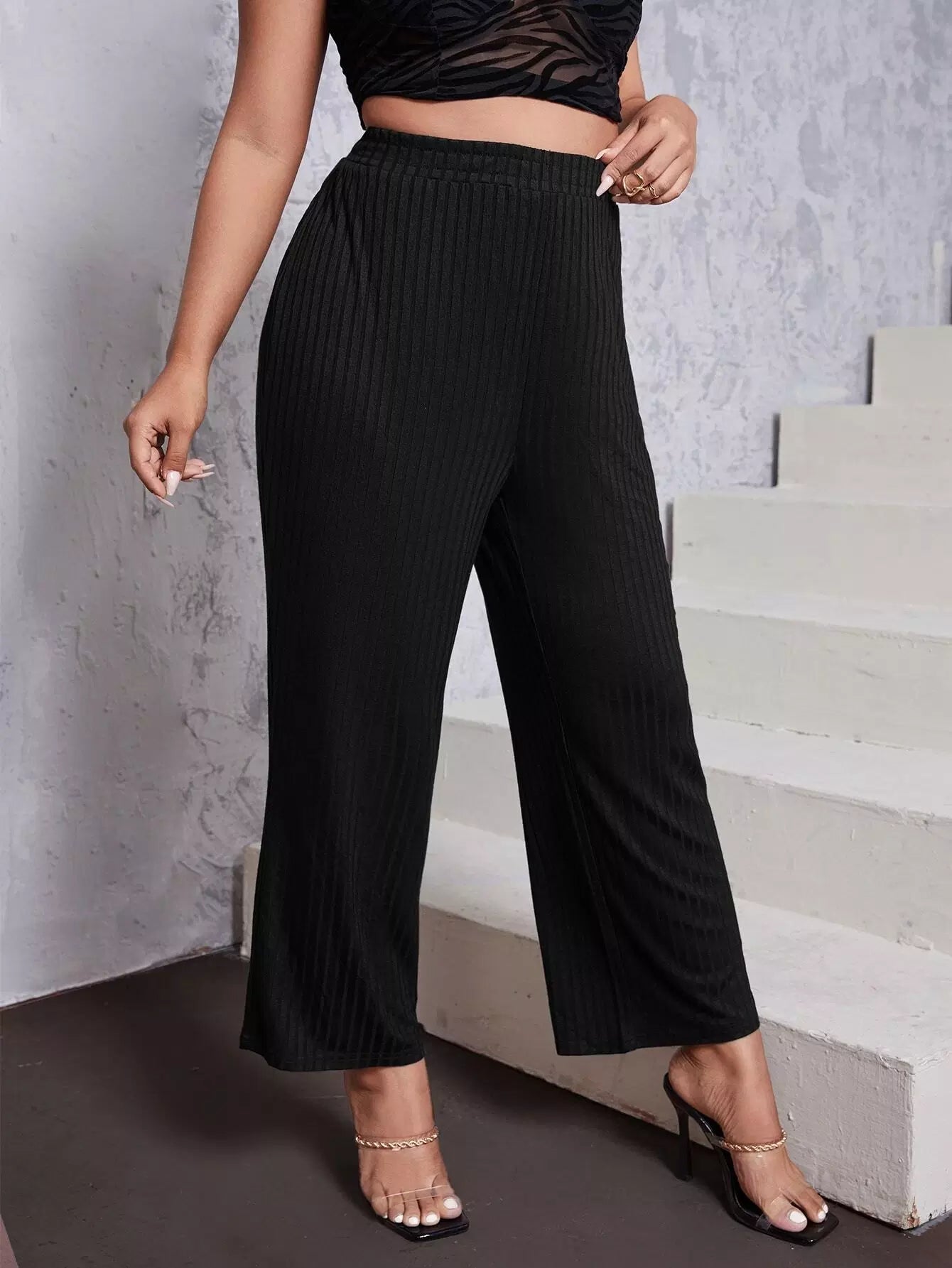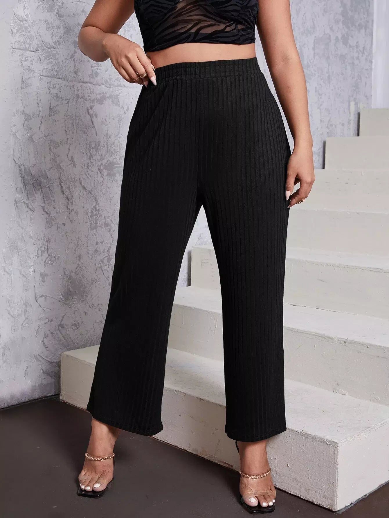 بنطلون مضلع سادة مضلع زائد