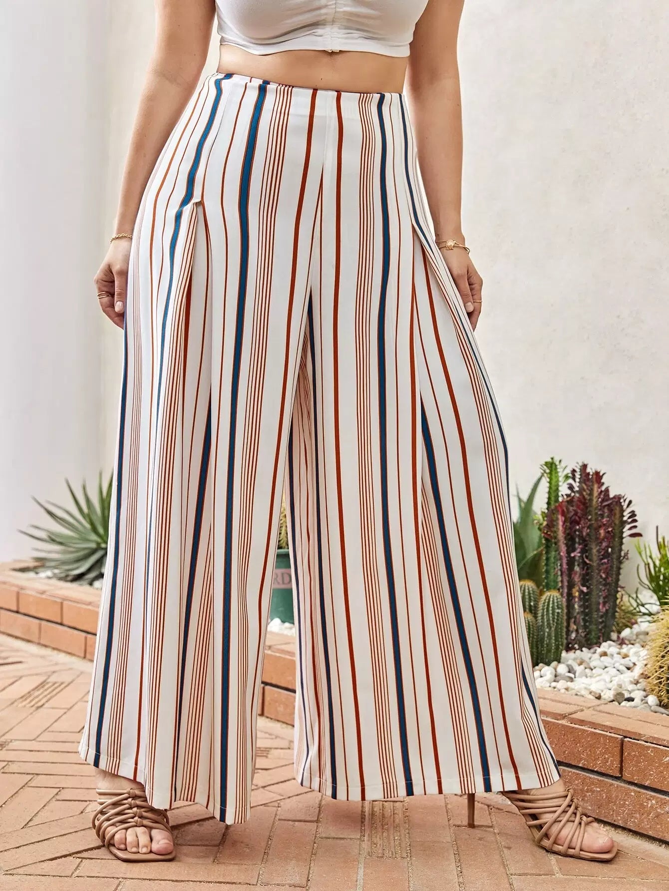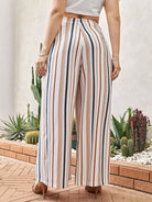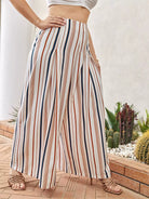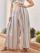 بنطلون مخطط عمودي عريض الساقين مخطط عمودي زائد