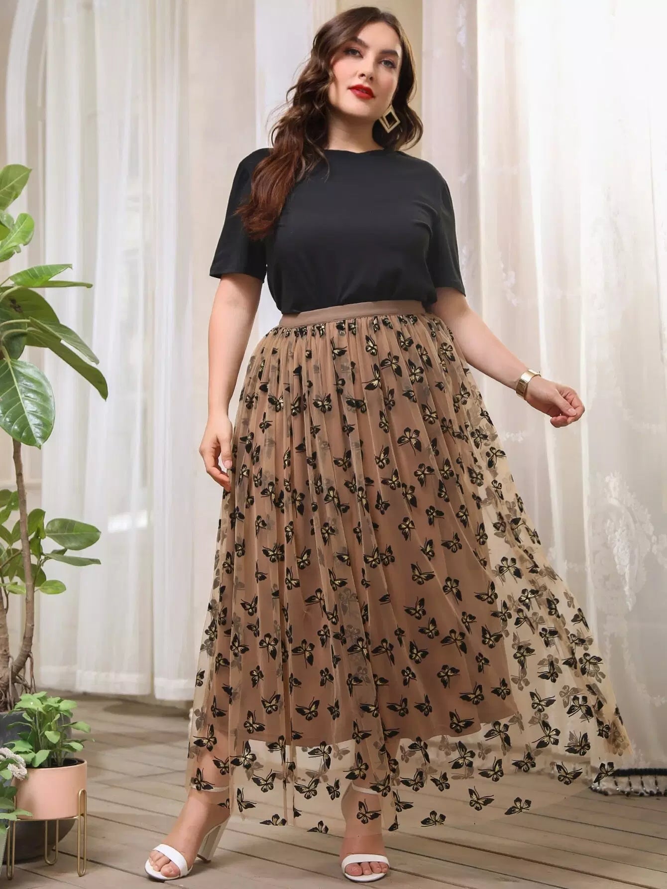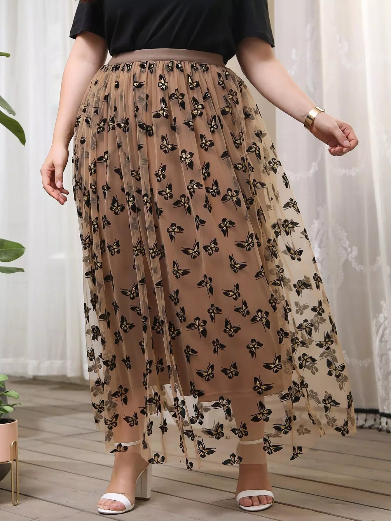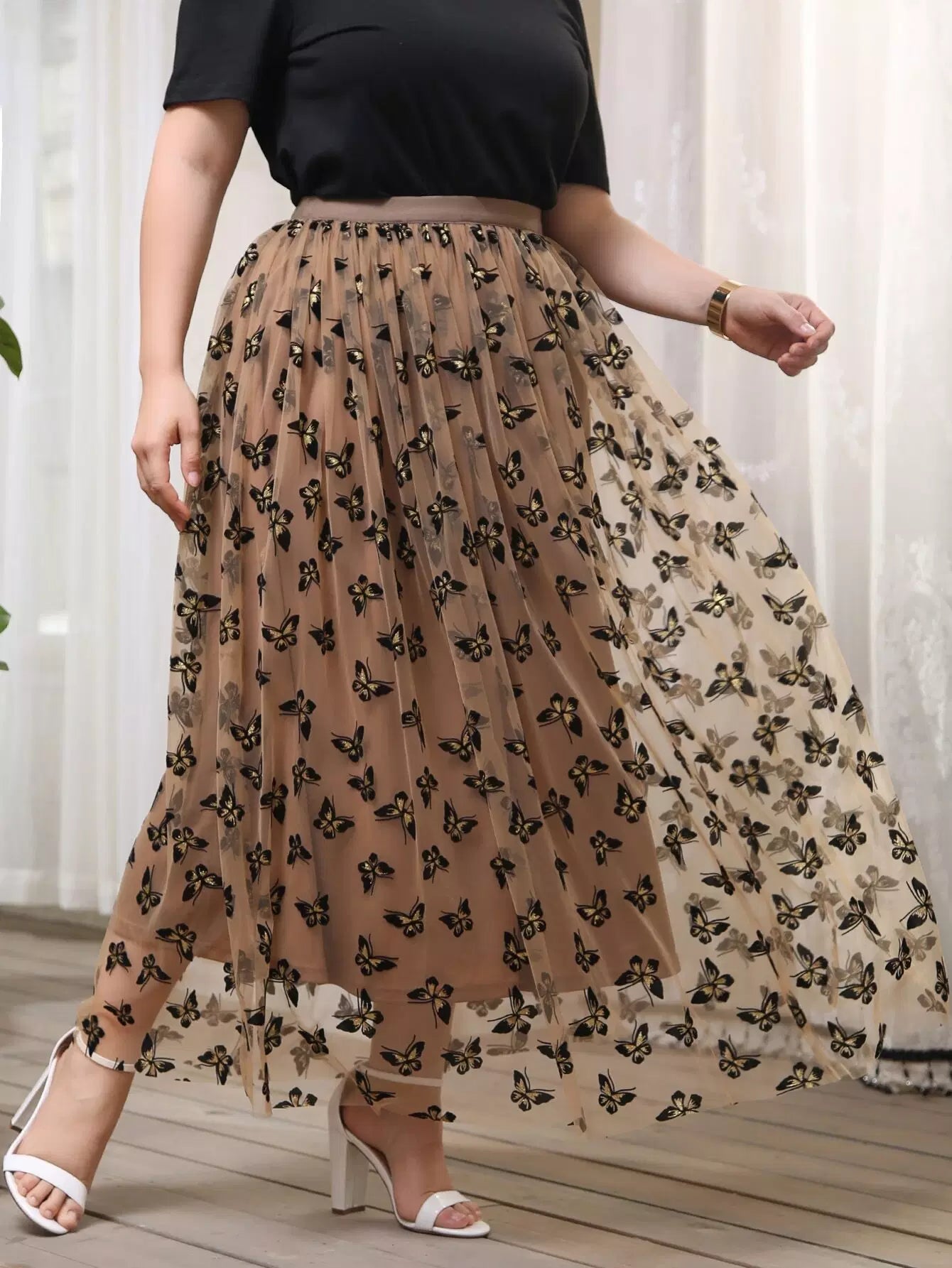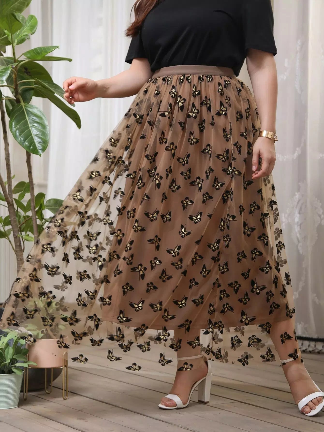 تنورة بطانة شبكية مغطاة بنقشة فراشة زائد