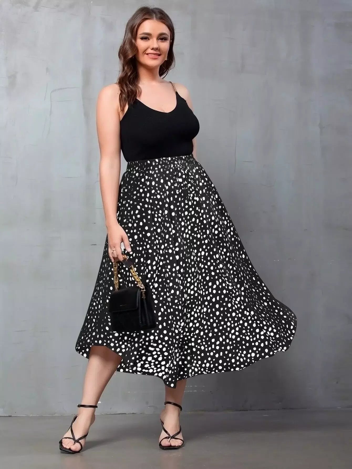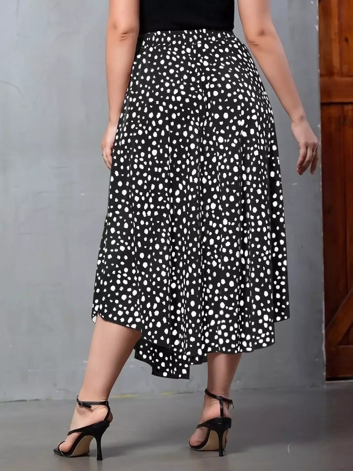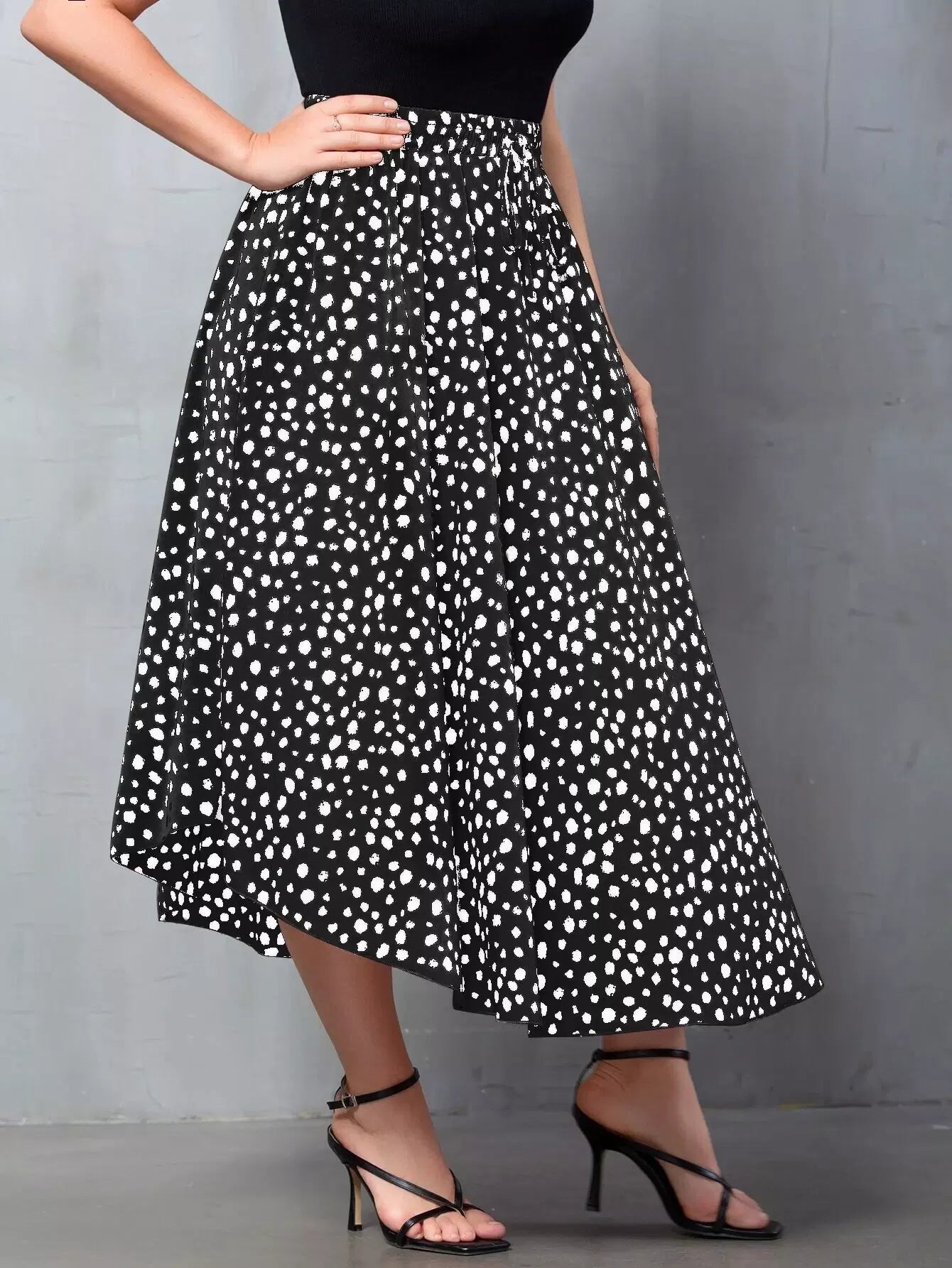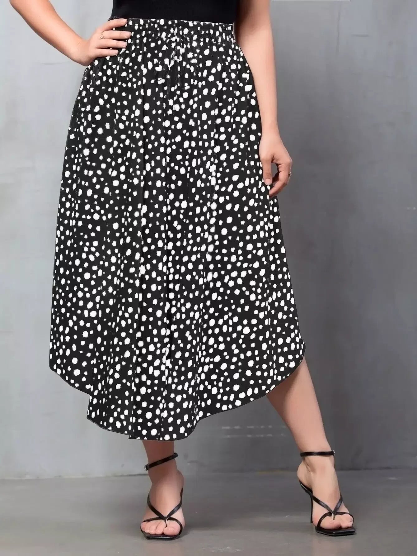 تنورة بحاشية منحنية بطبعة مرقش زائد