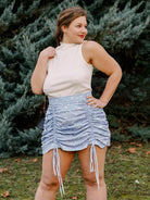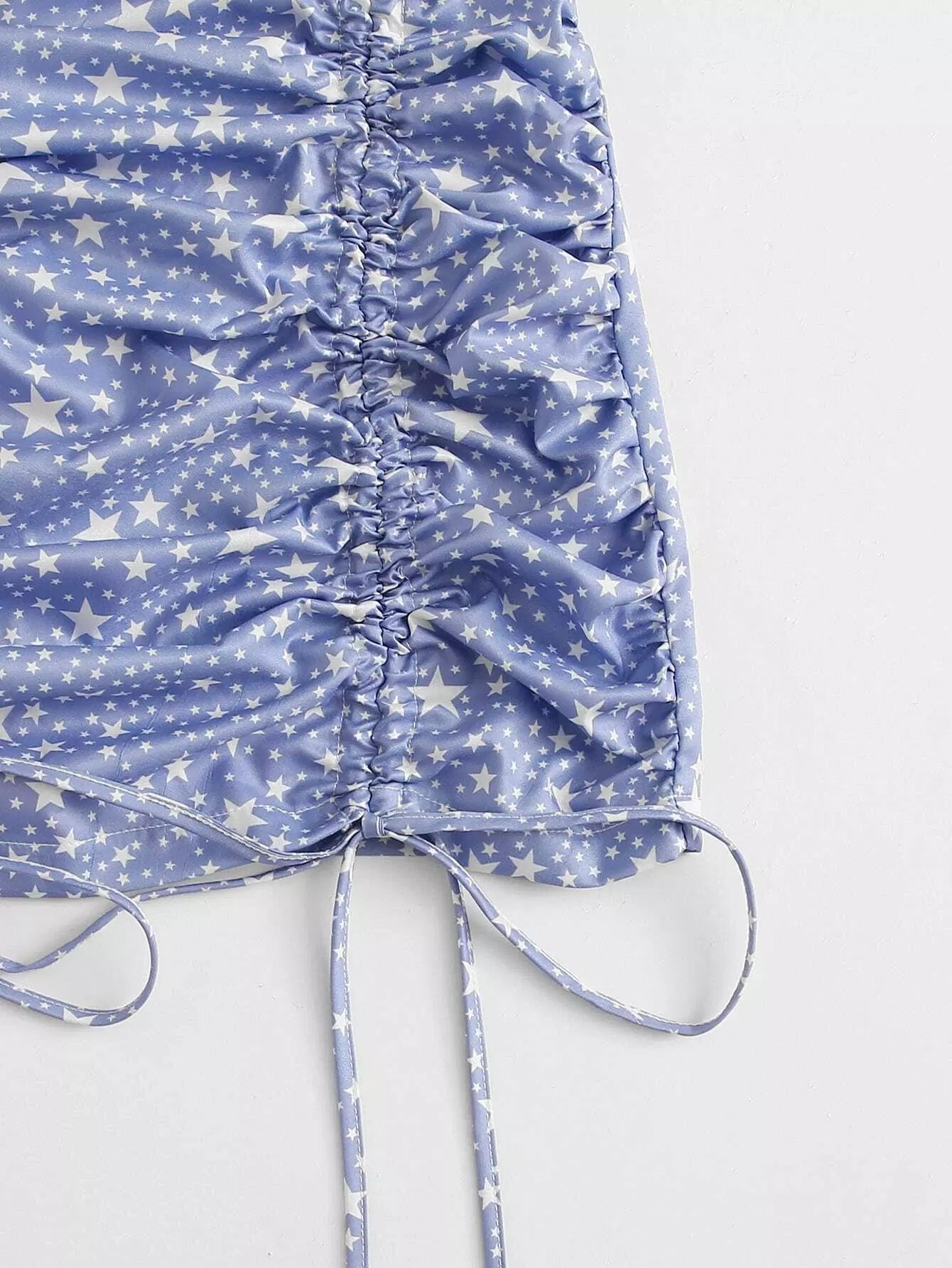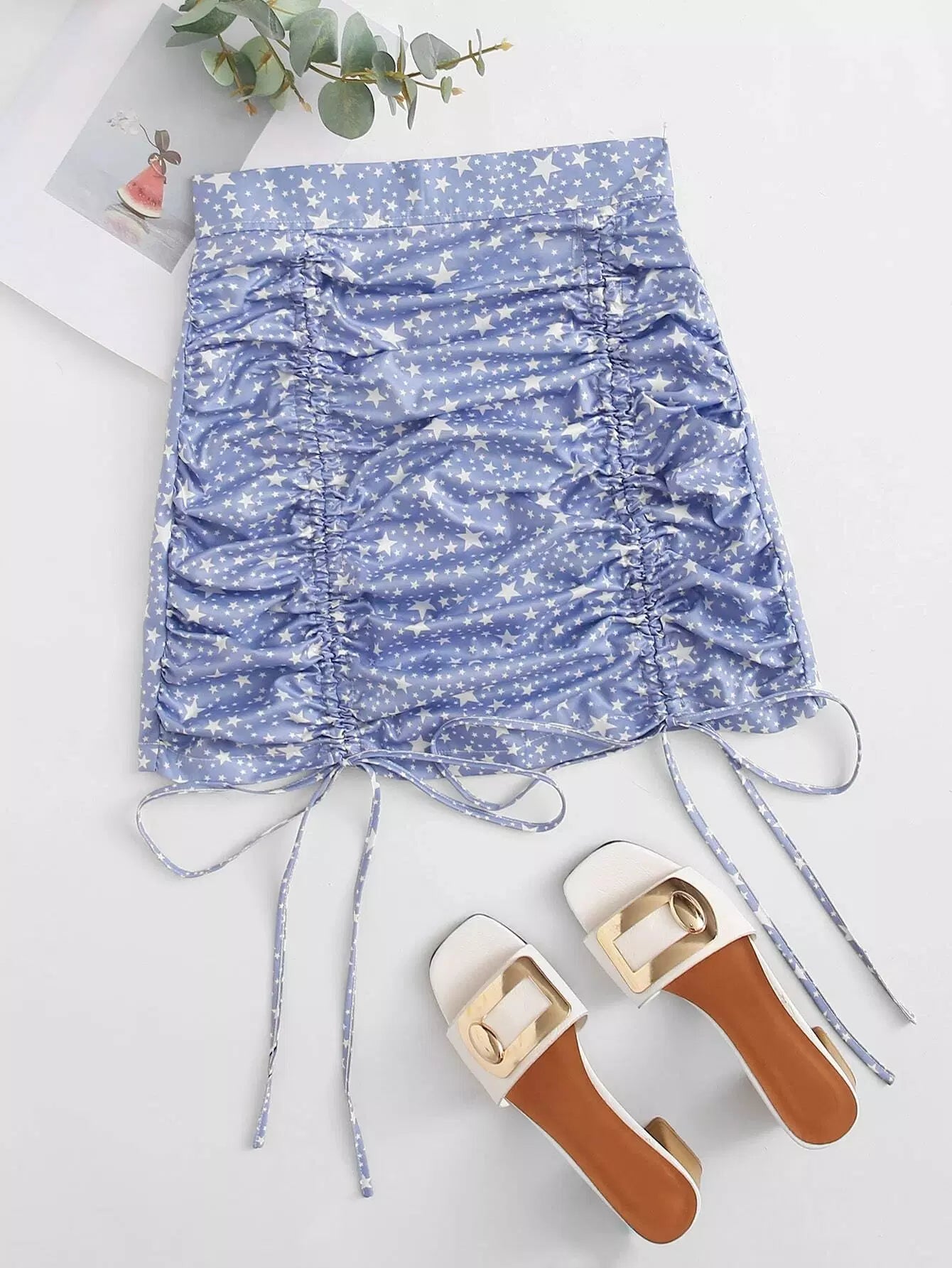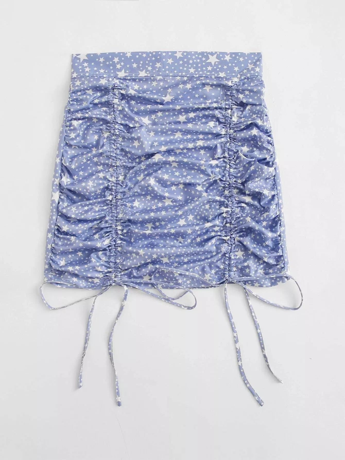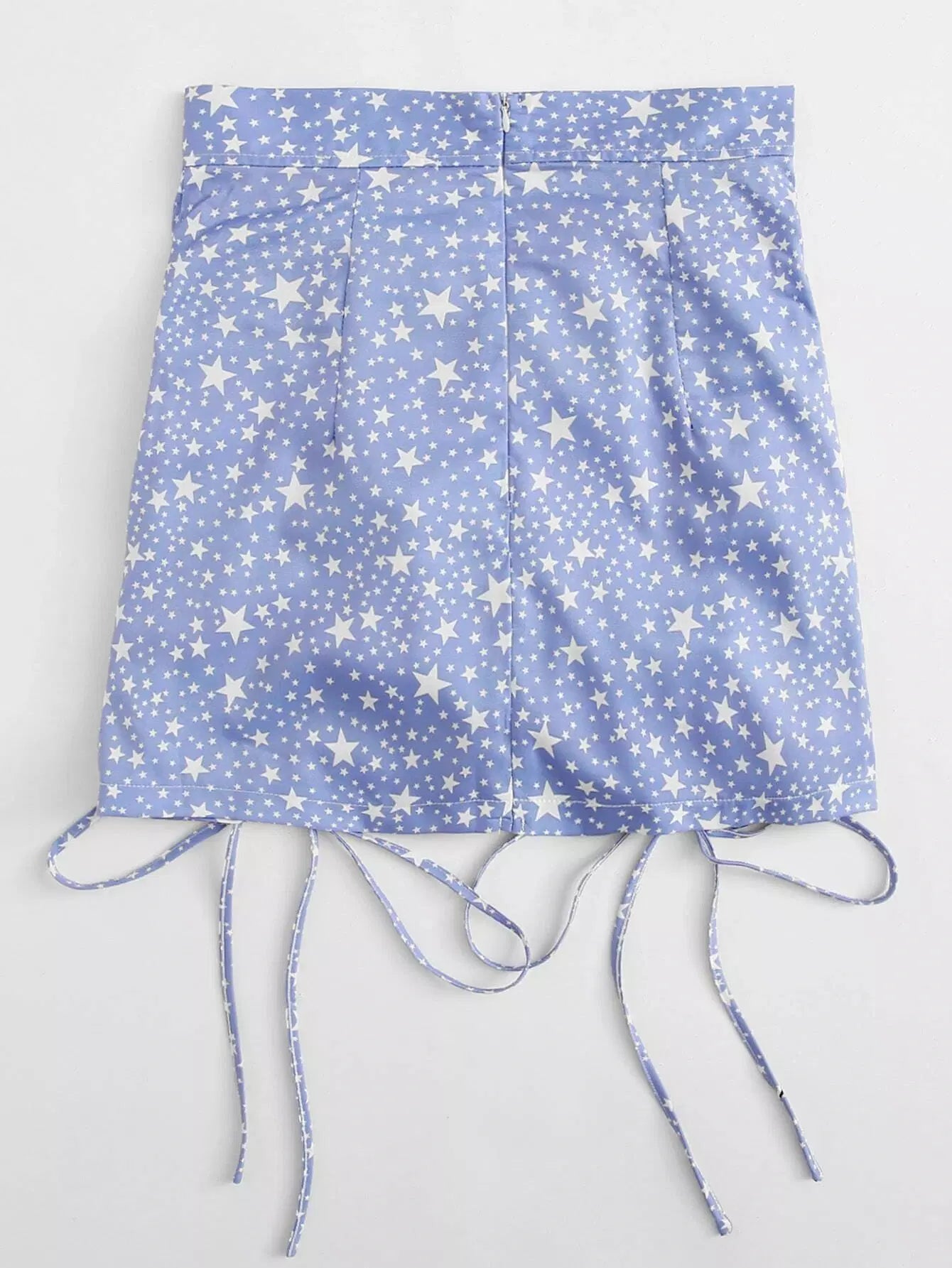 نحيف - مقاس كبير تنورة بطبعة نجوم وعقدة برباط