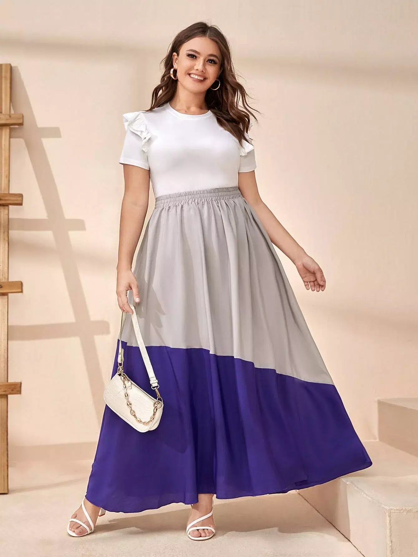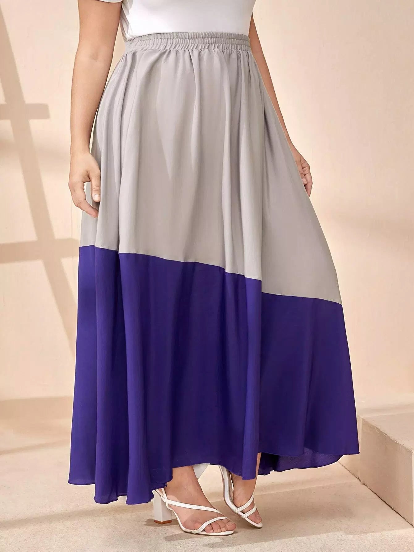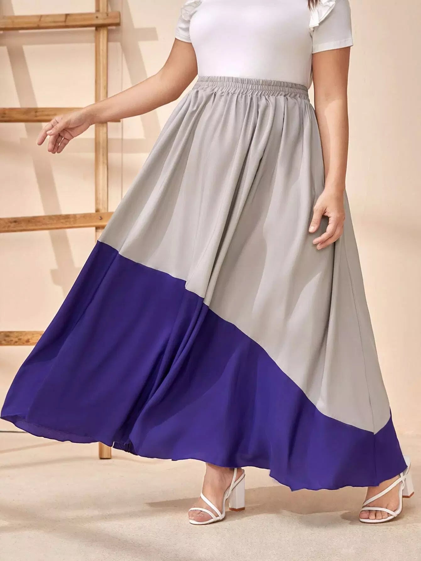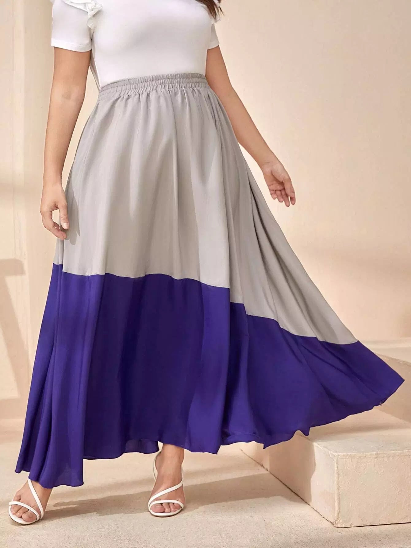 تنورة واسعة ذات خصر مطاطي مطاطي بلونين زائد