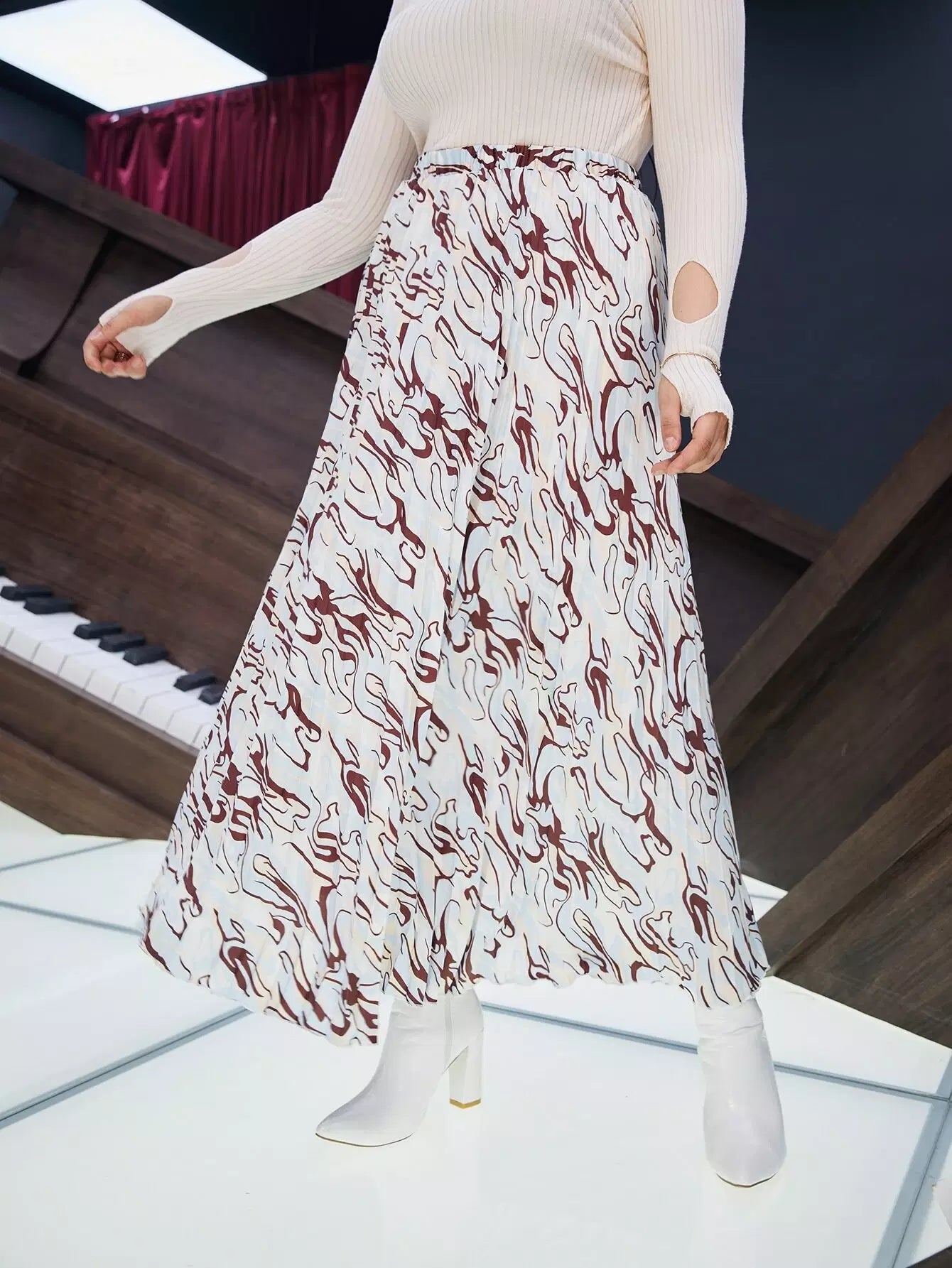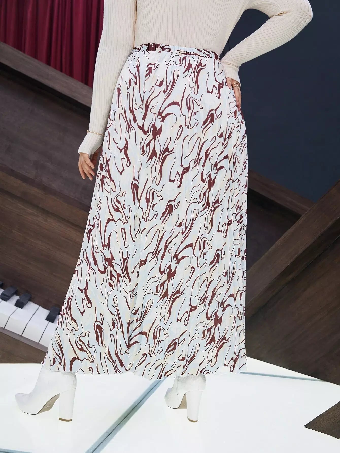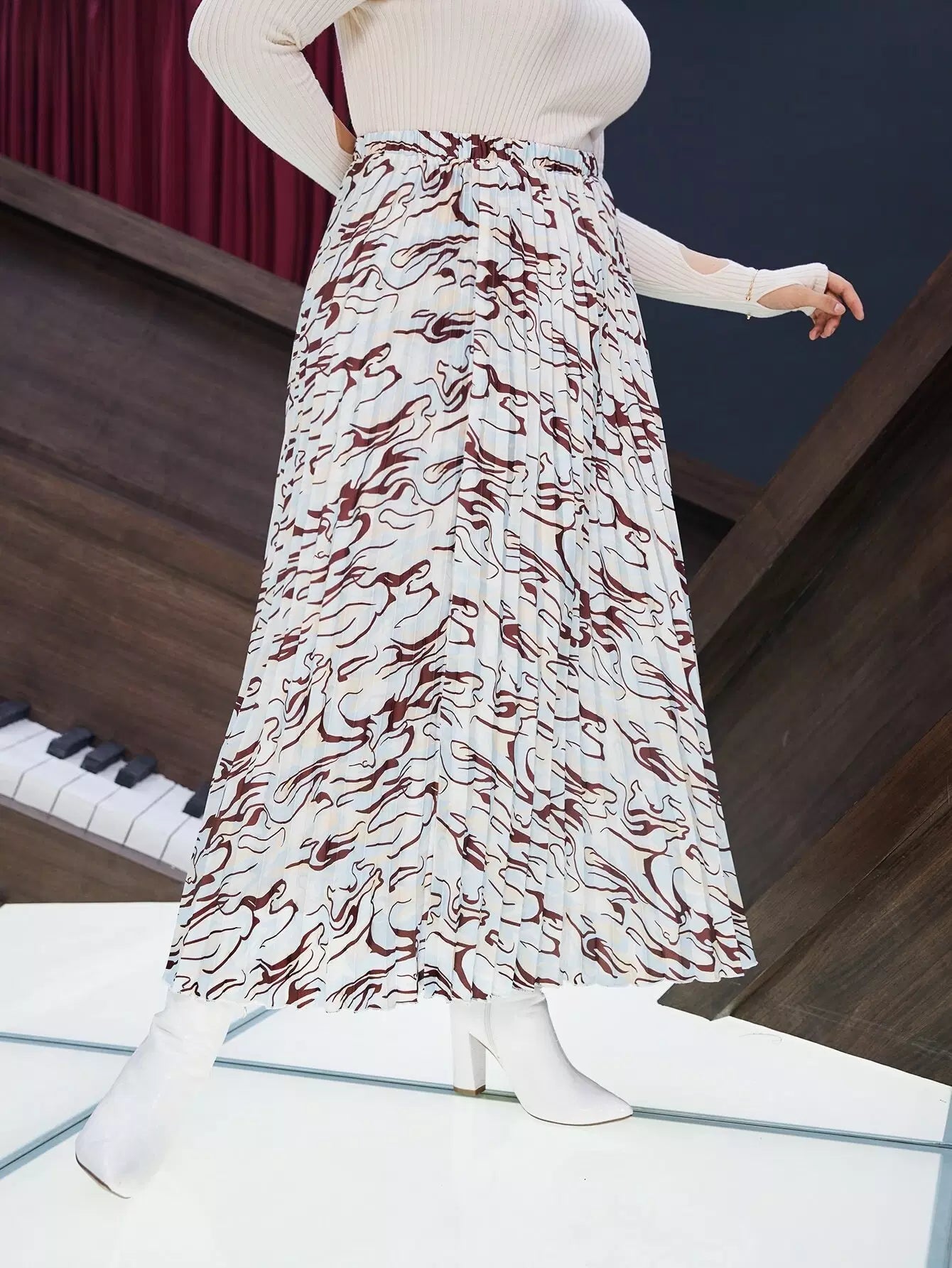 تنورة مطوية بطبعات عالية الخصر عالية الخصر بالكامل