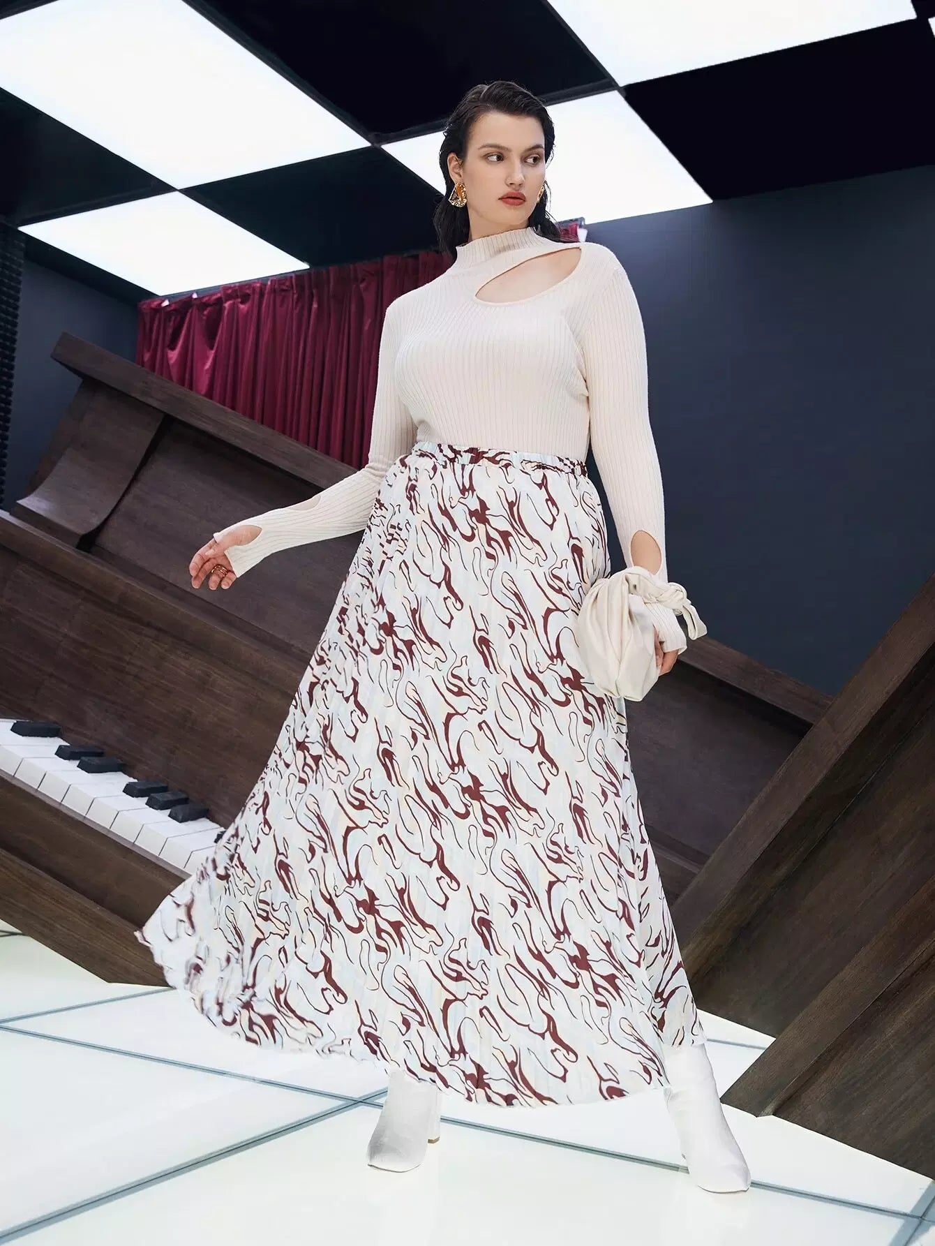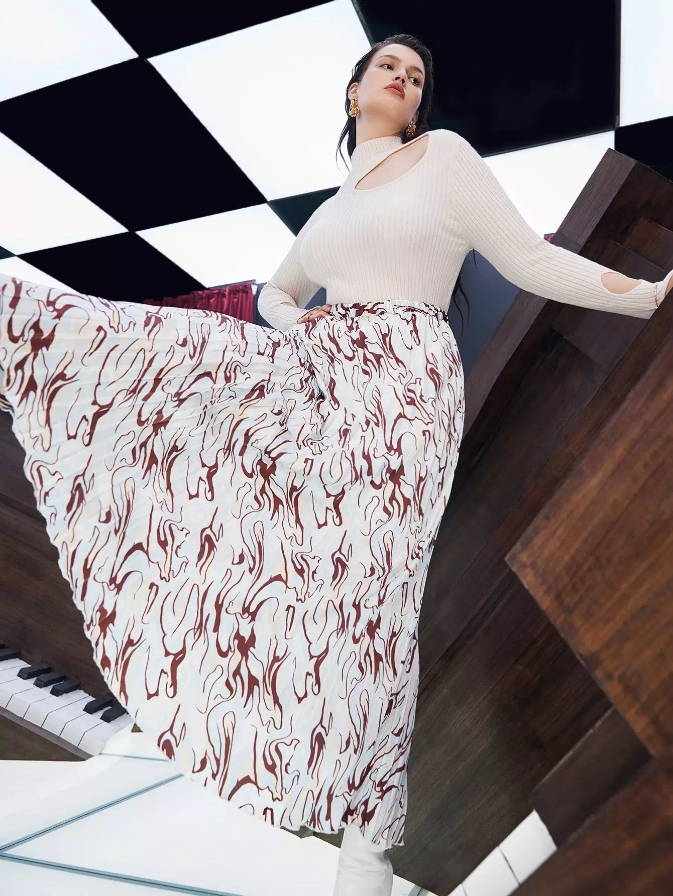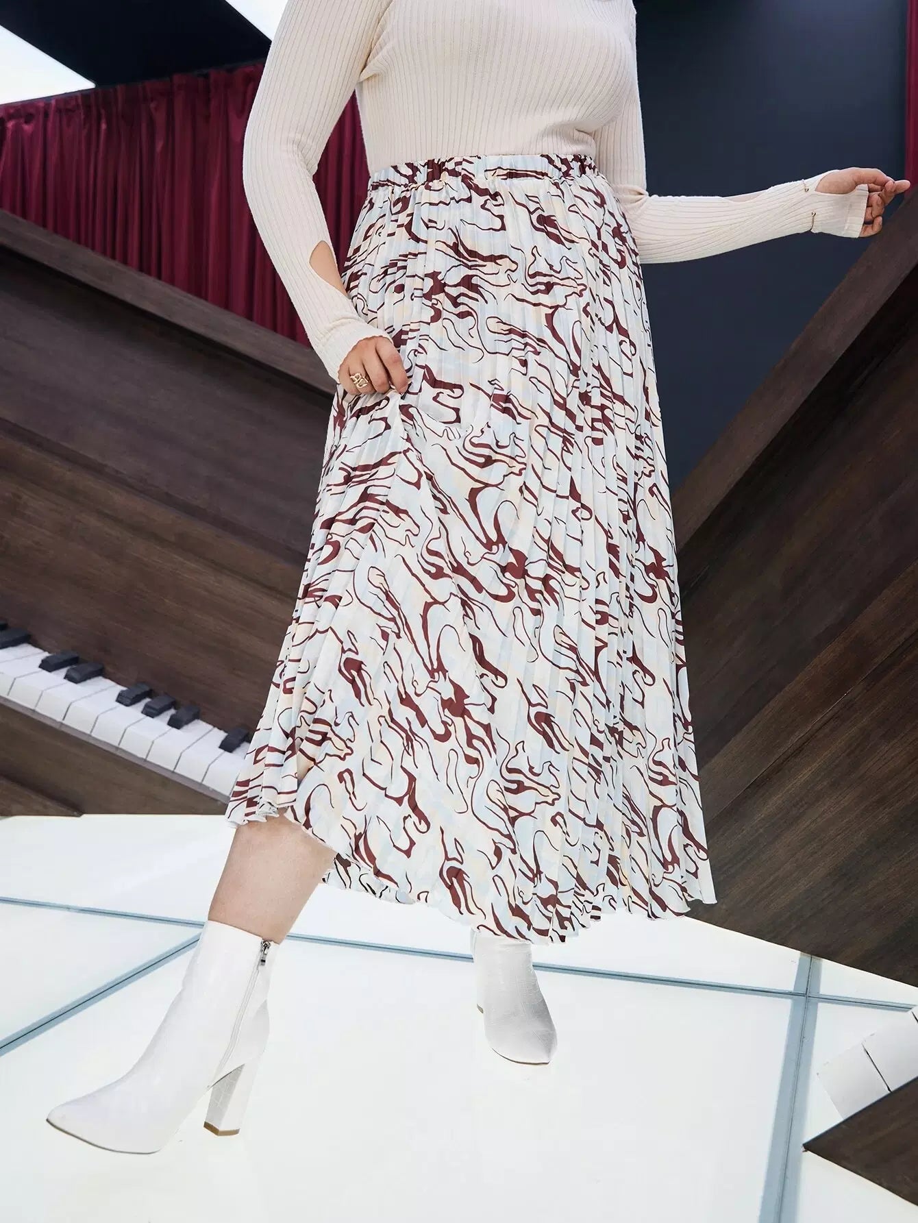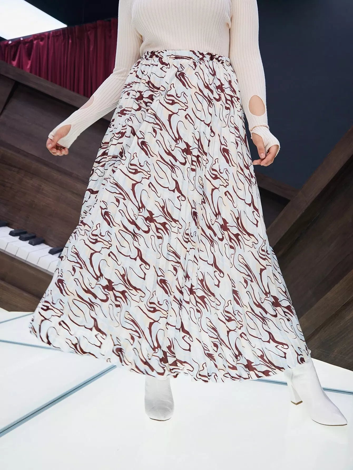 تنورة مطوية بطبعات عالية الخصر عالية الخصر بالكامل