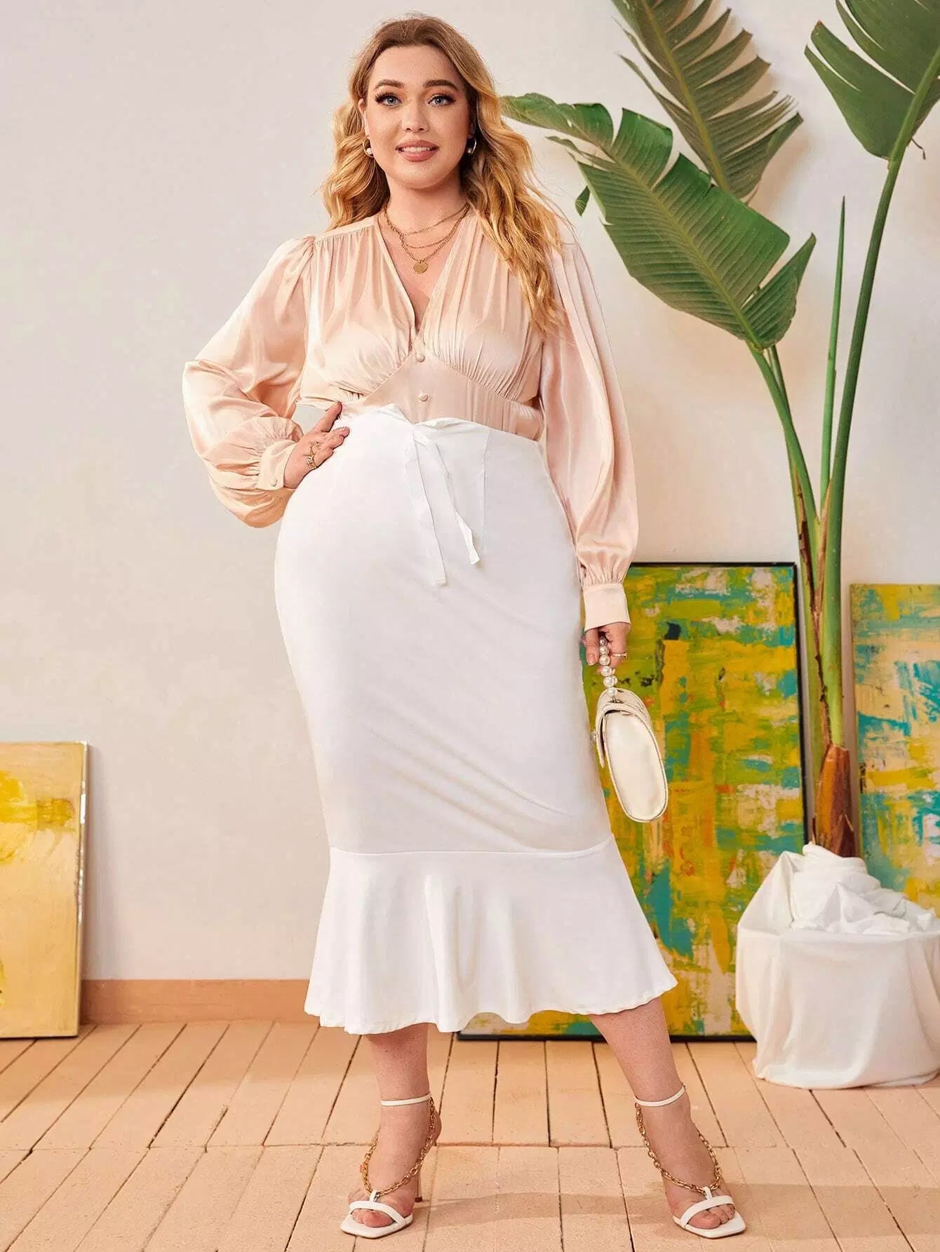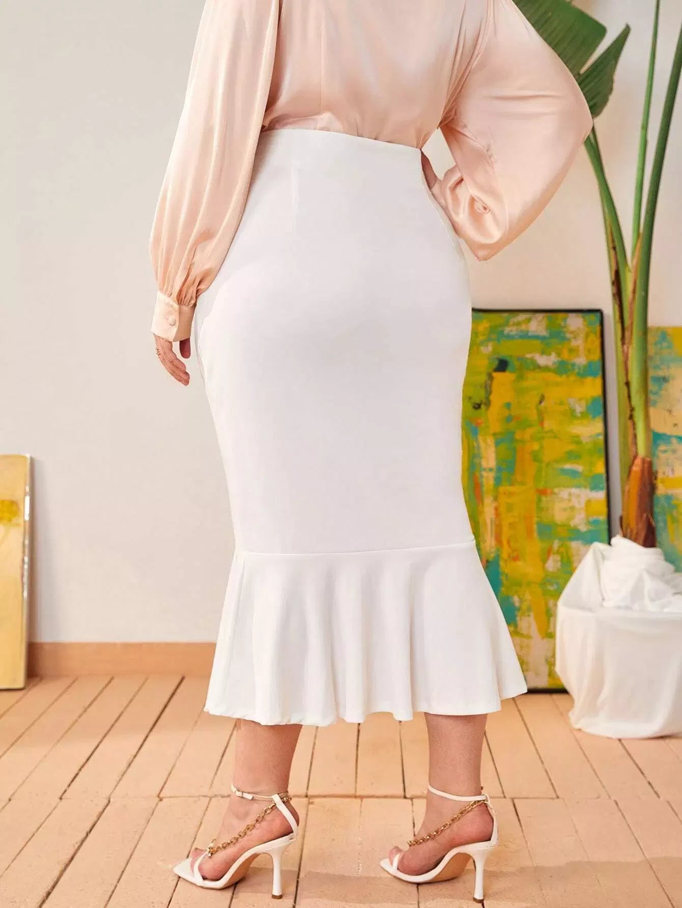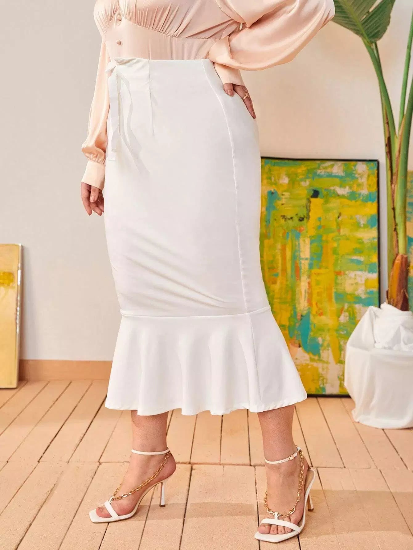 تنورة بحافة حورية البحر ذات عقدة أمامية عالية الخصر زائد