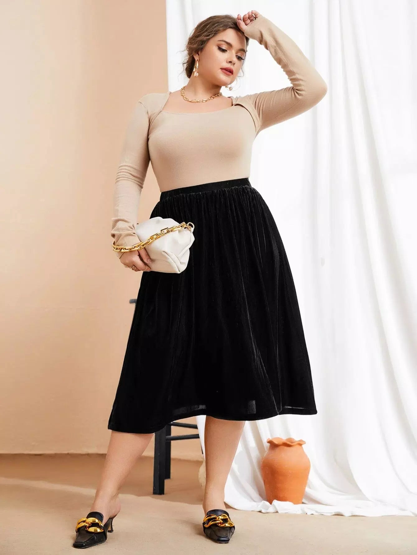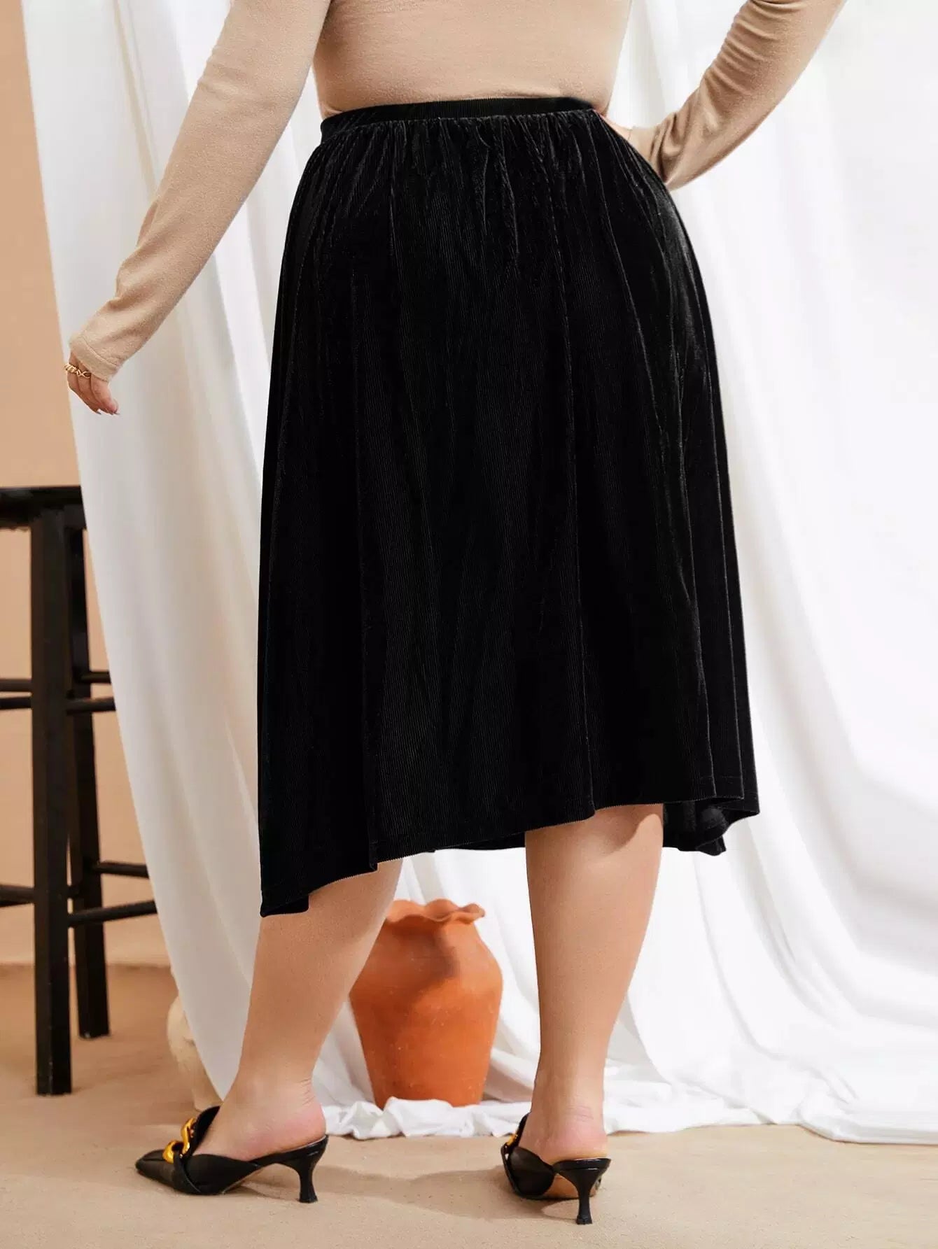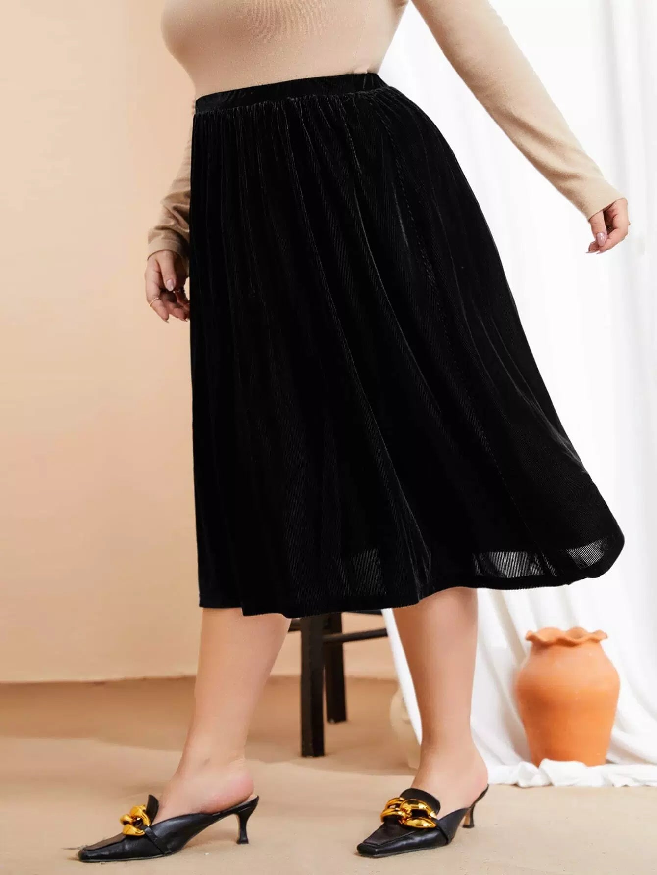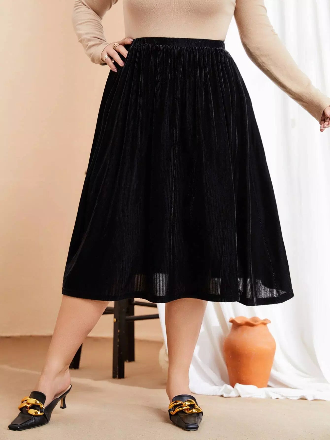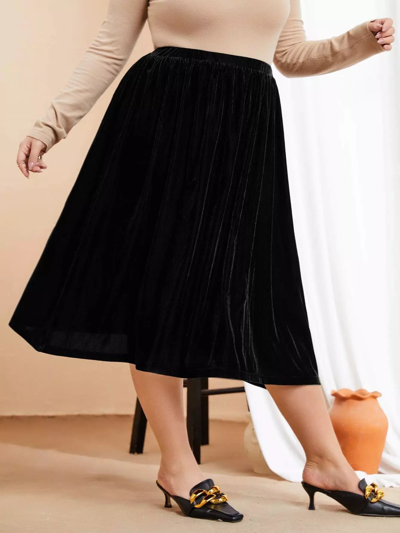 نحيف - مقاس كبير تنورة مخملية عالية الخصر
