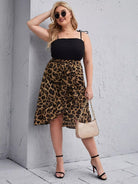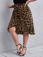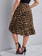 نحيف - مقاس كبير ليوبارد طباعة كشكش التفاف تنحنح مربوط تنورة