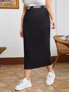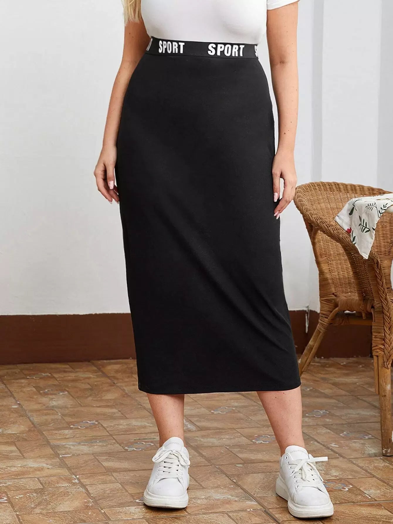 تنورة ذات خصر مستقيم بحرف "بلس" وشريط لاصق على الخصر