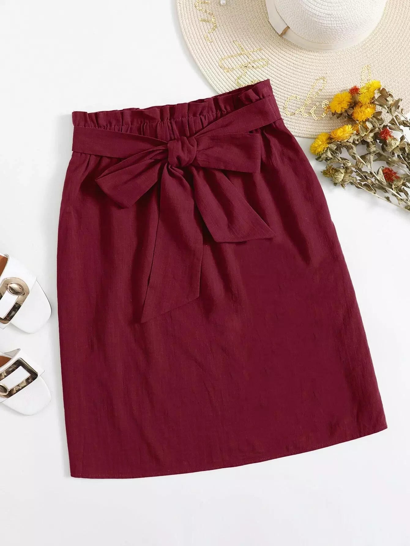 تنورة مستقيمة بخصر ورقي زائد