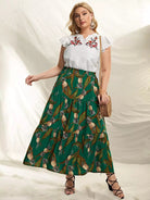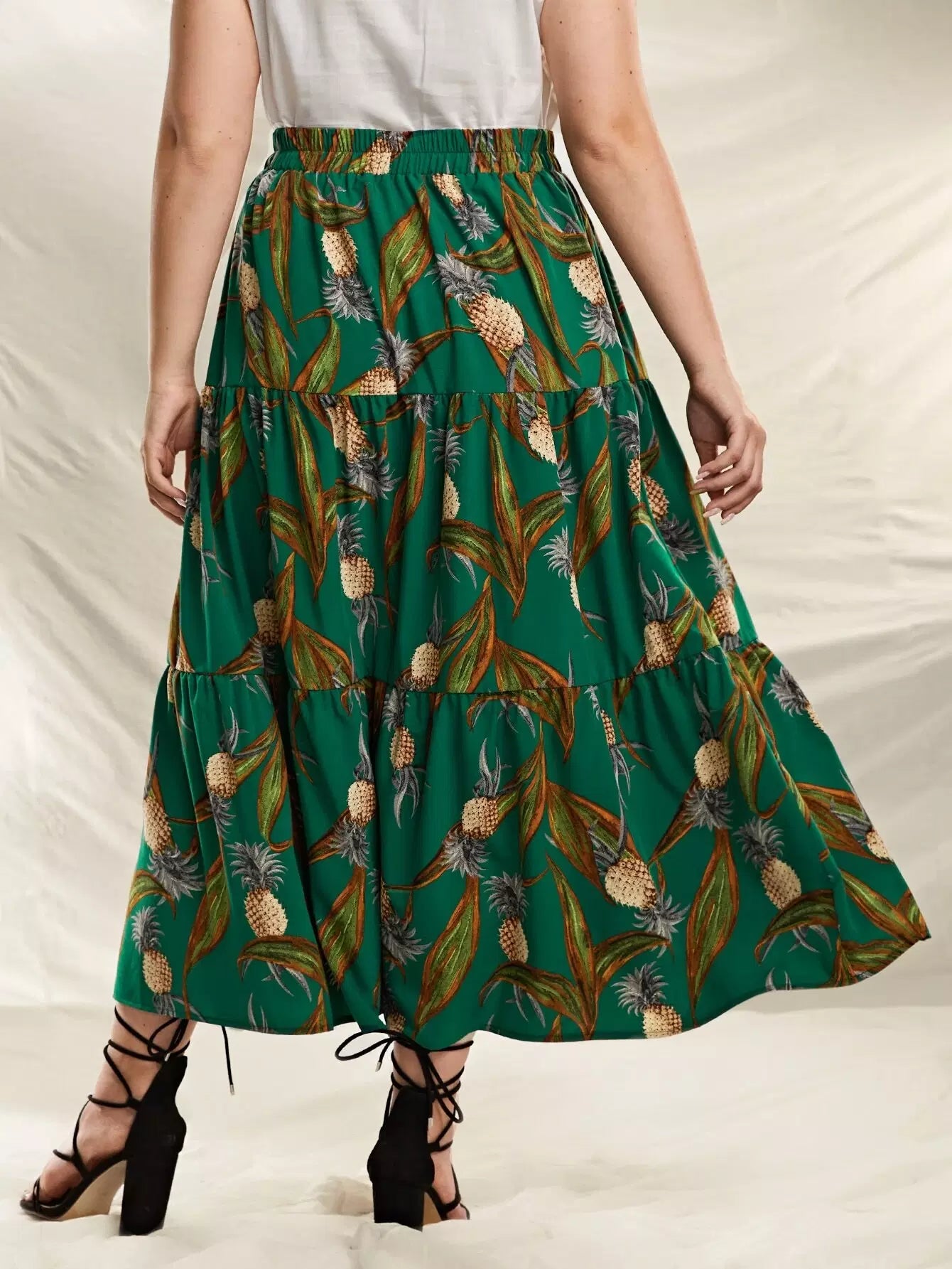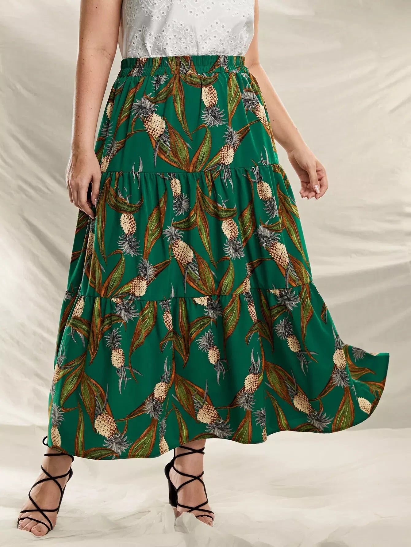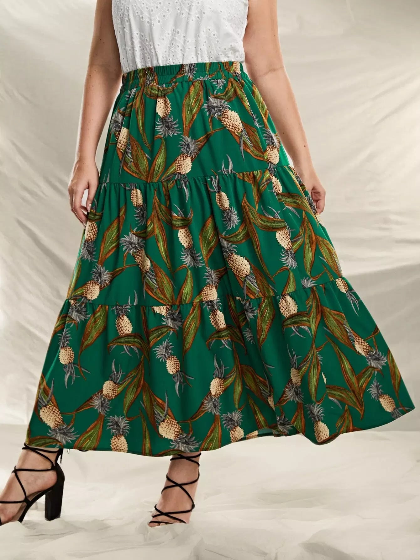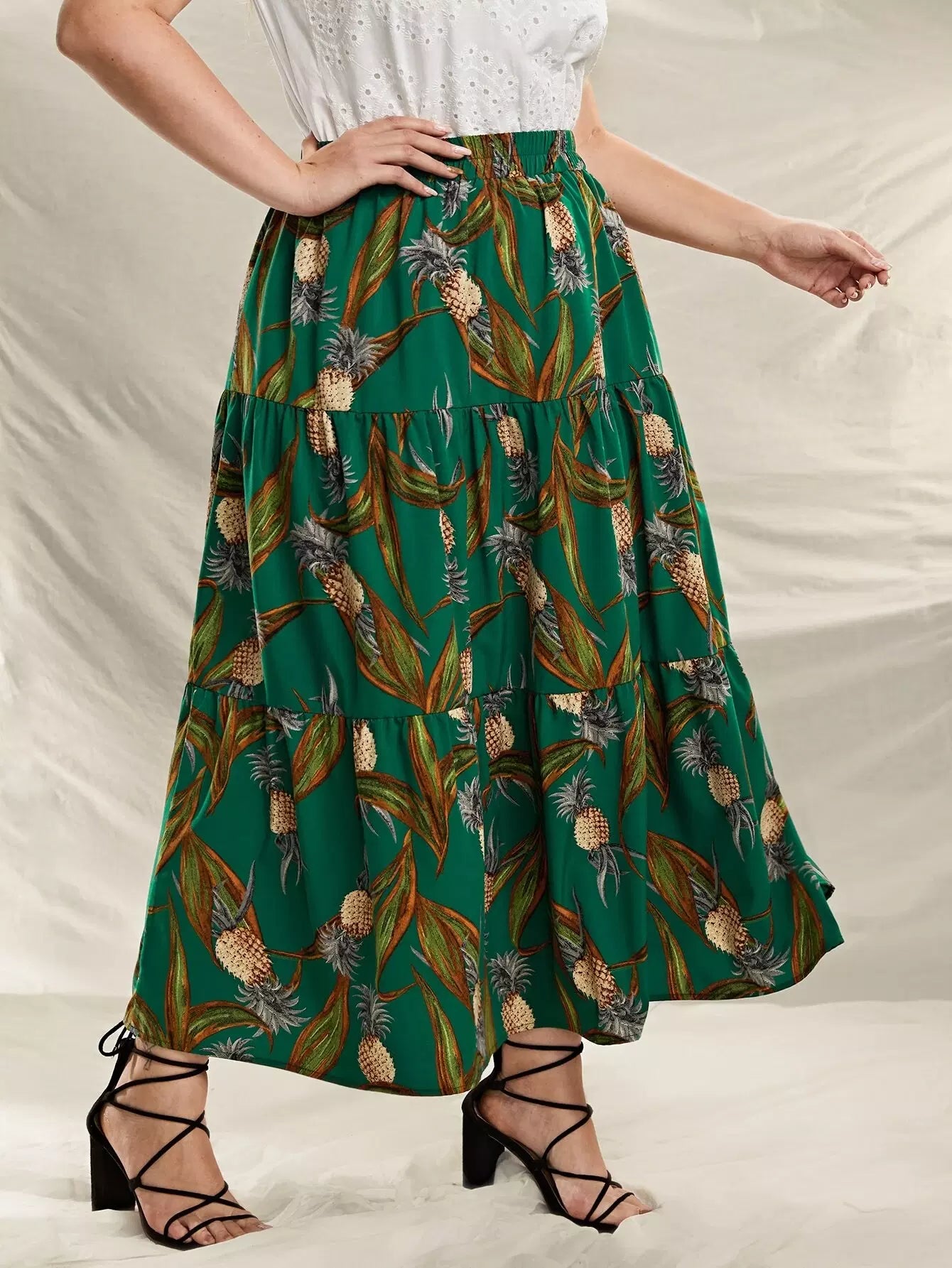 تنورة مكشكشة بطبعة أناناس زائد بحافة كشكش