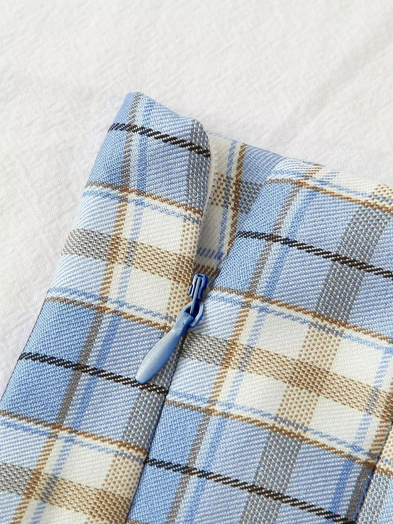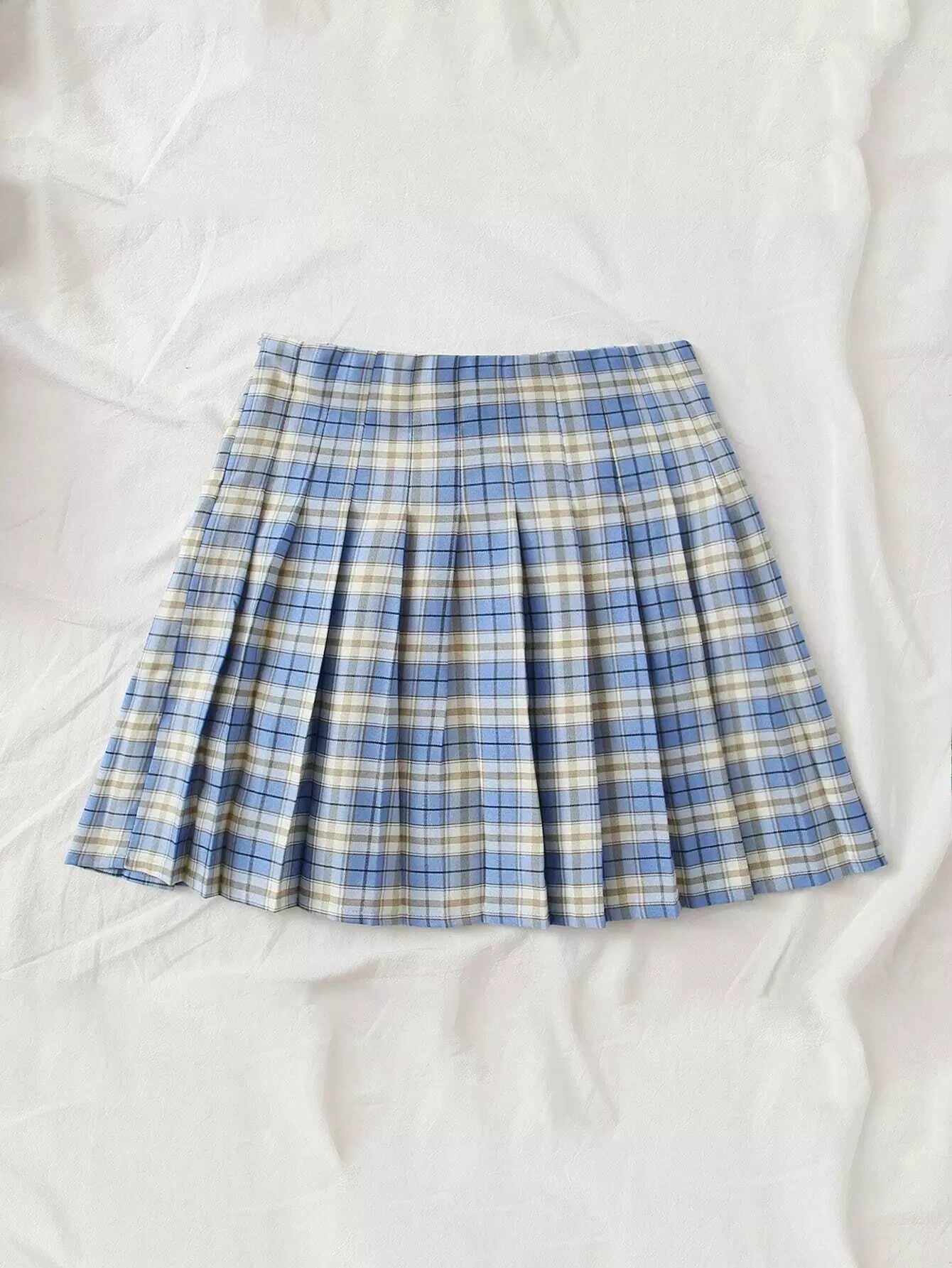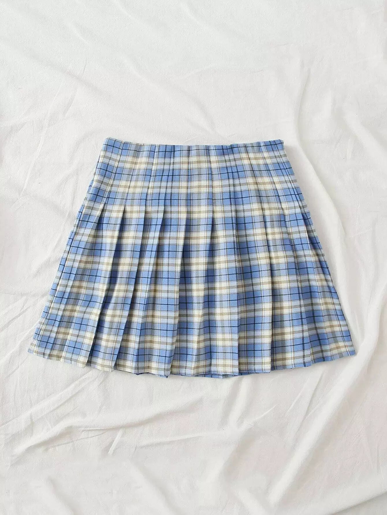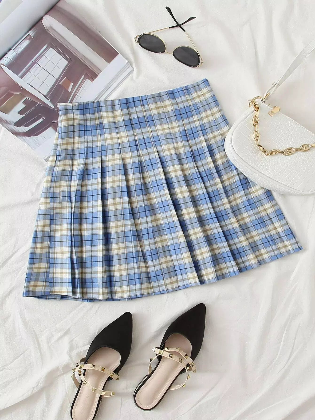 تنورة قصيرة منقوشة منقوشة عالية الخصر ذات ثنيات