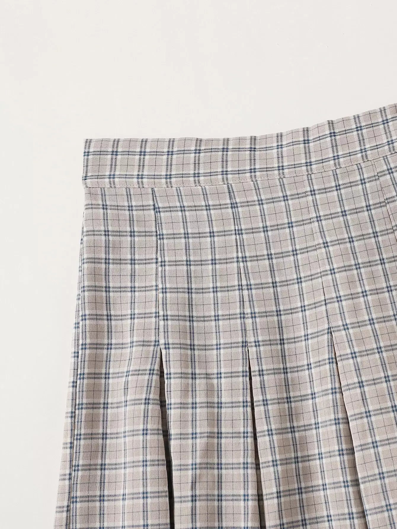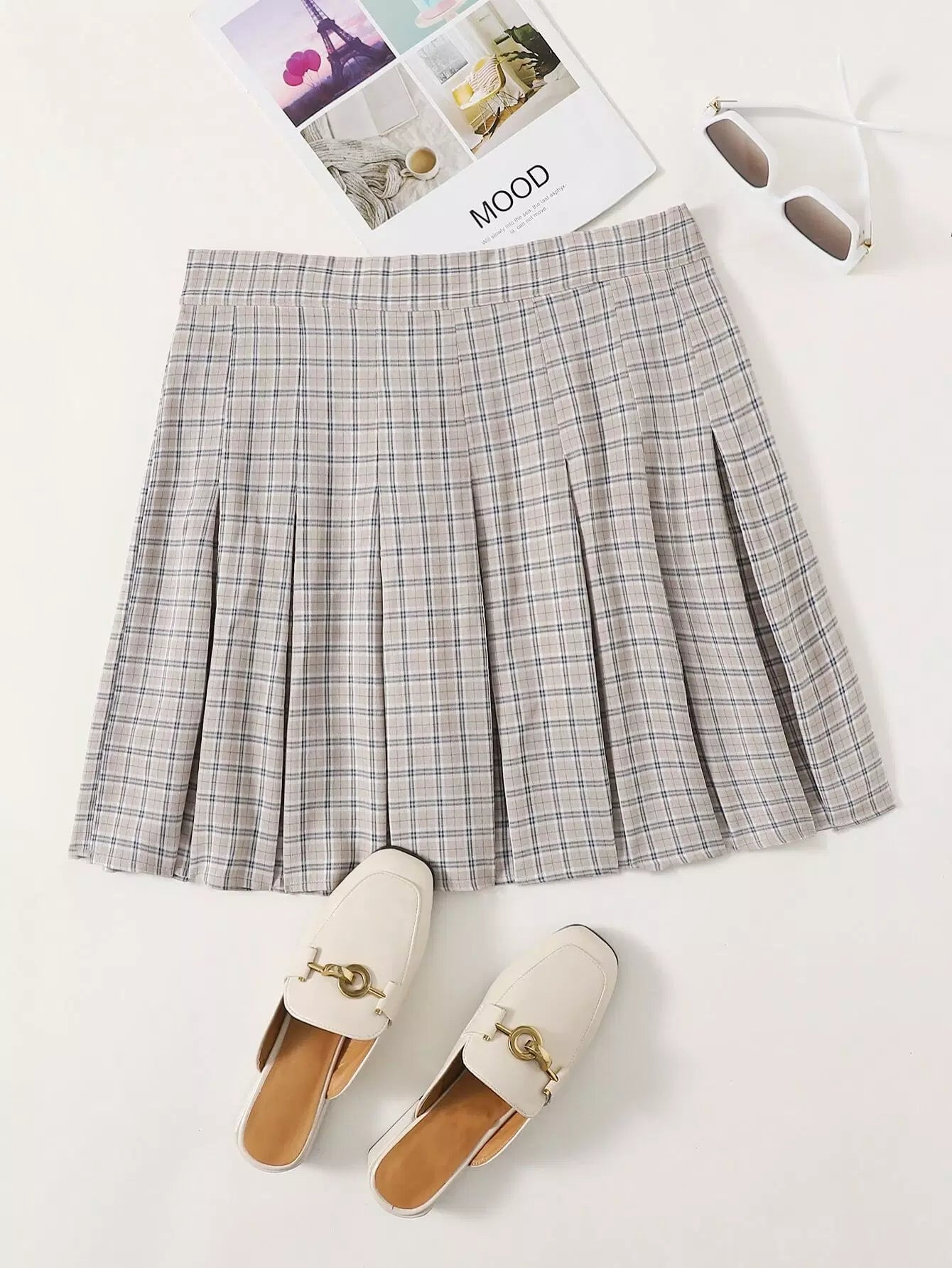 تنورة قصيرة منقوشة منقوشة بطيات زائد