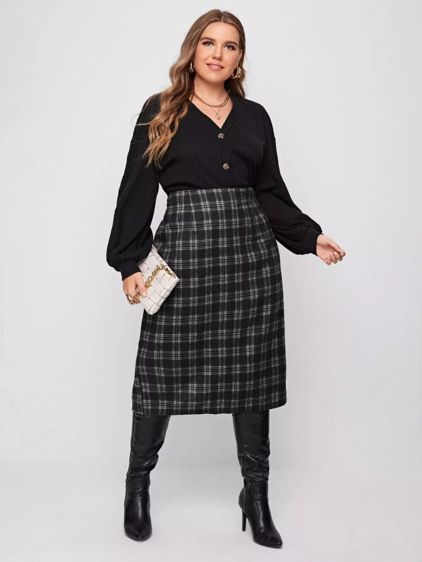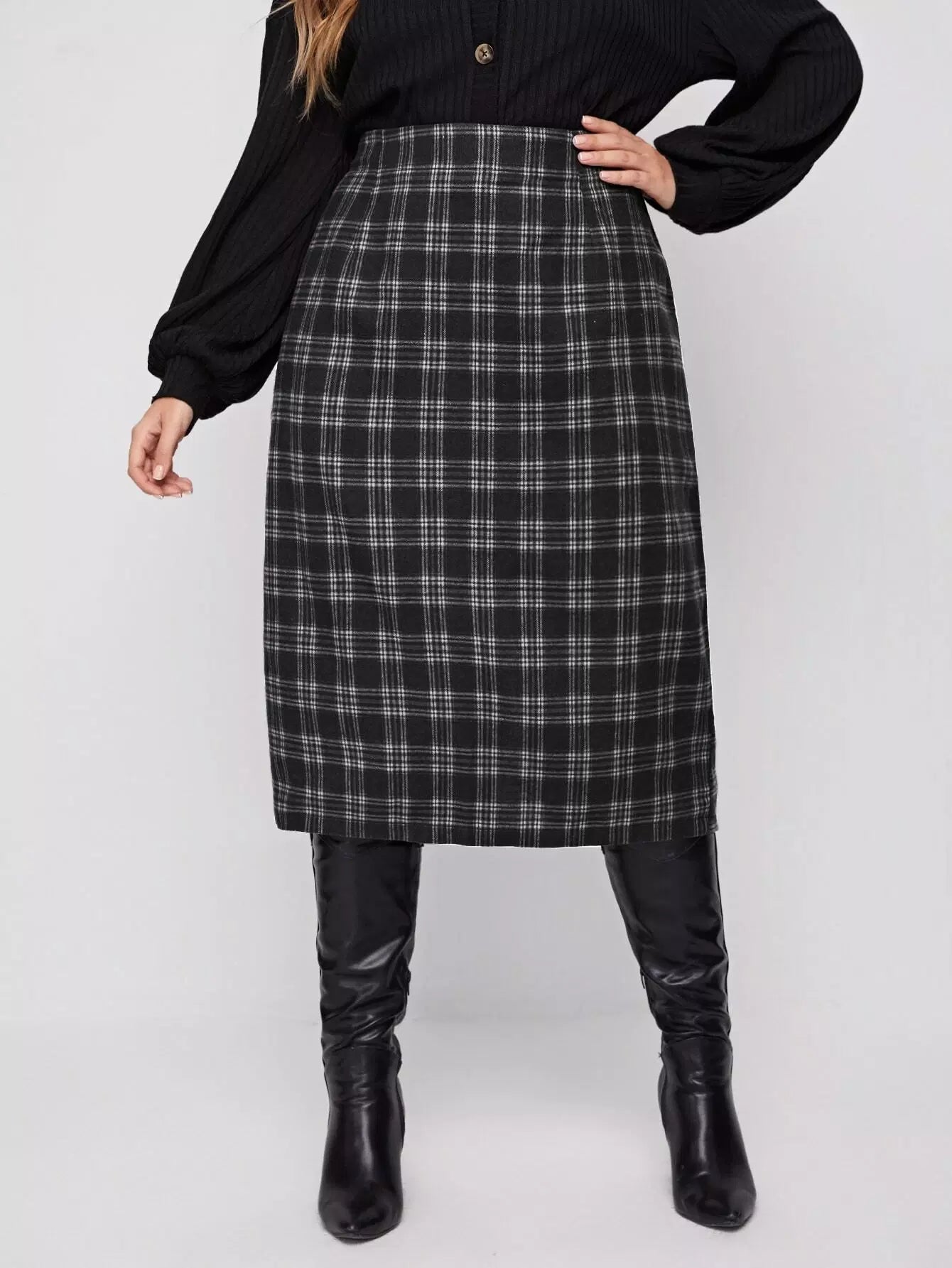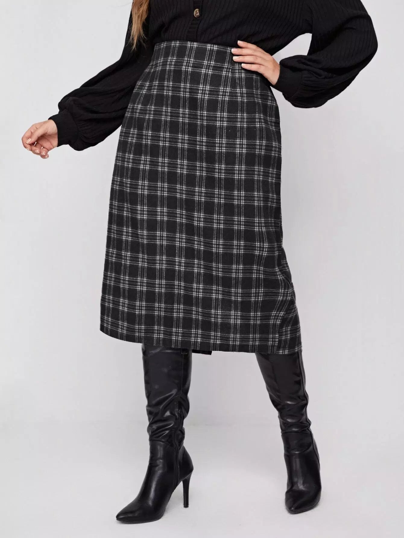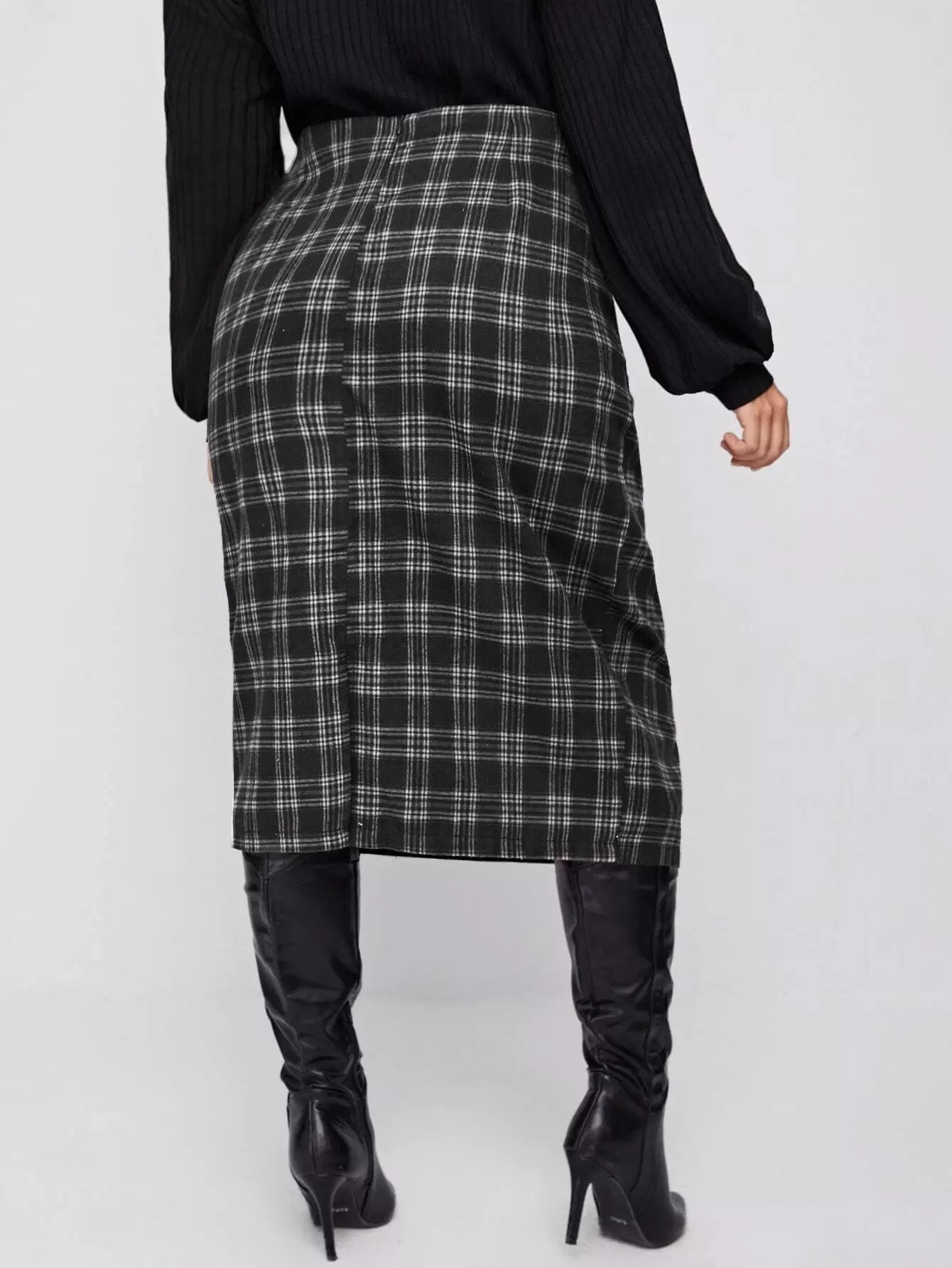 نحيف - مقاس كبير منقوشة الرمز البريدي العودة تنورة مستقيمة