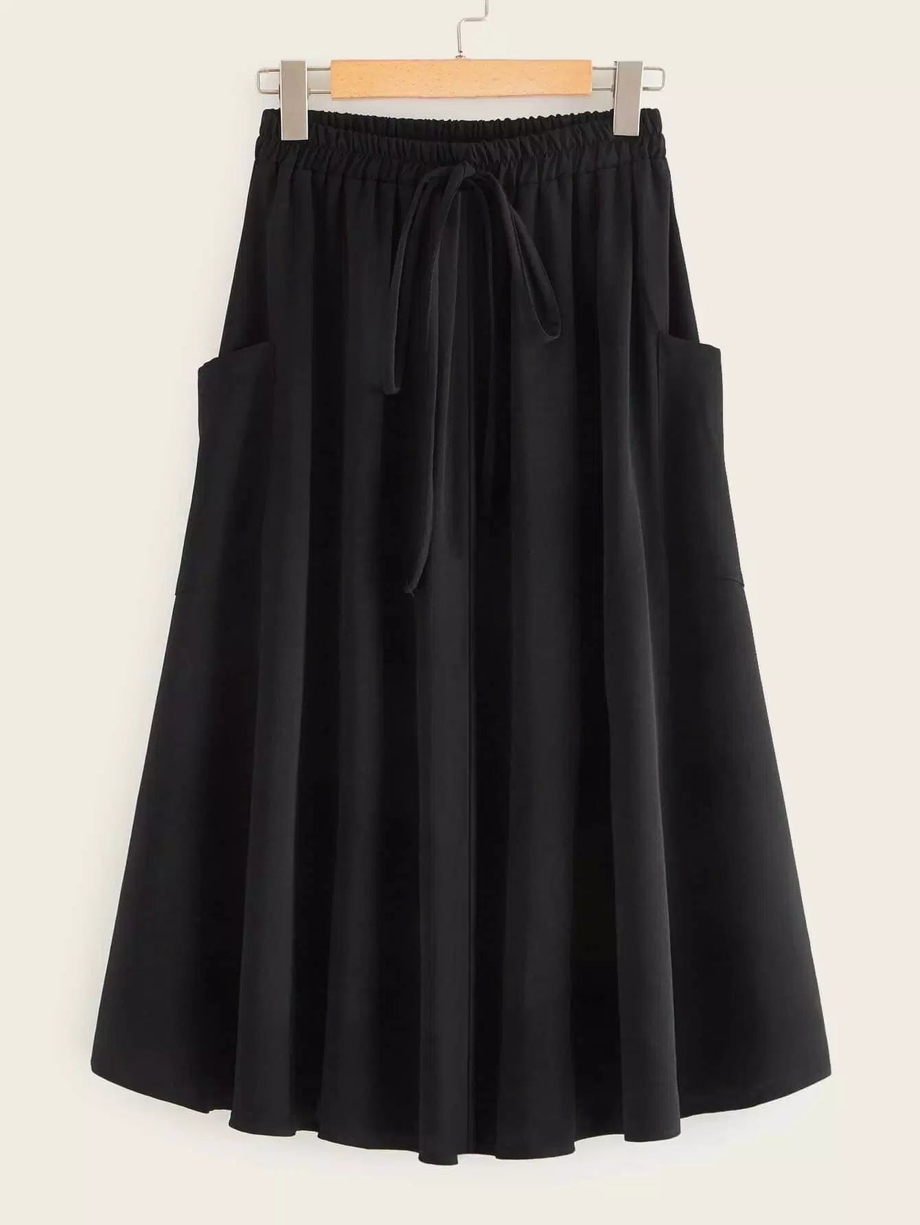 تنورة مزينة بأربطة جانبية ذات جيوب كبيرة