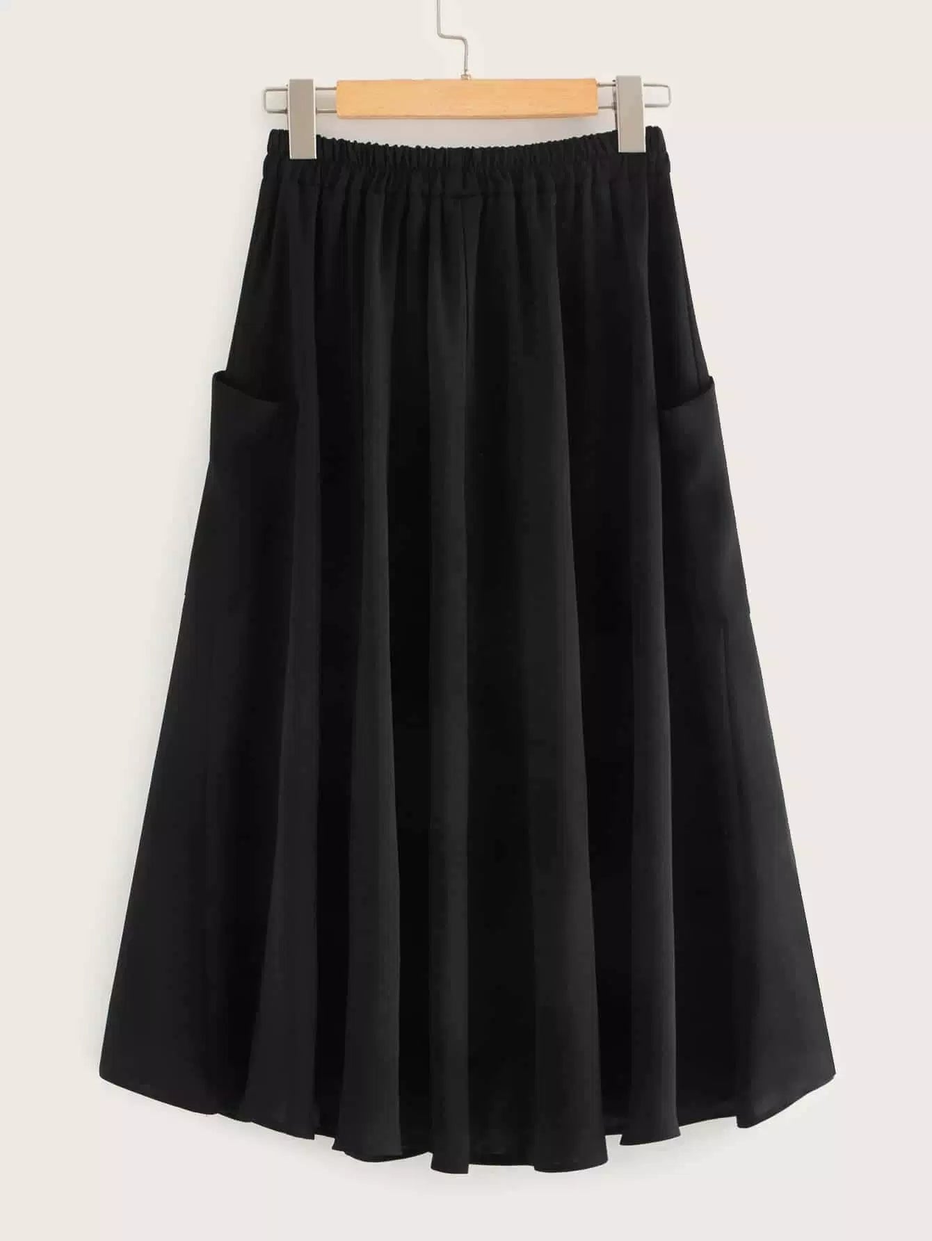 نحيف - مقاس كبير جيب الجانب الرباط التفاصيل تنورة