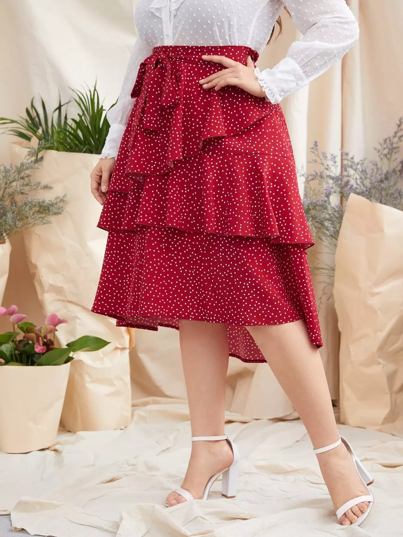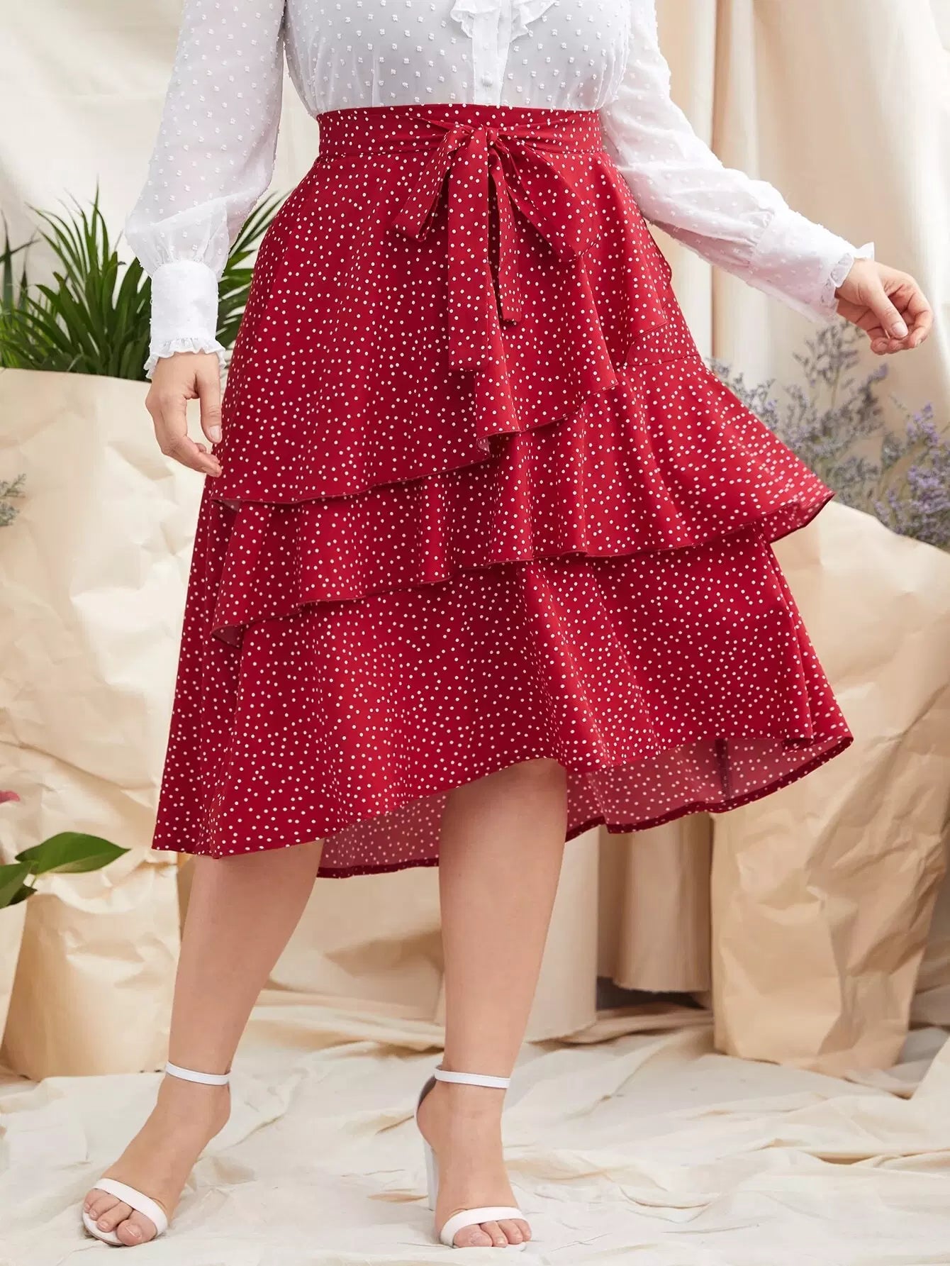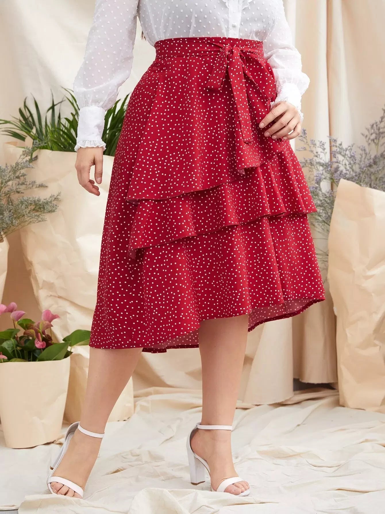 بالإضافة إلى تنورة بولكا دوت ذات طبقات بدون حزام