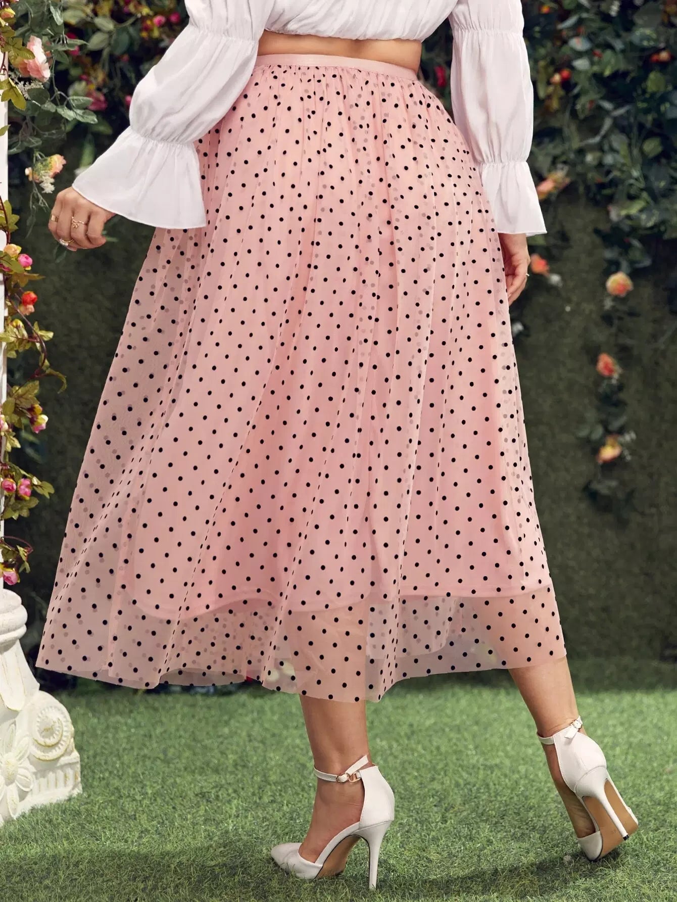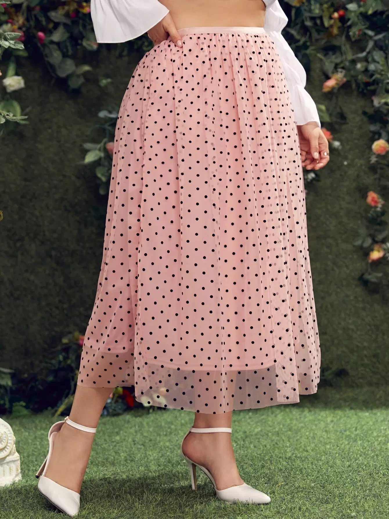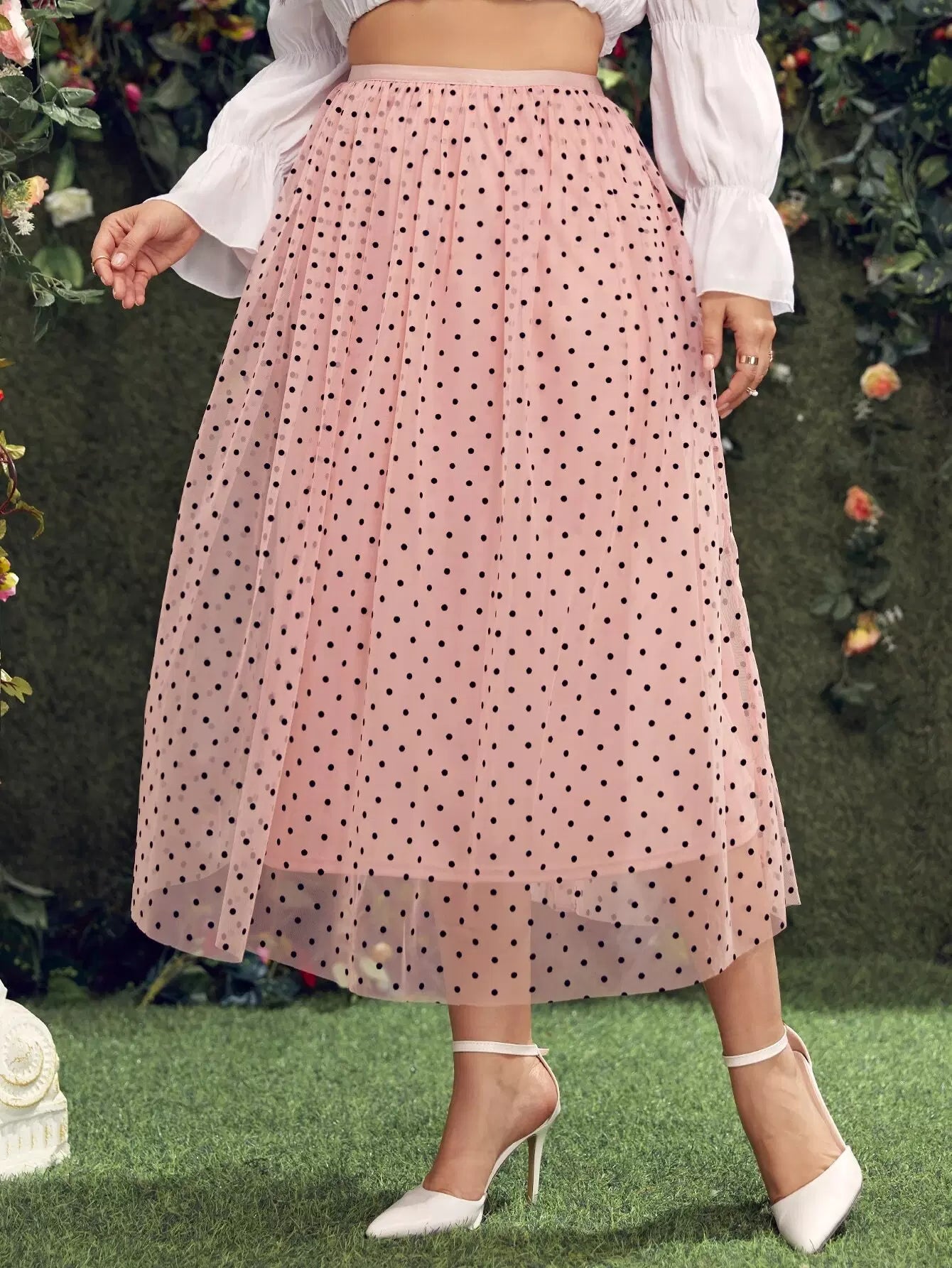 نحيف - مقاس كبير تنورة بطبقة شبكية منقطة