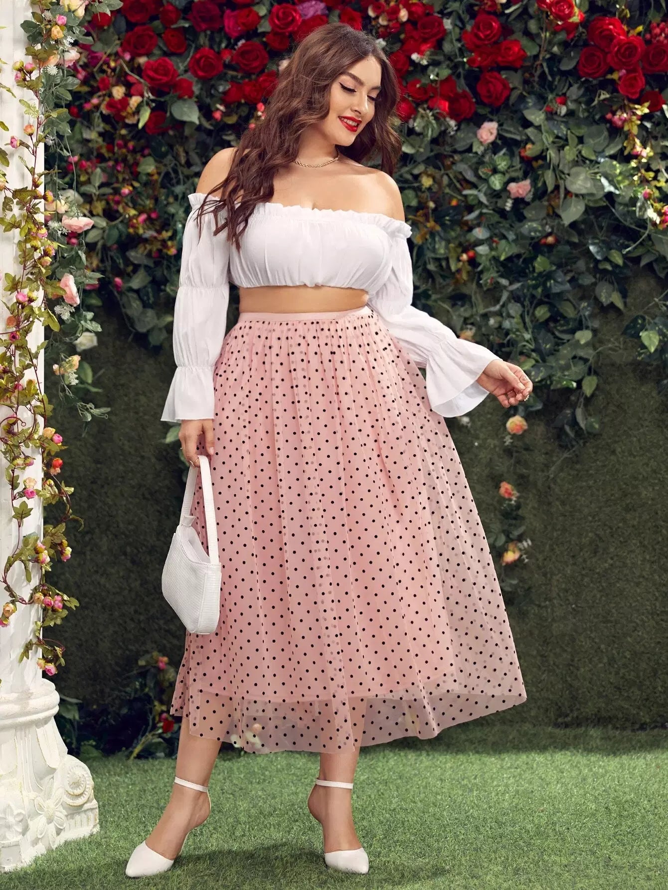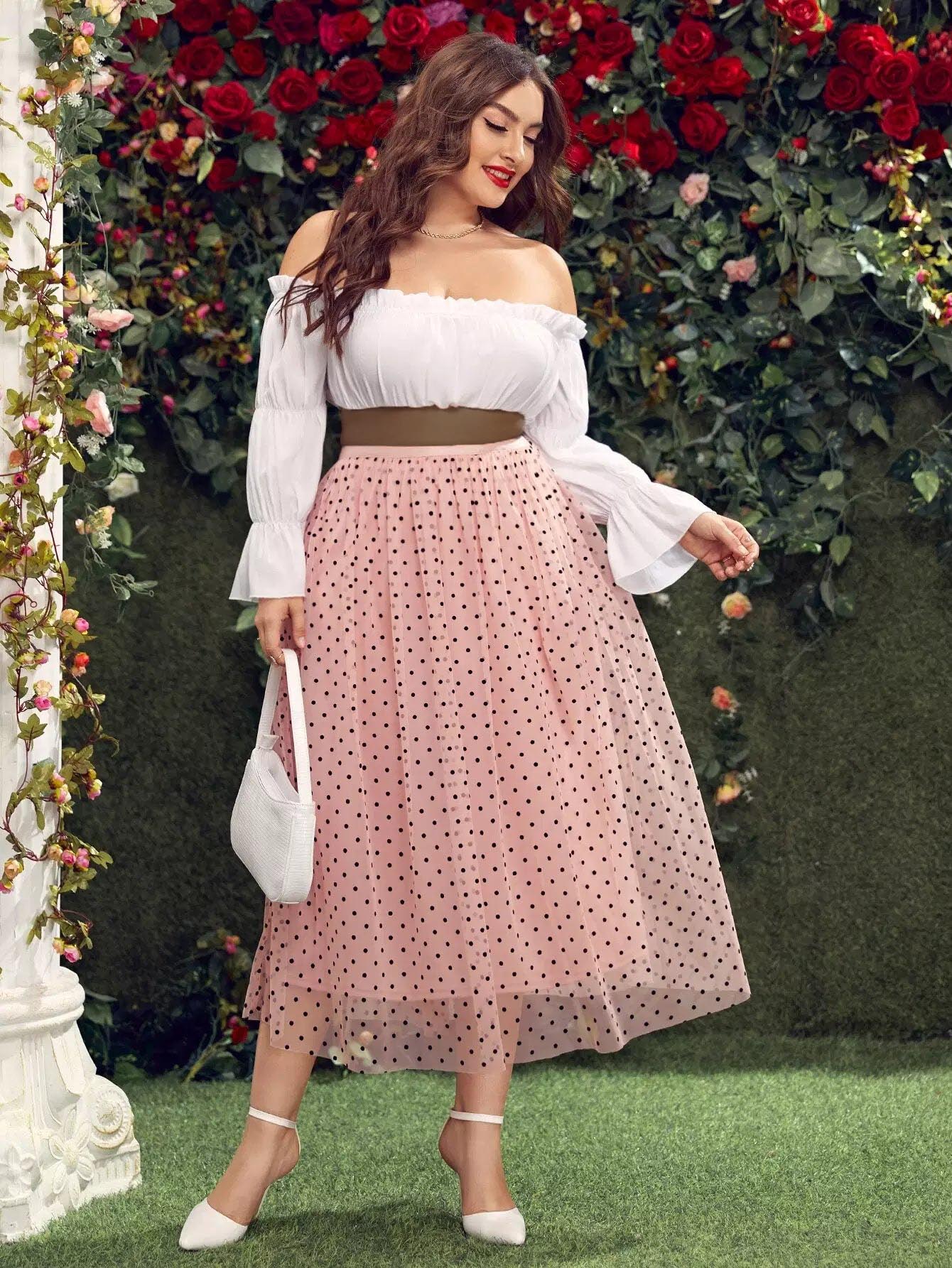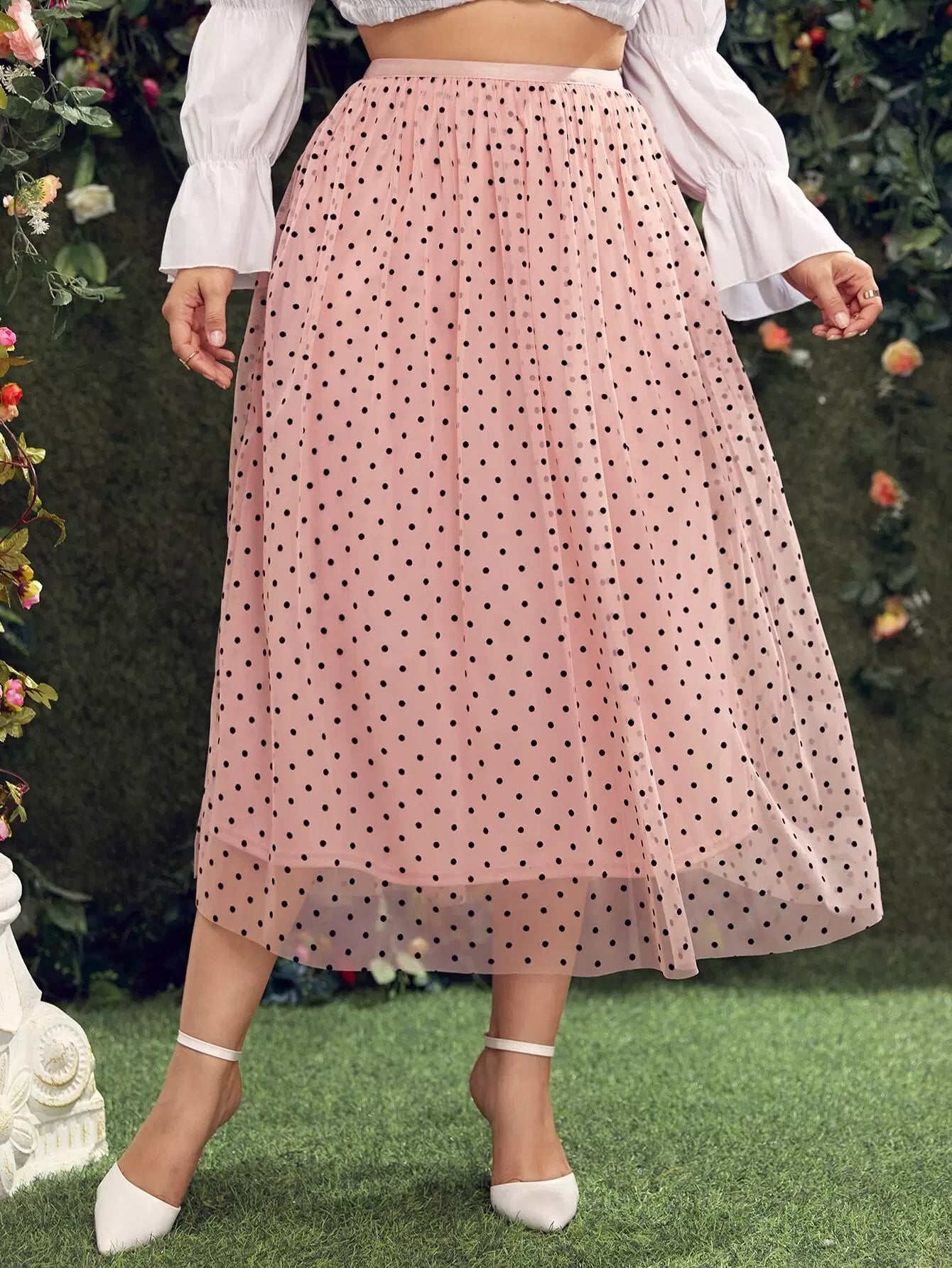 نحيف - مقاس كبير تنورة بطبقة شبكية منقطة