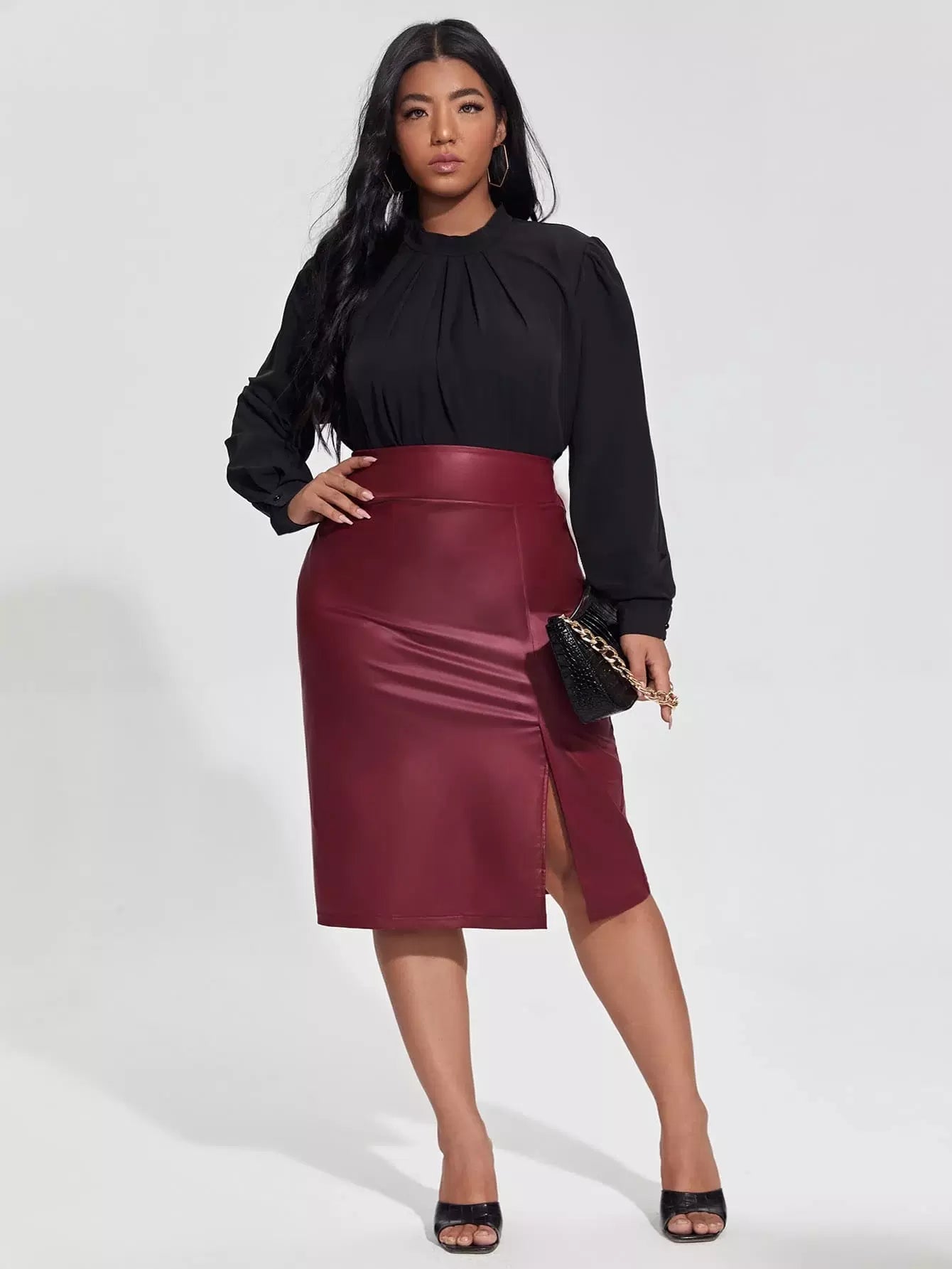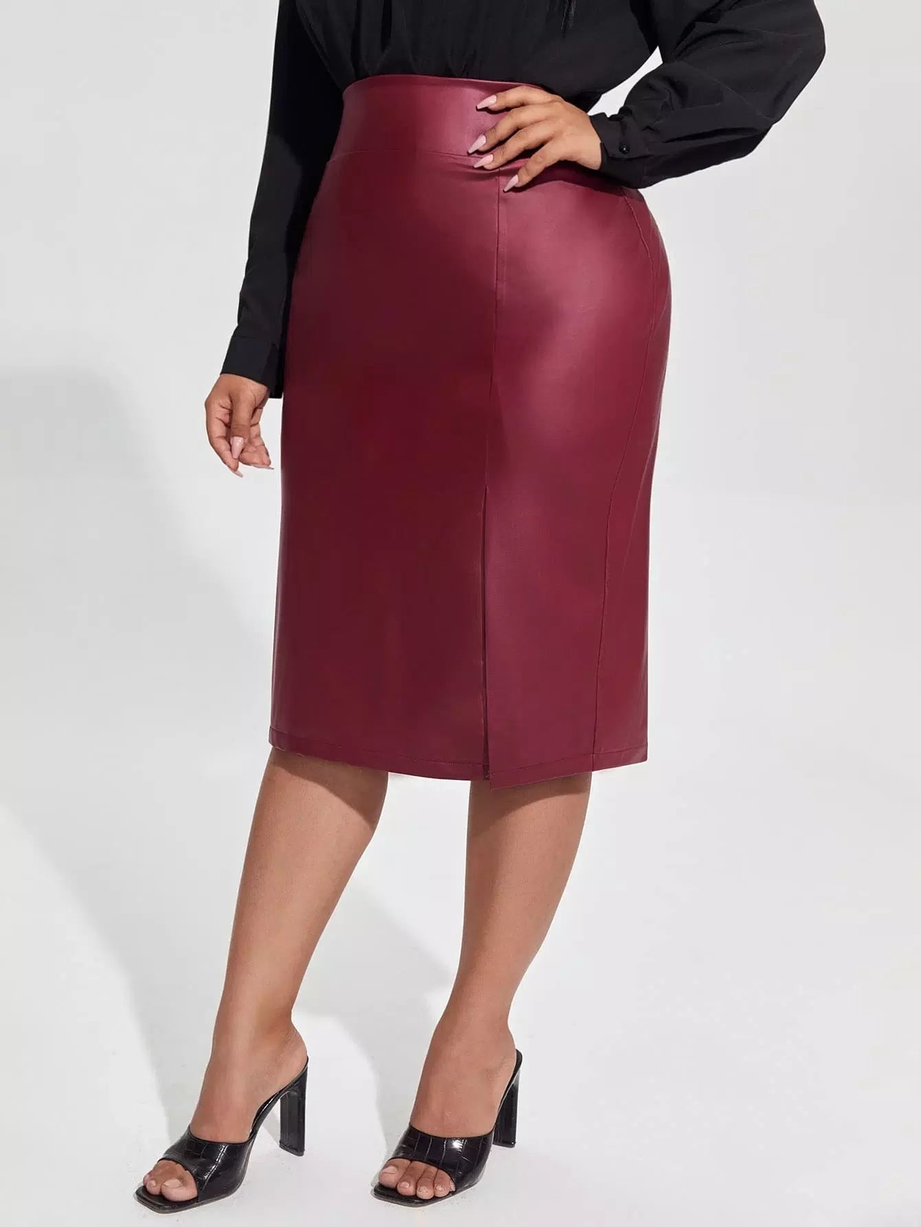 تنورة مستقيمة من جلد البولي يوريثان المنفصل الزائد