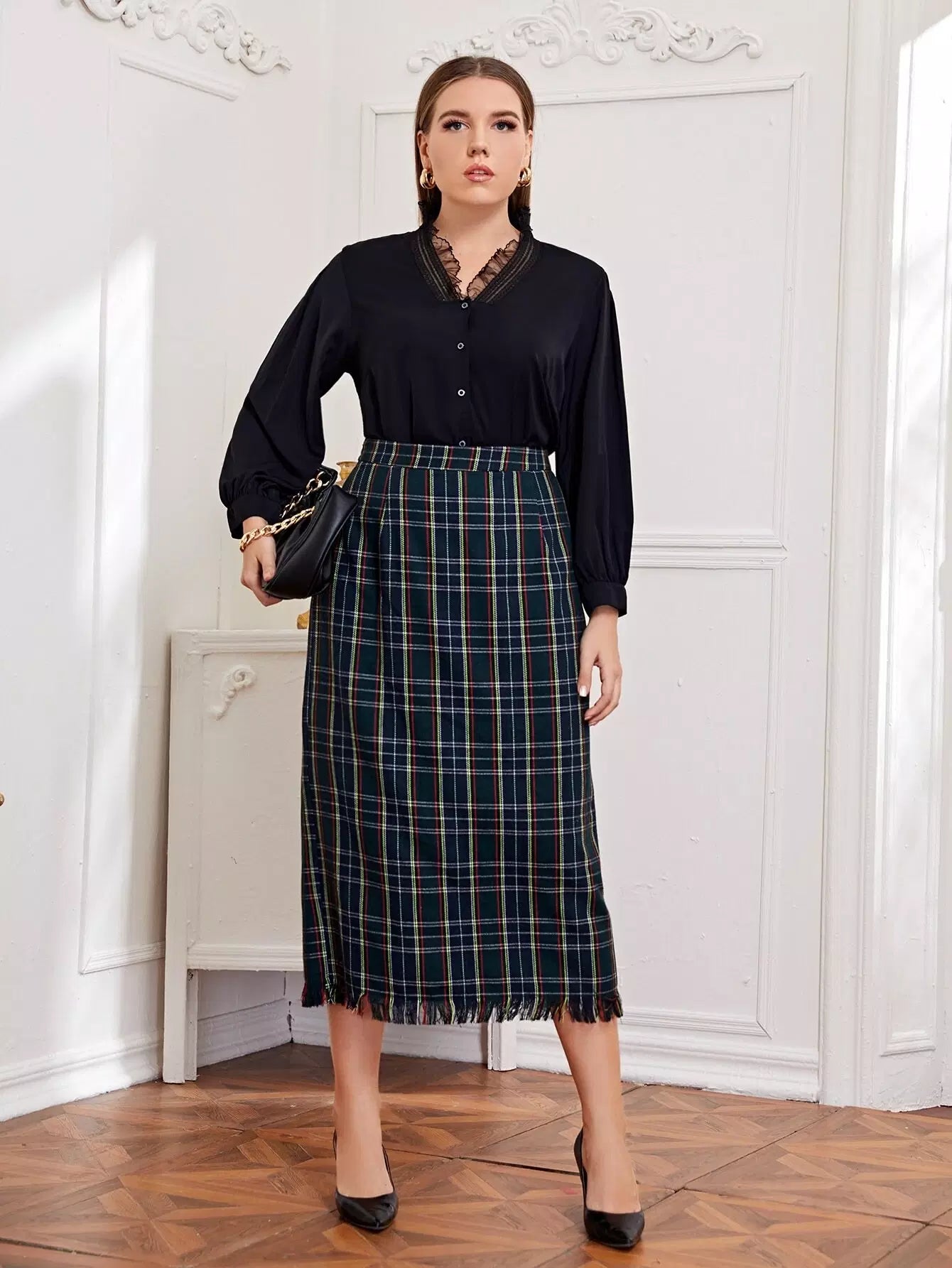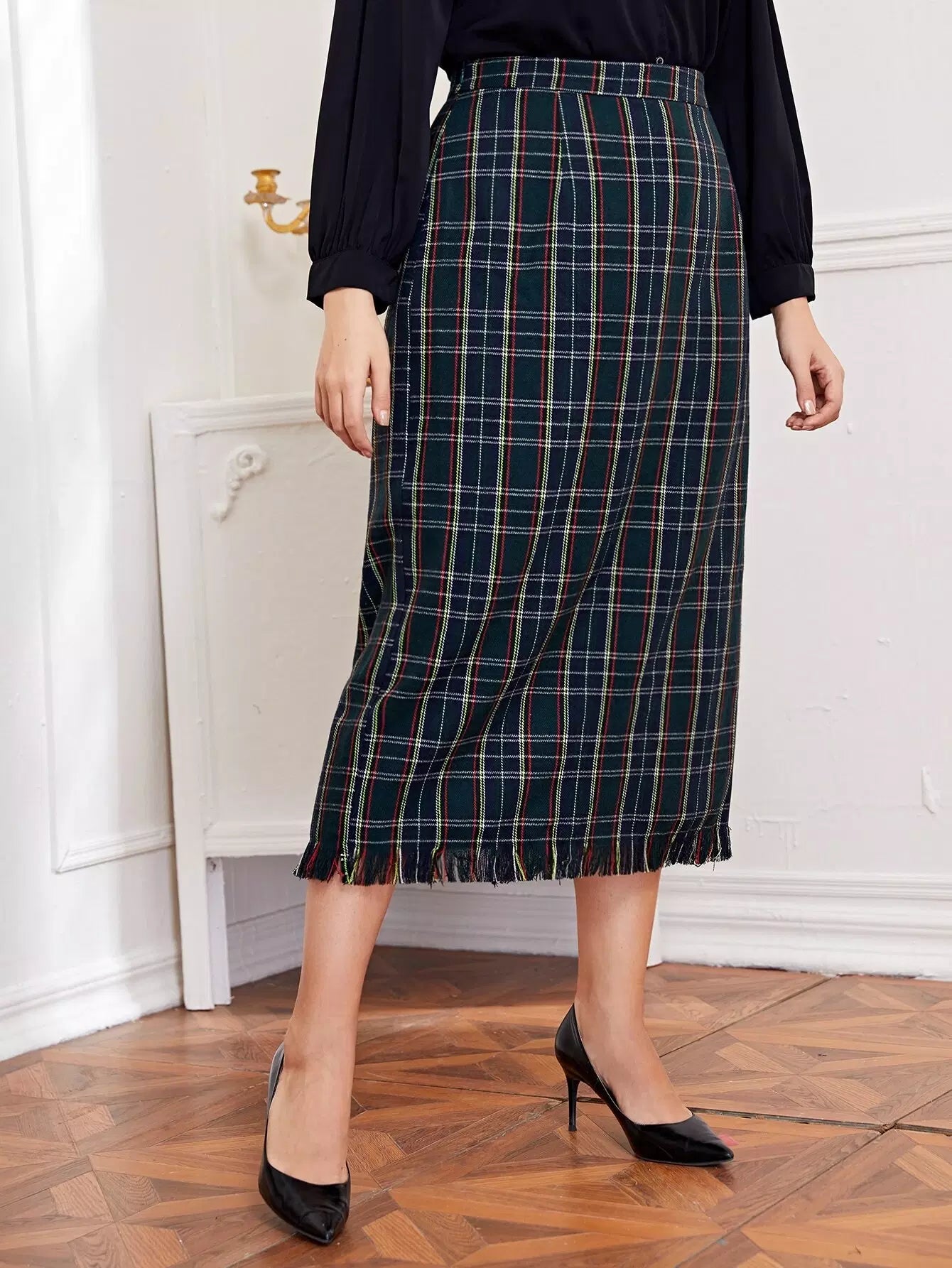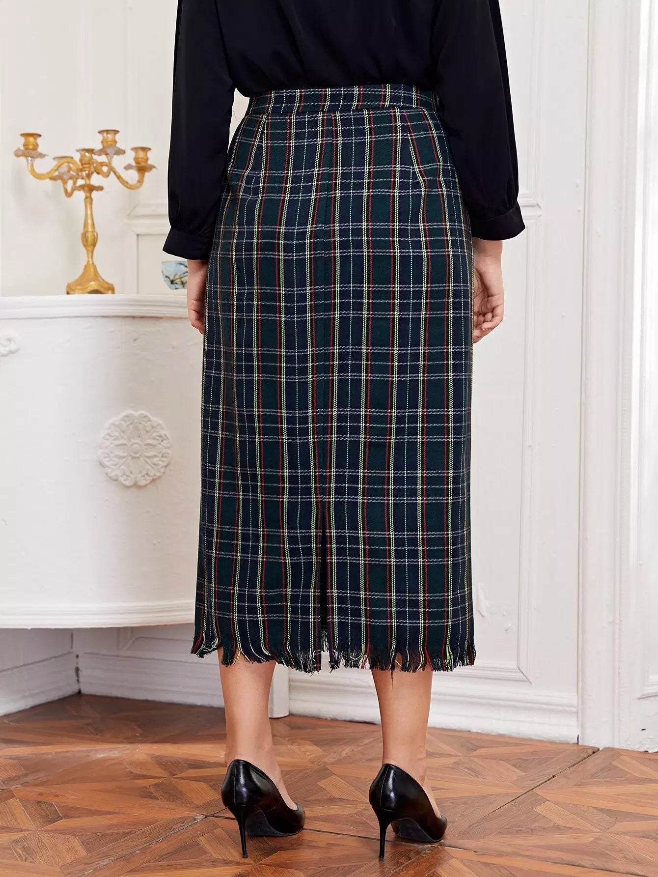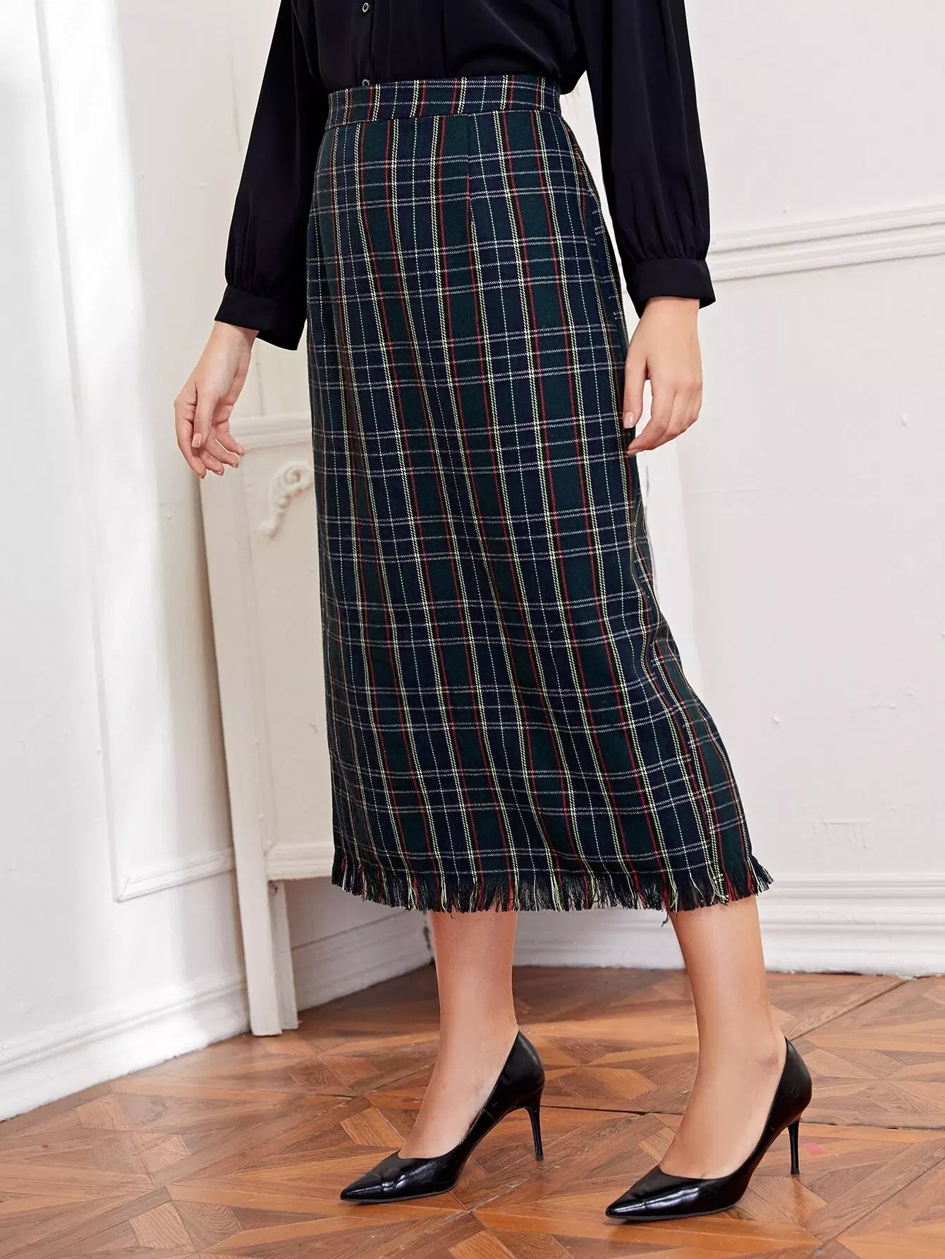تنورة تارتان بحواف خفيفة، منقسمة من الخلف زائد