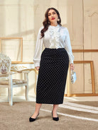 نحيف - مقاس كبير تنورة قلم رصاص مخملية بتفاصيل حجر الراين