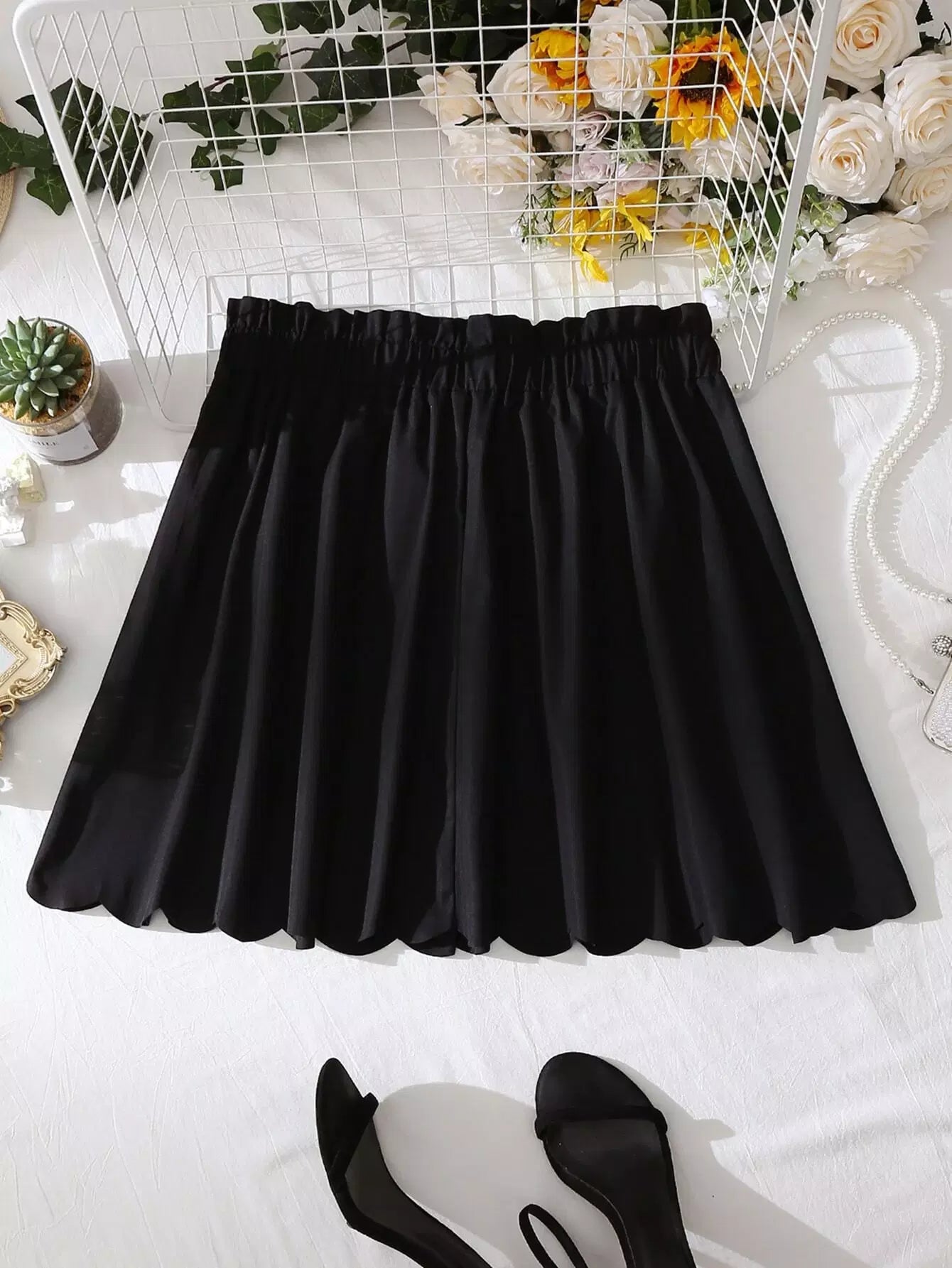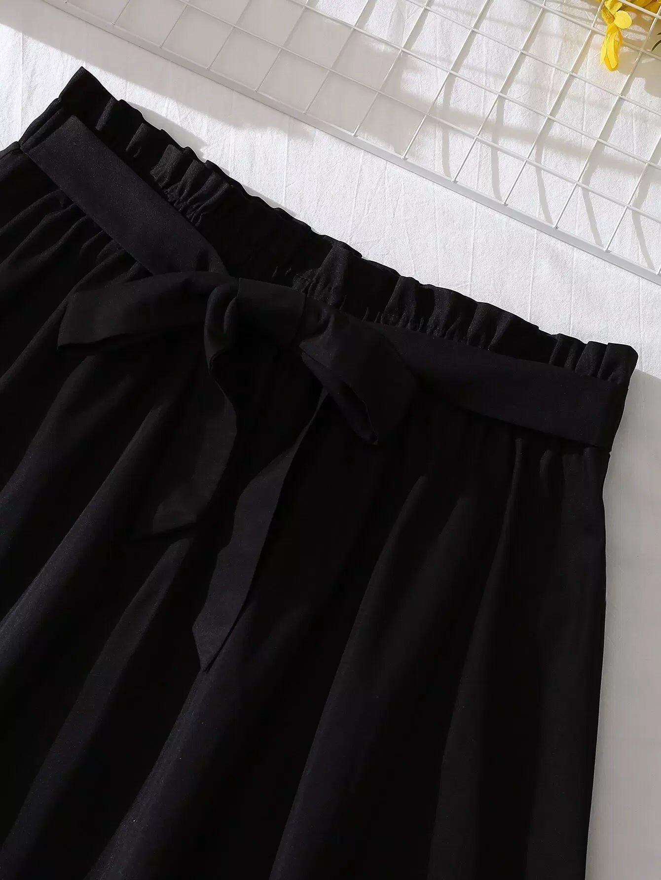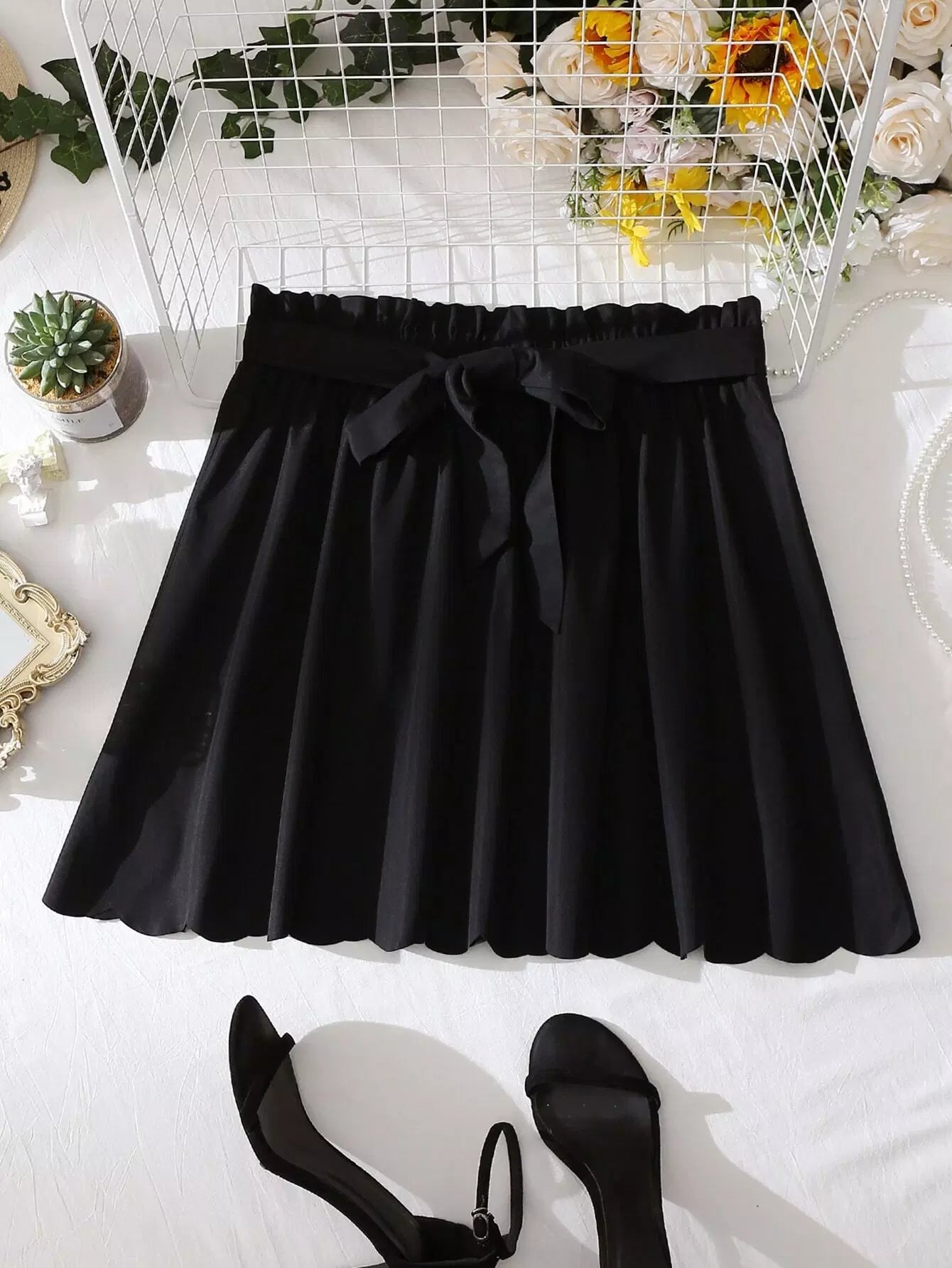 تنورة أمامية مزينة برباط على الخصر برباط أمامي بحافة صدفية
