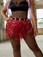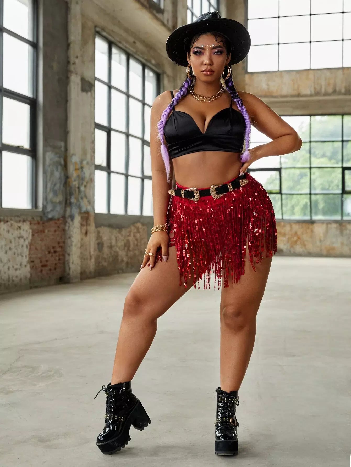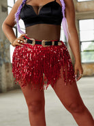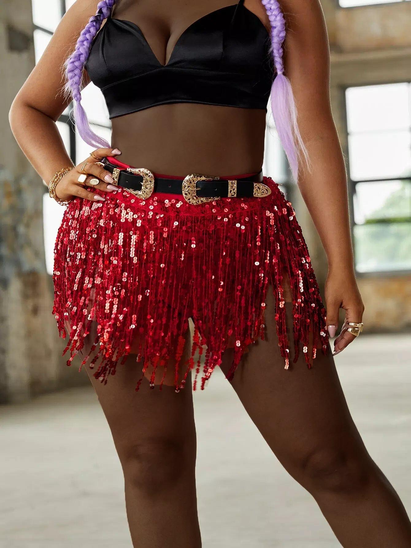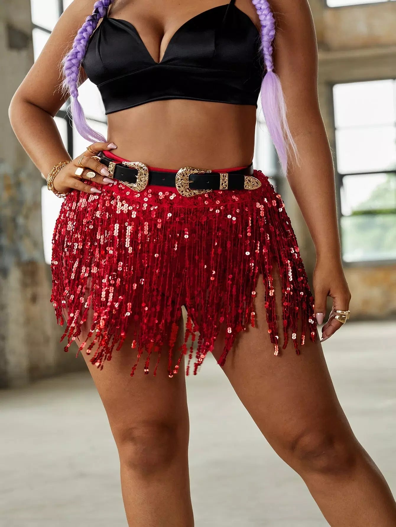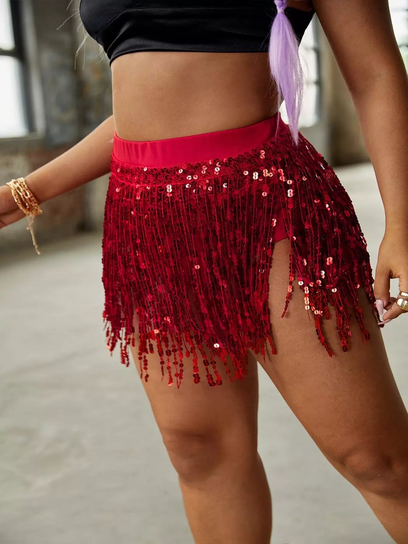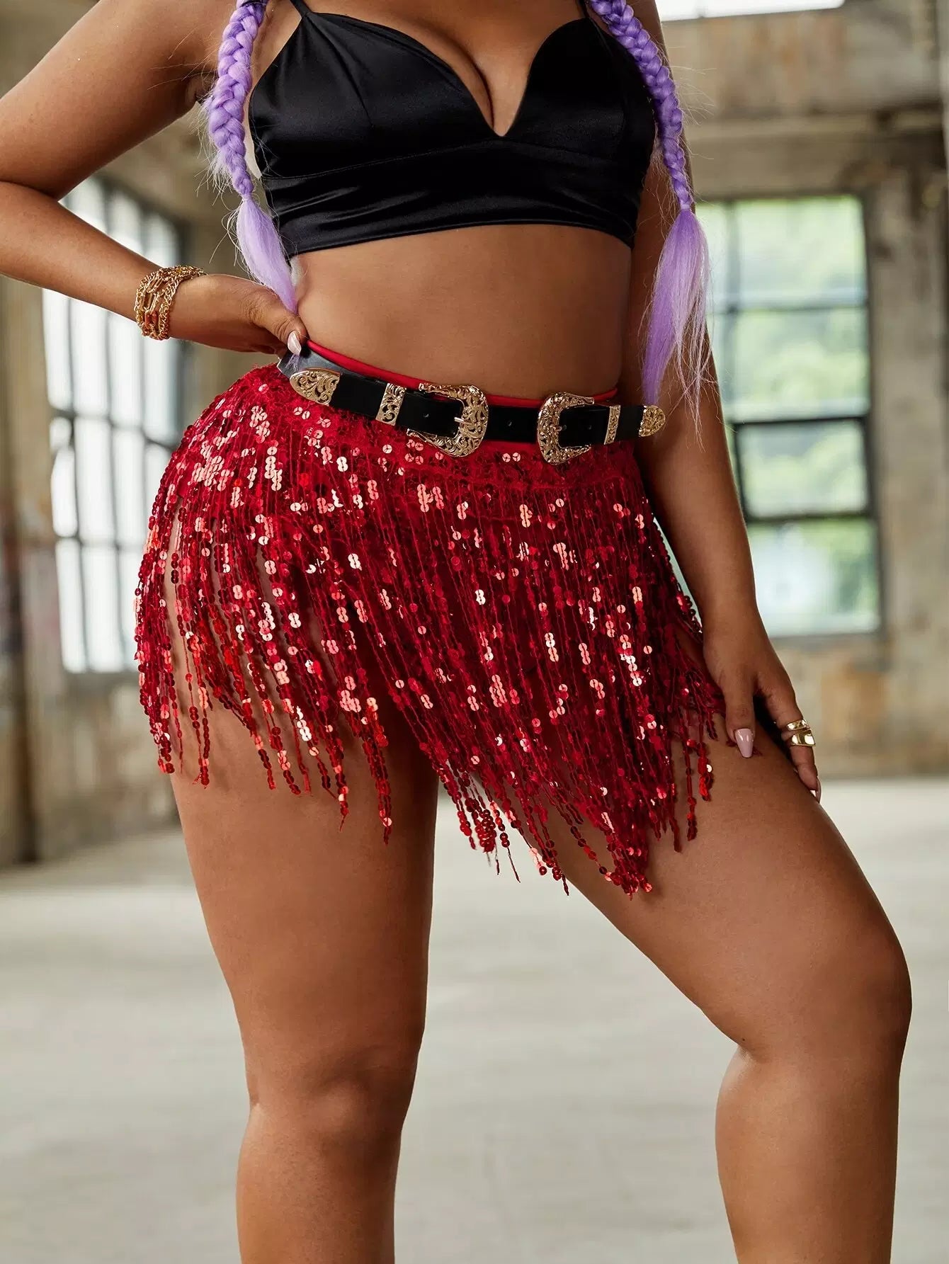 نحيف - مقاس كبير تنورة بأهداب من الترتر بدون حزام