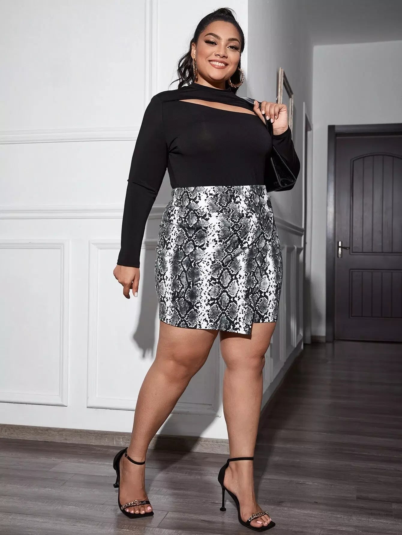 تنورة ملفوفة بأزرار مطبوع عليها جلد الثعبان بلس