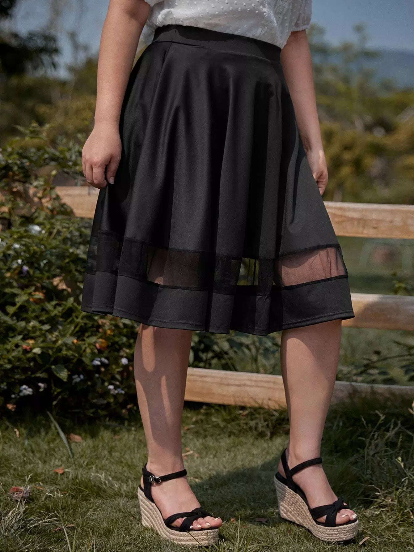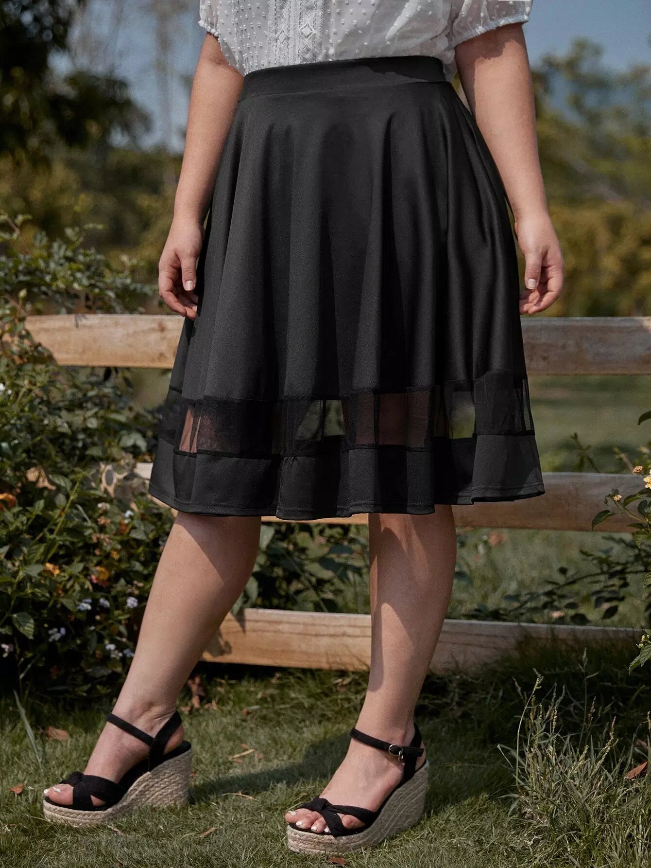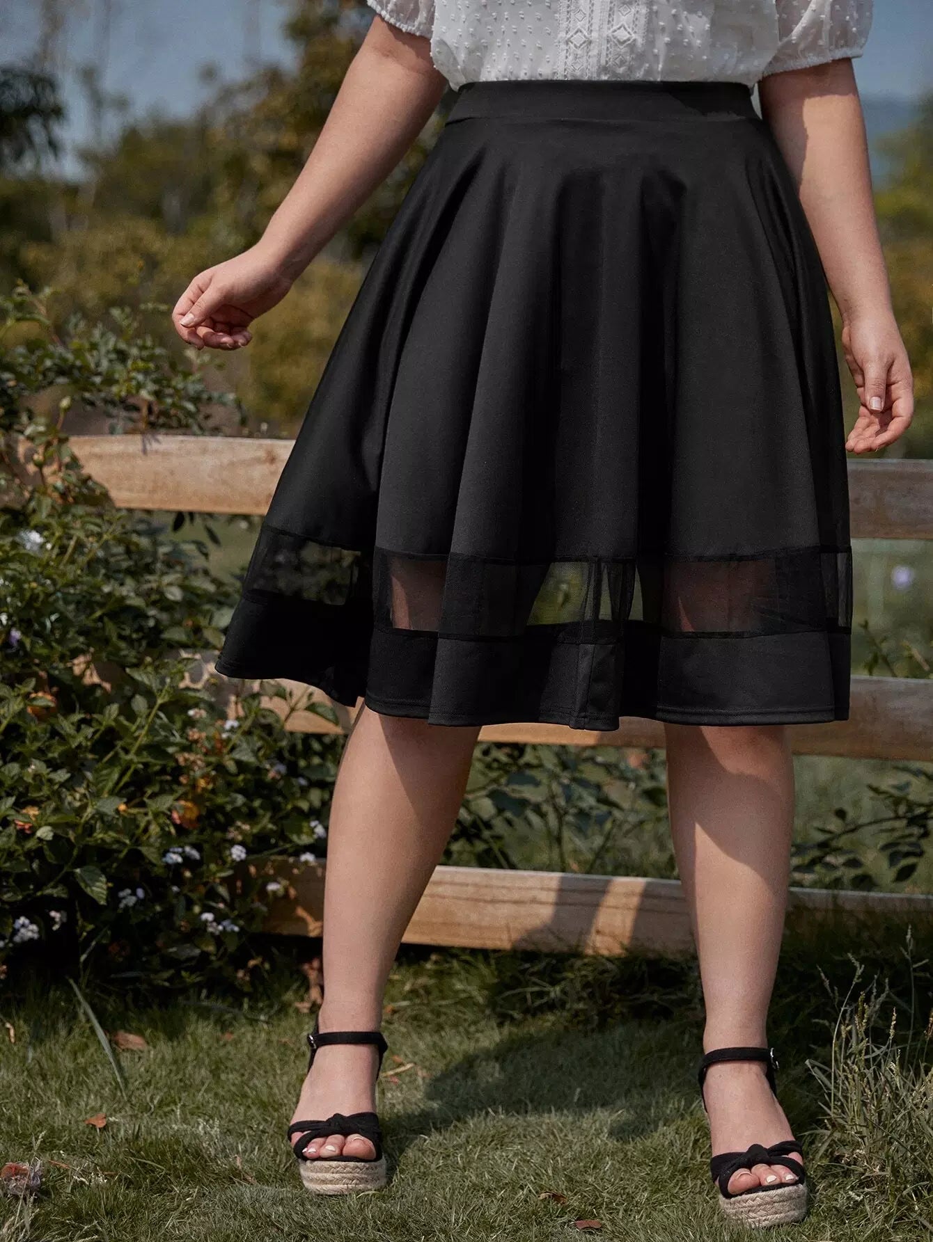 تنورة بلس سادة بلون متباين شبكي واسع بلون مغاير