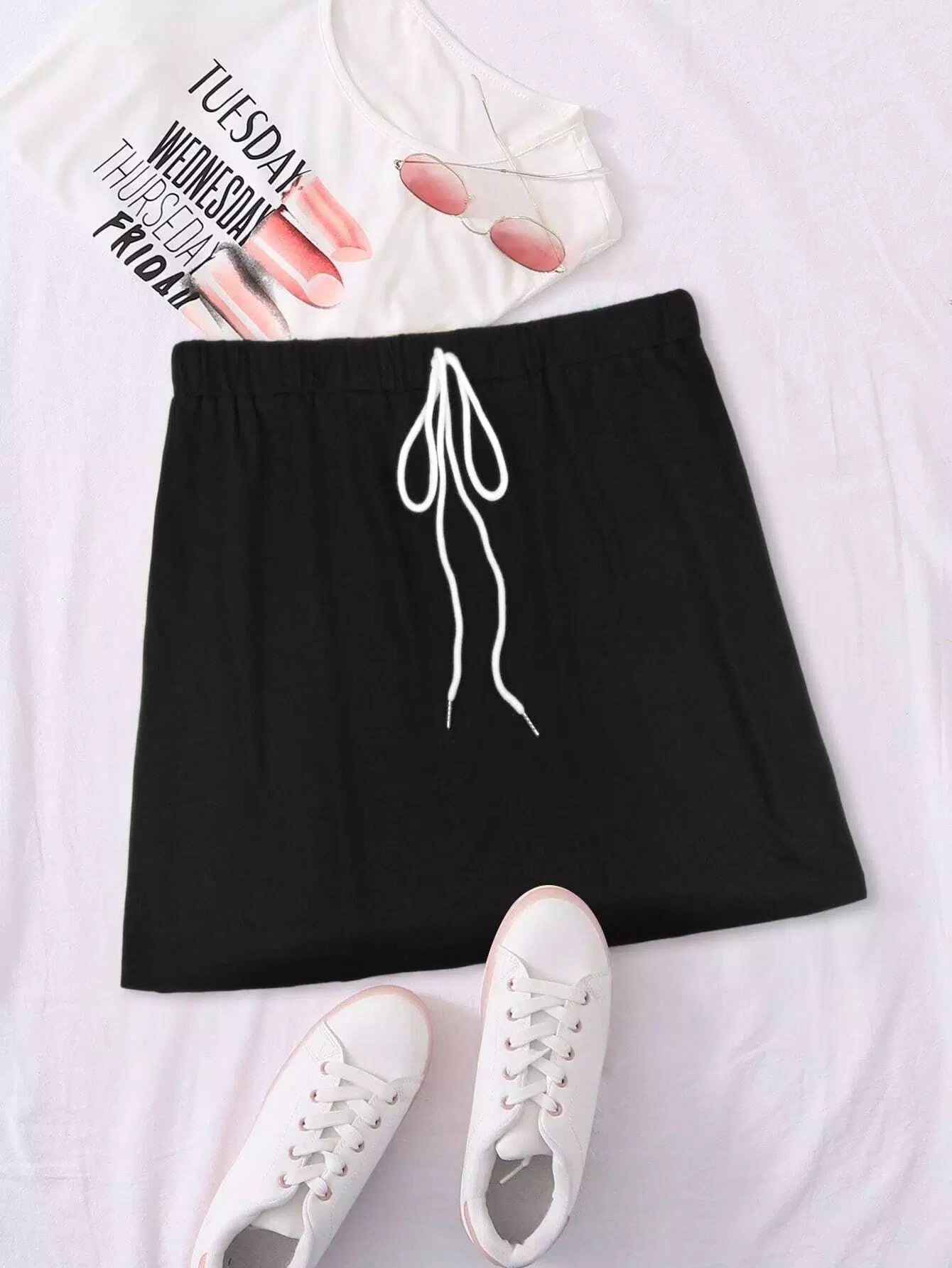 تنورة أمامية سادة بربطة عنق أمامية زائد