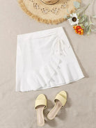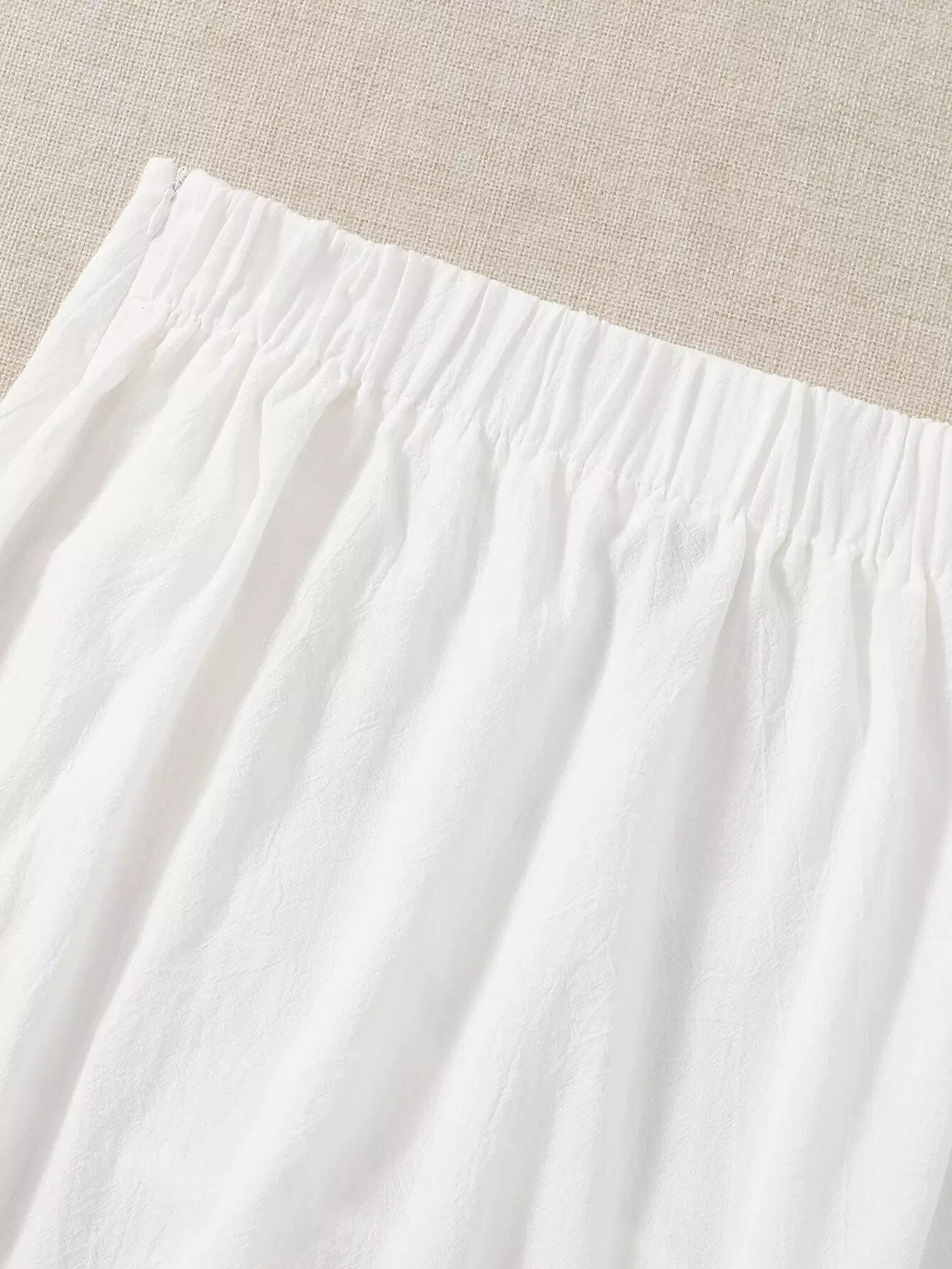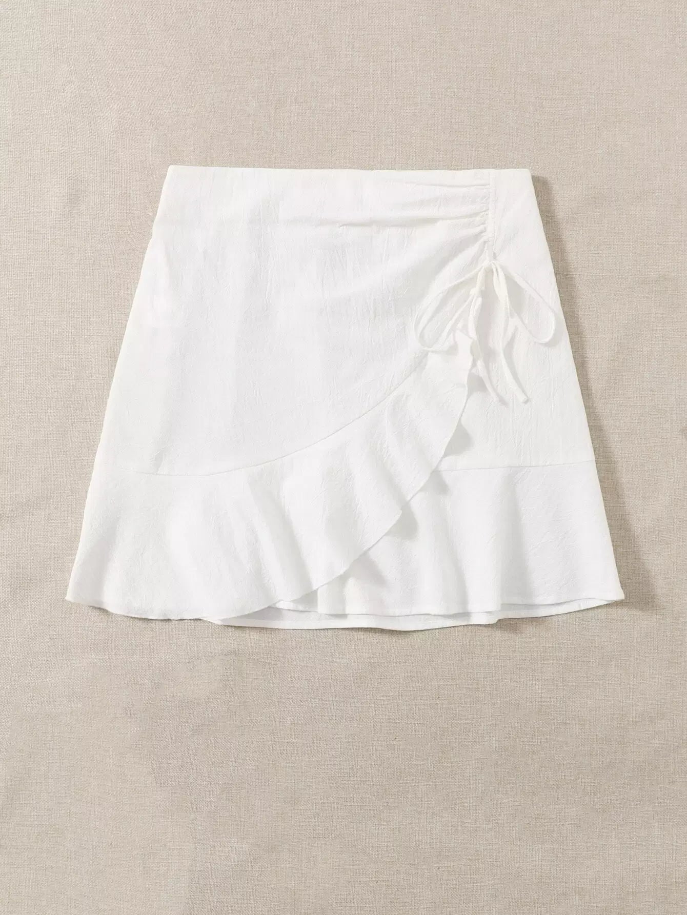 تنورة بلس سادة مكشكشة بفتحة على شكل عقدة مكشكشة
