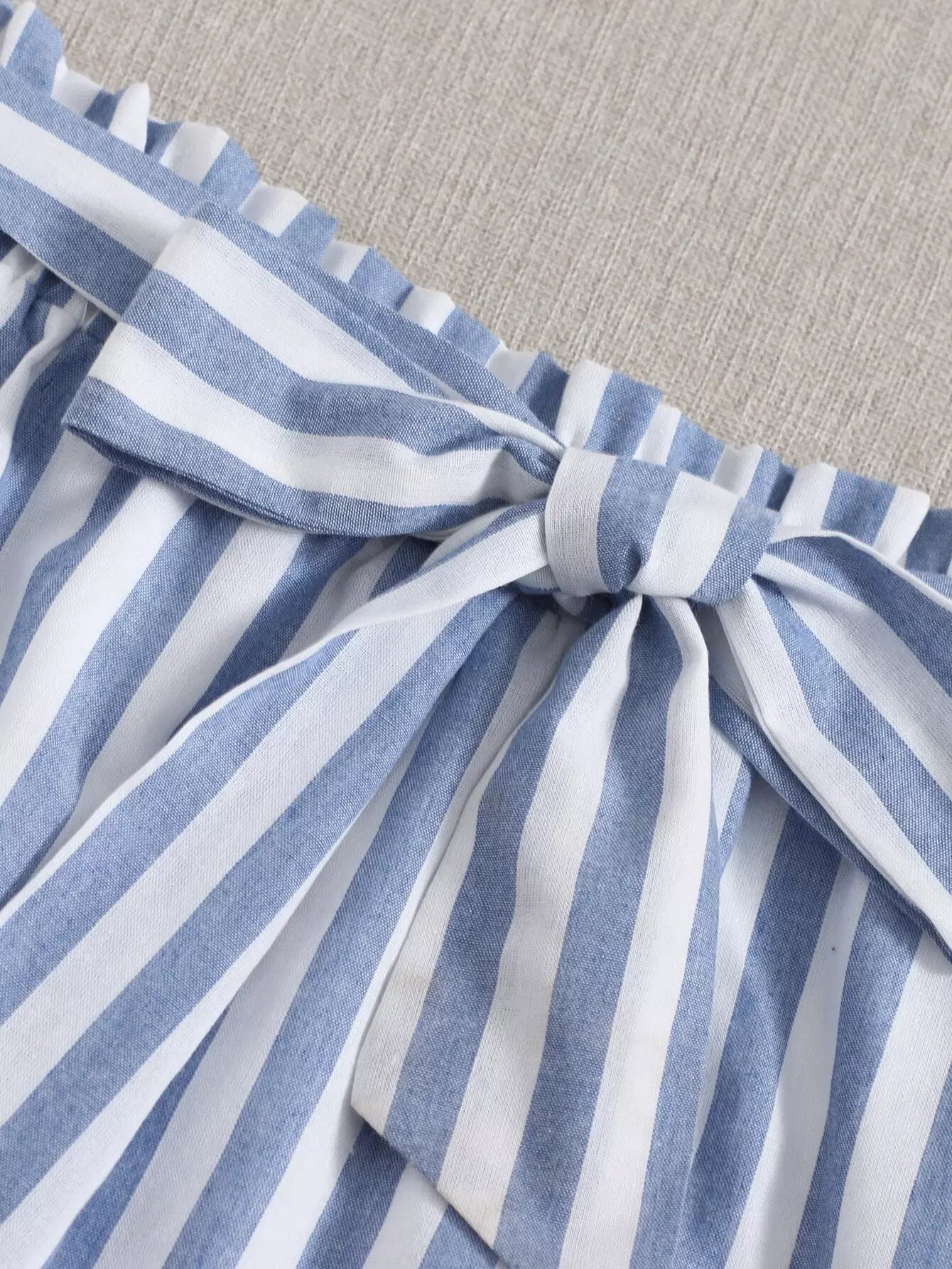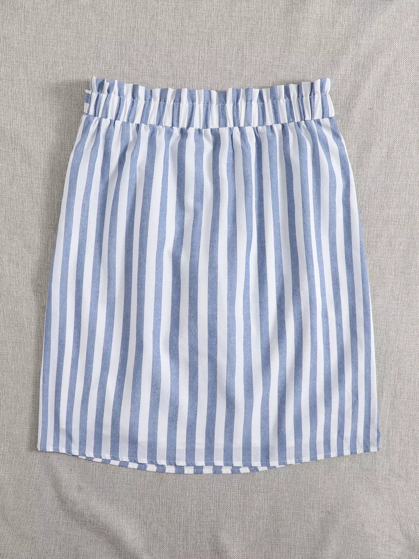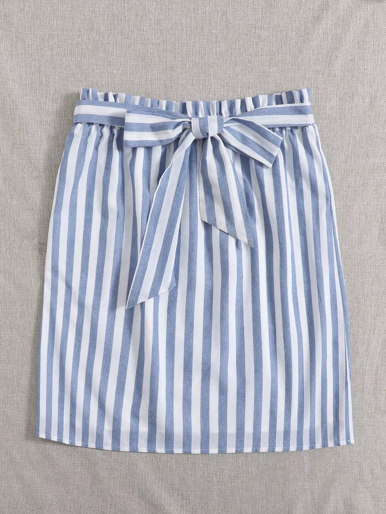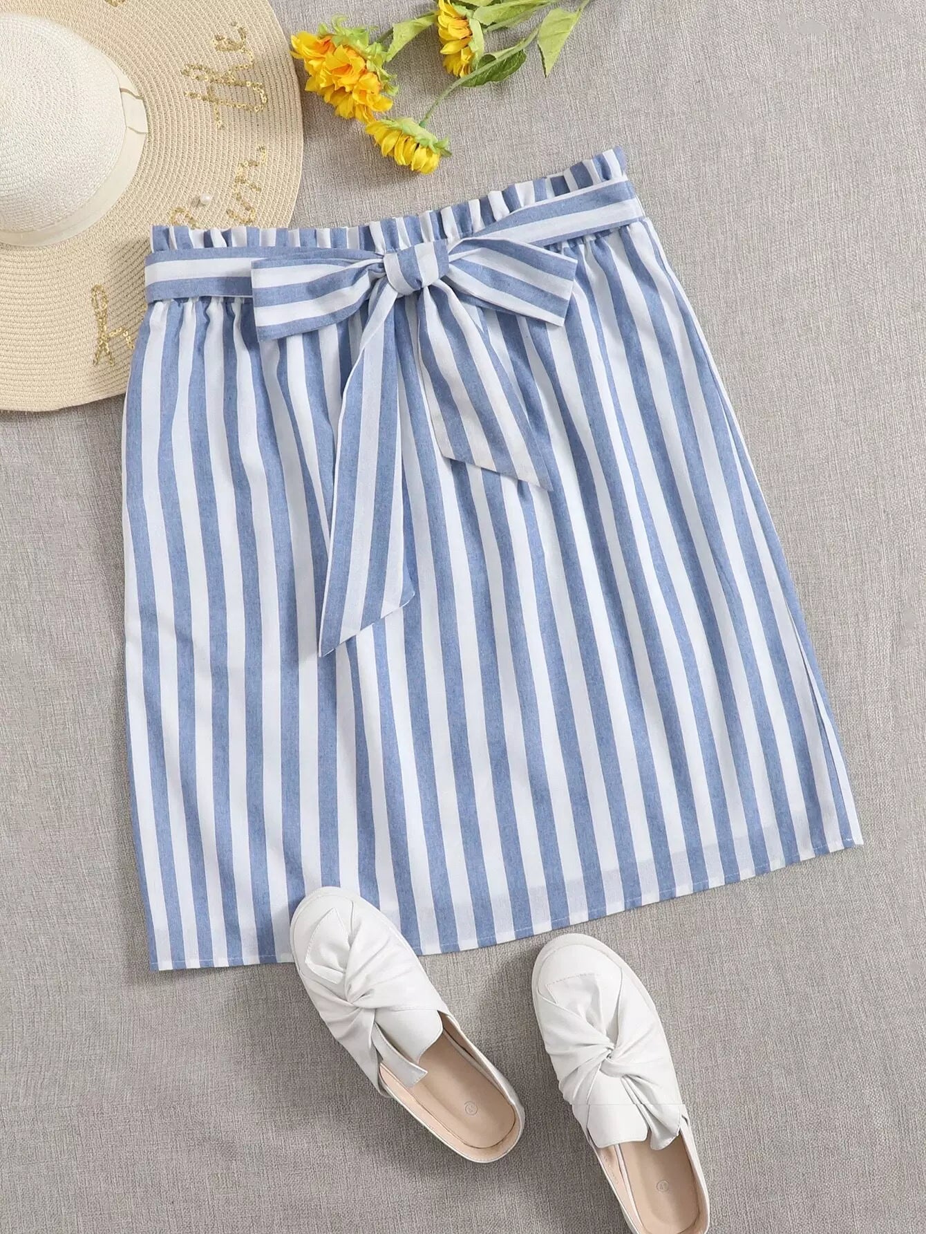 بالإضافة إلى تنورة خصر مخططة من Paperbag بدون حزام