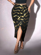 women Viva Relle Plus Size Women's Foil Wave Striped Print Wrap Skirt