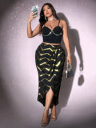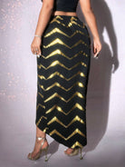 تنورة نسائية كبيرة الحجم من Viva Relle بطباعة مخططة برقائق معدنية