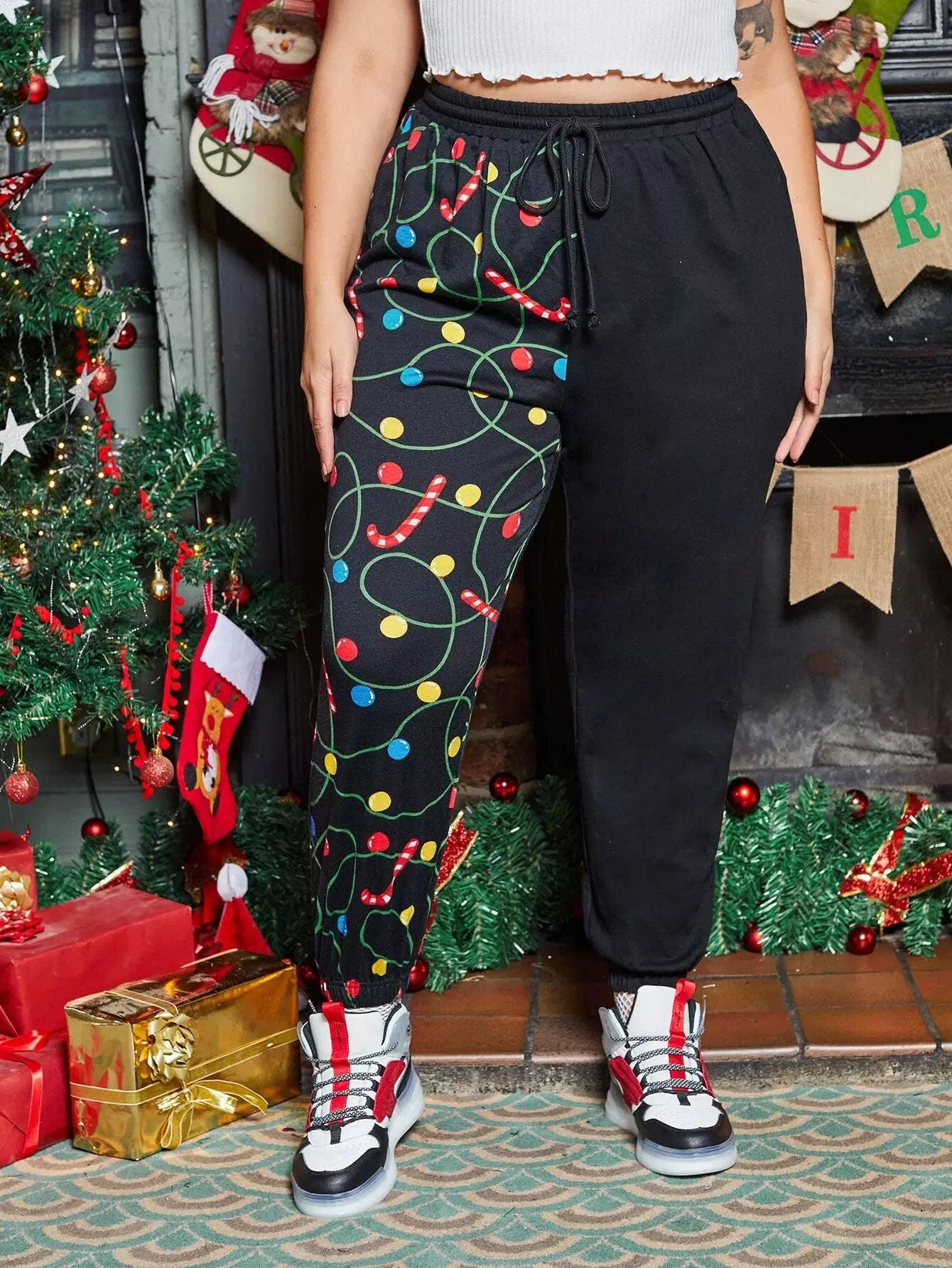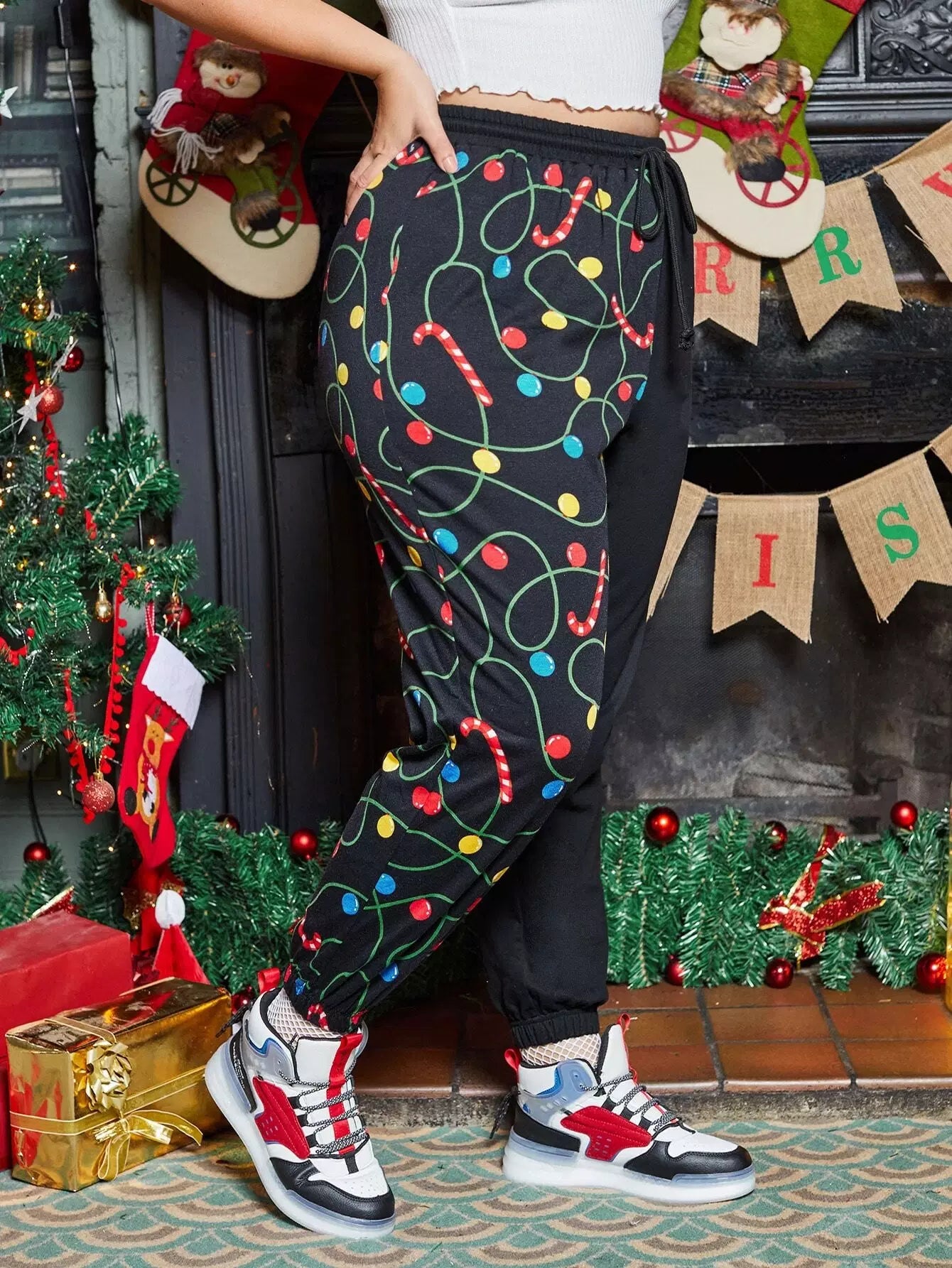 نحيف - مقاس كبير بنطال رياضي بخصر برباط وطباعة عيد الميلاد